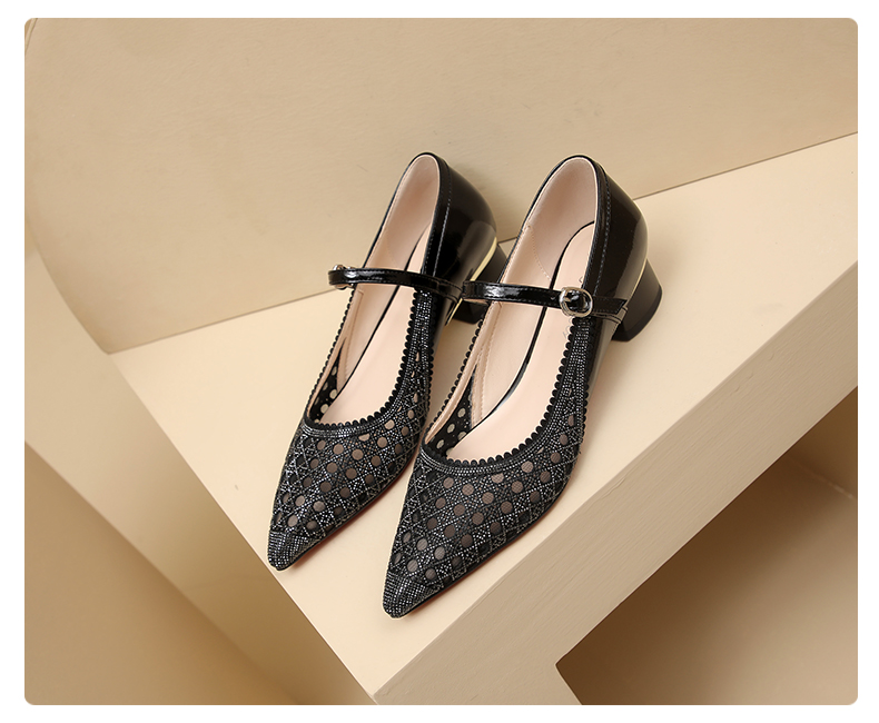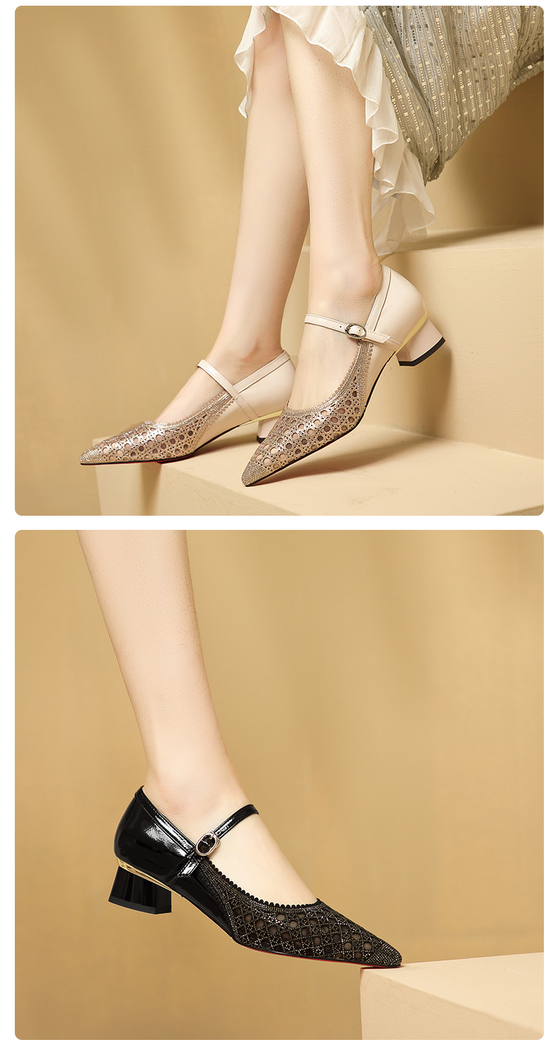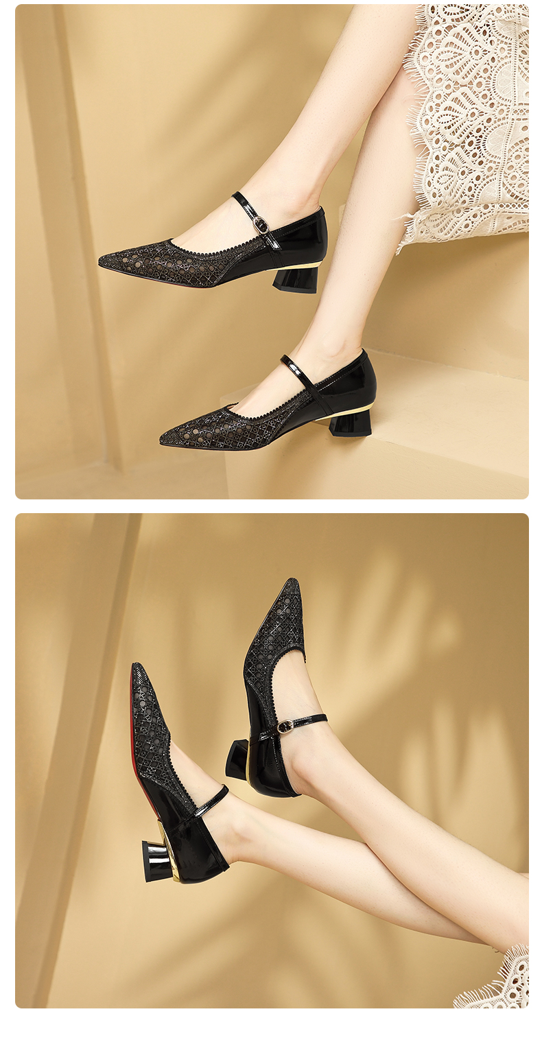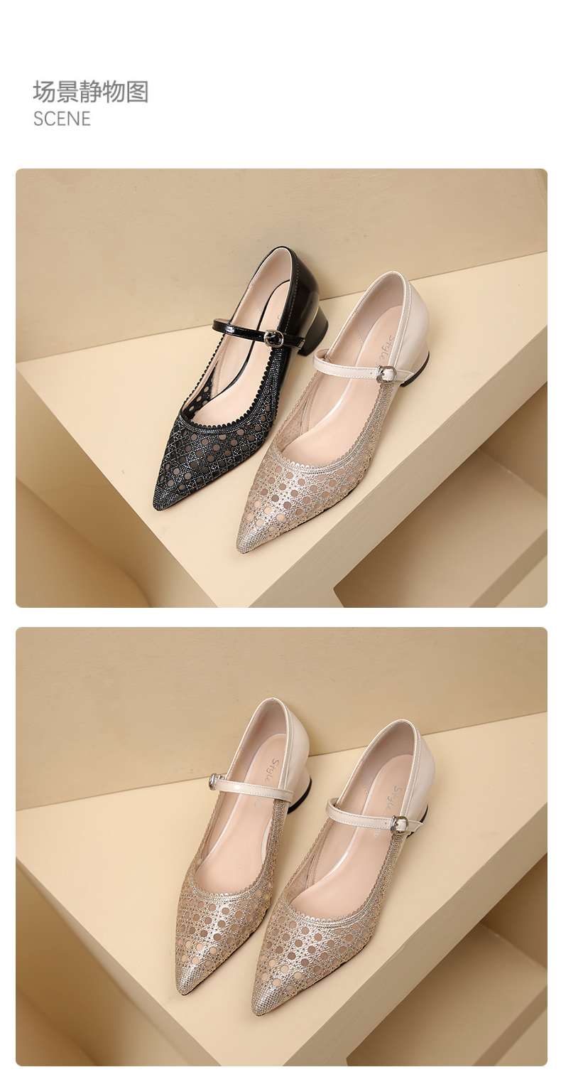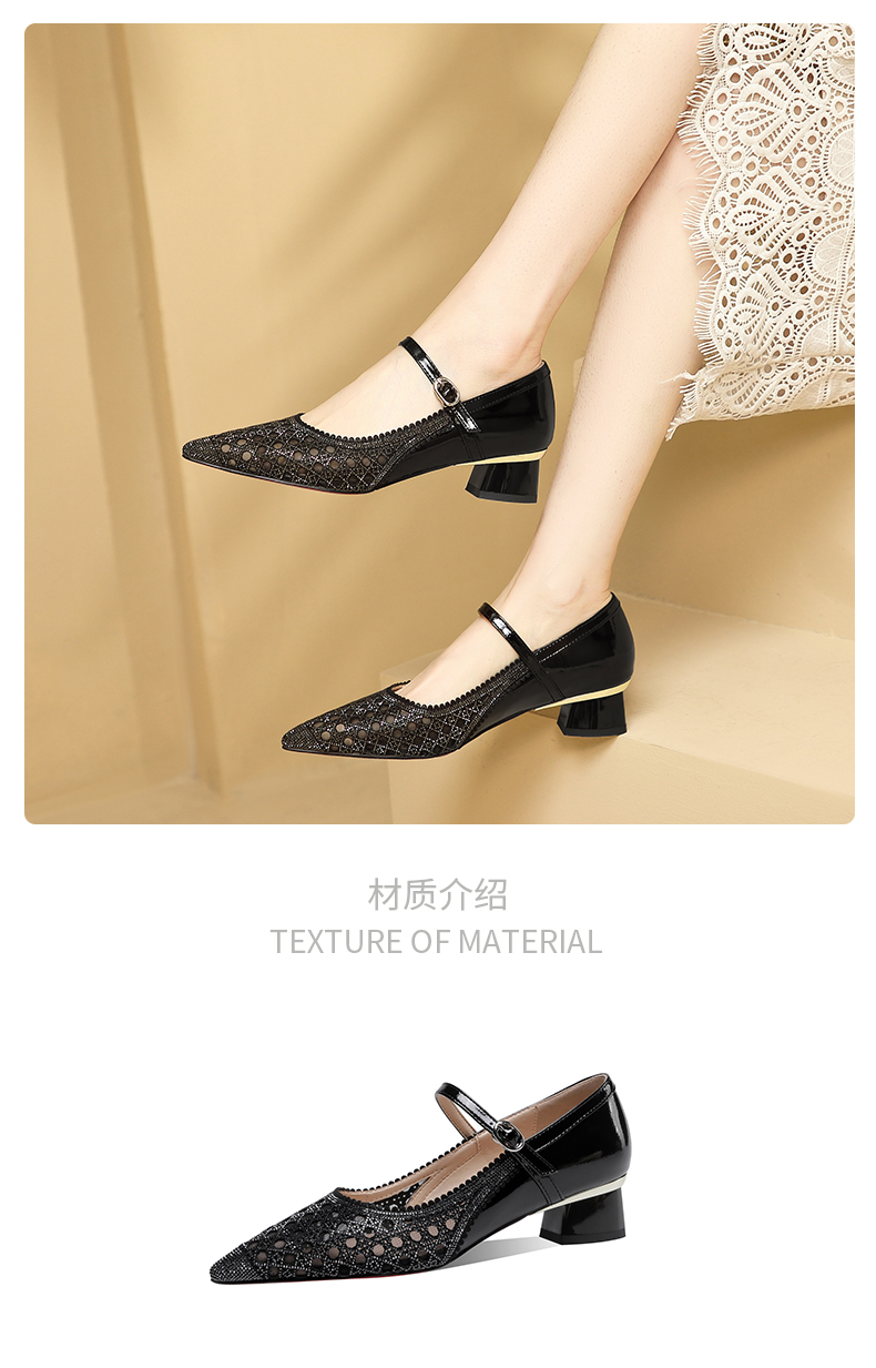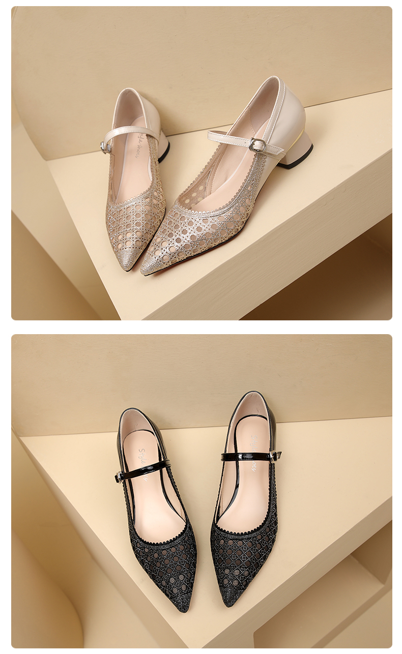 舒适简约,超纤皮镂空尖头低跟凉鞋XL555