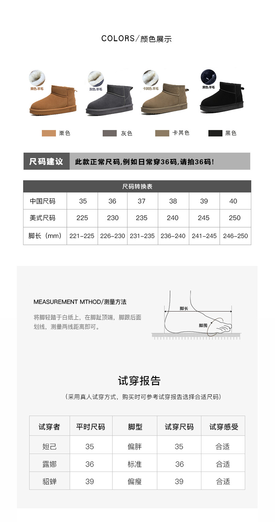 雀说 【短筒簿底羊毛】经典雪地靴女  6613 商品图3