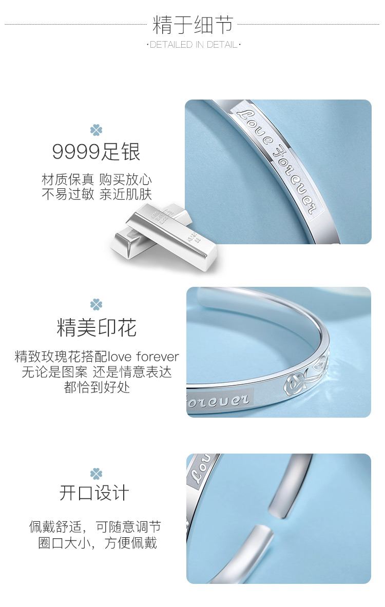 Winy9999足银永恒手镯送女友闺蜜节日生日礼物