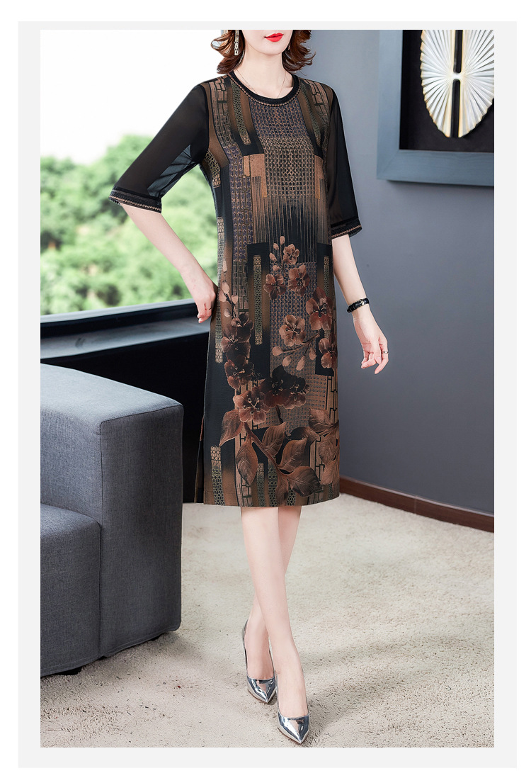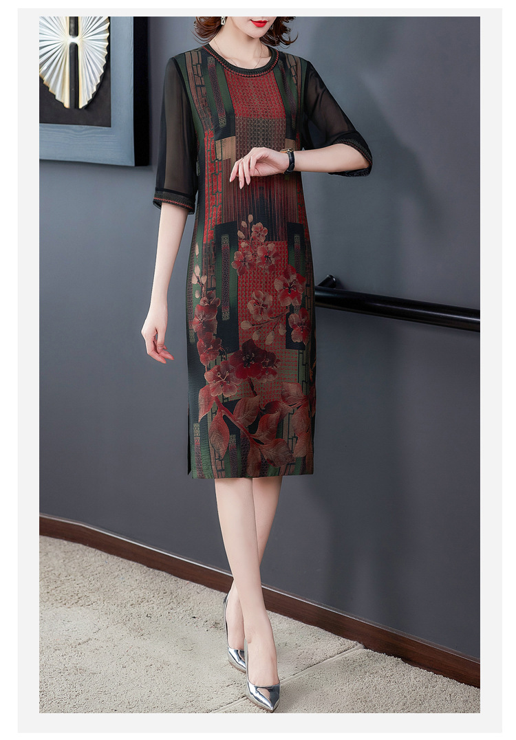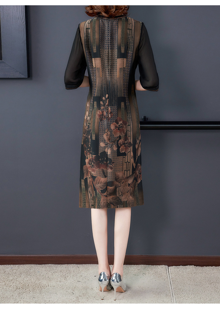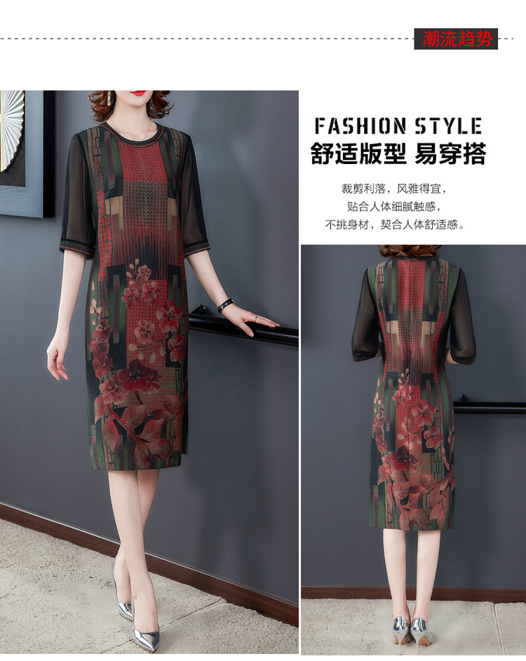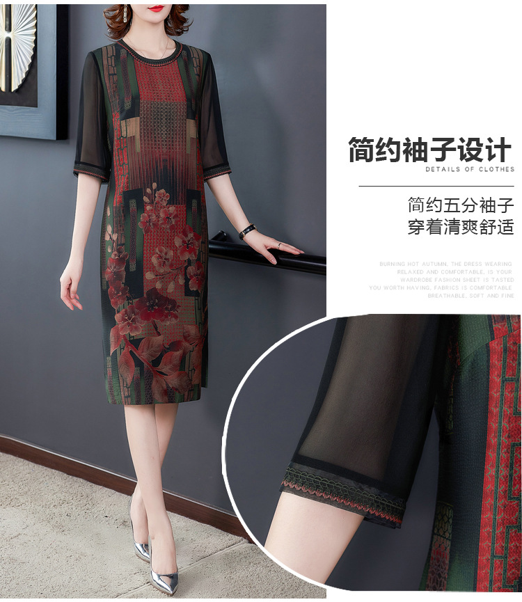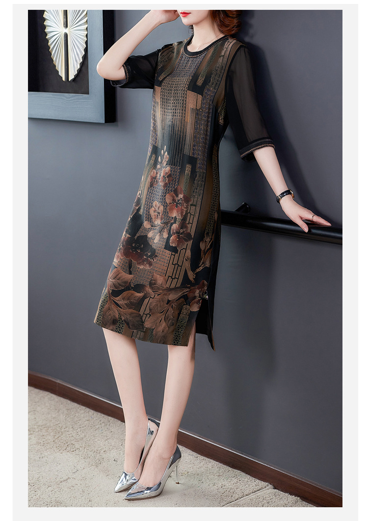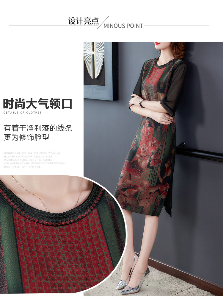 JJ-7658香云纱夏新款高档中长款妈妈装宽松显瘦连衣裙