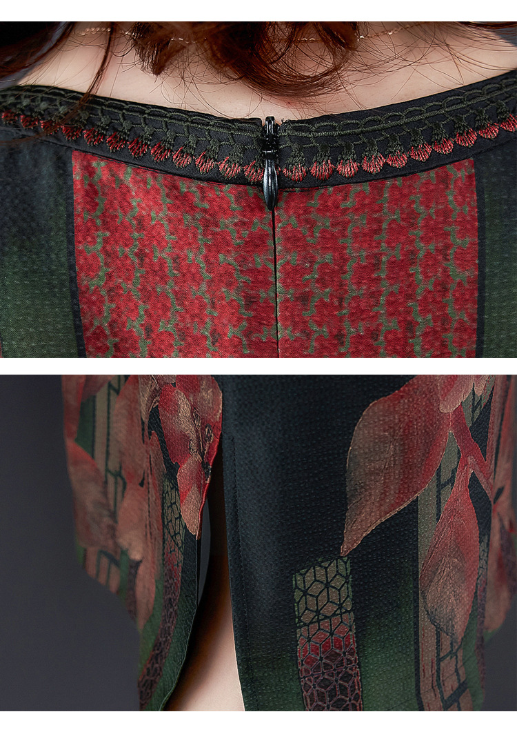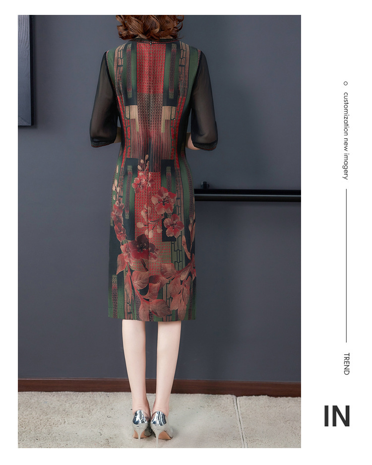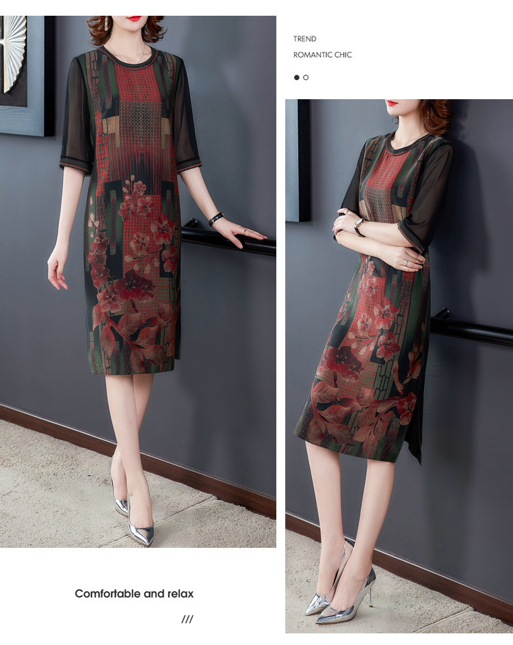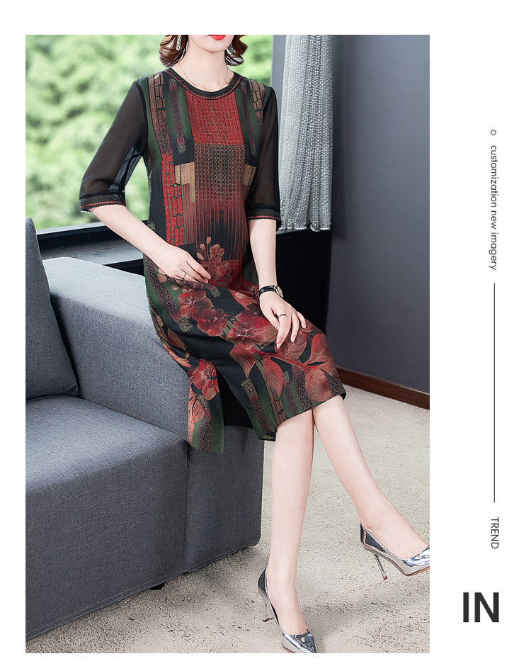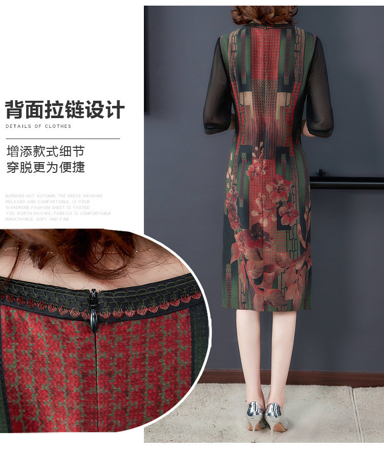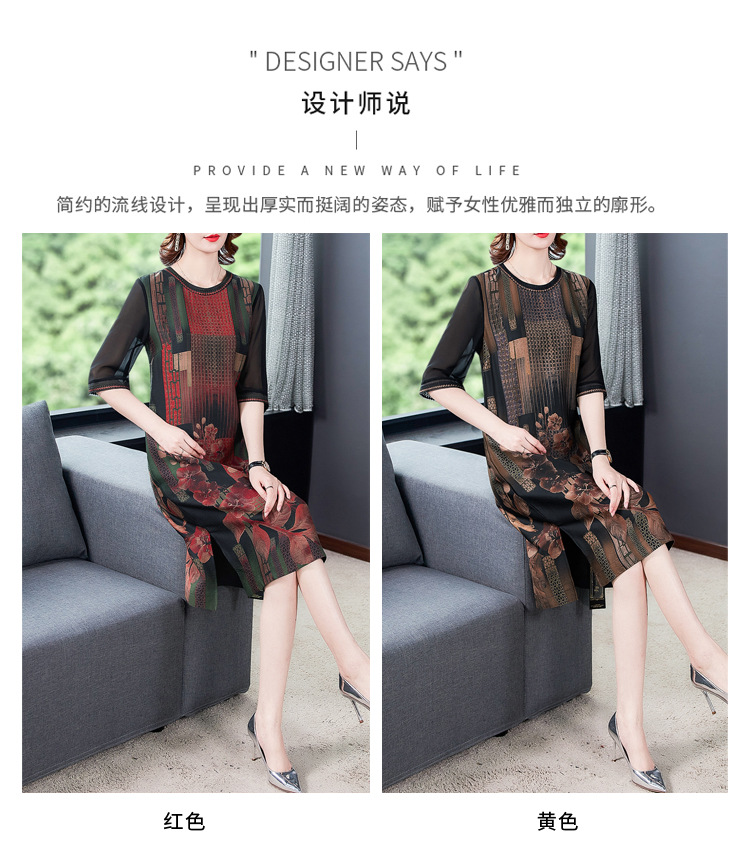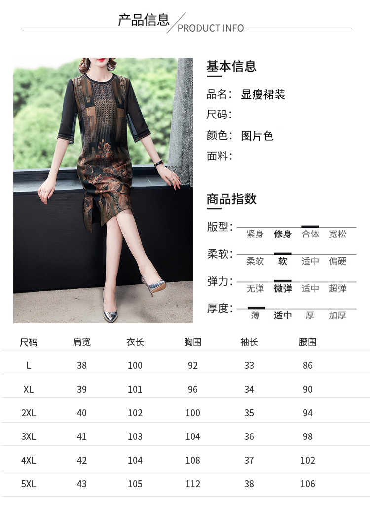 JJ-7658香云纱夏新款高档中长款妈妈装宽松显瘦连衣裙