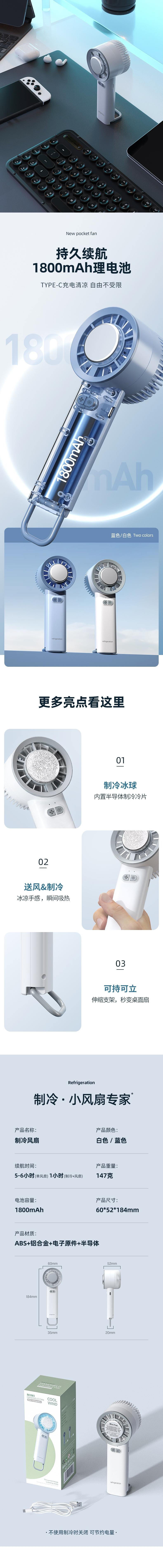戈尔斯诺 半导体制冷手提风扇1800mAh GS-D904-1