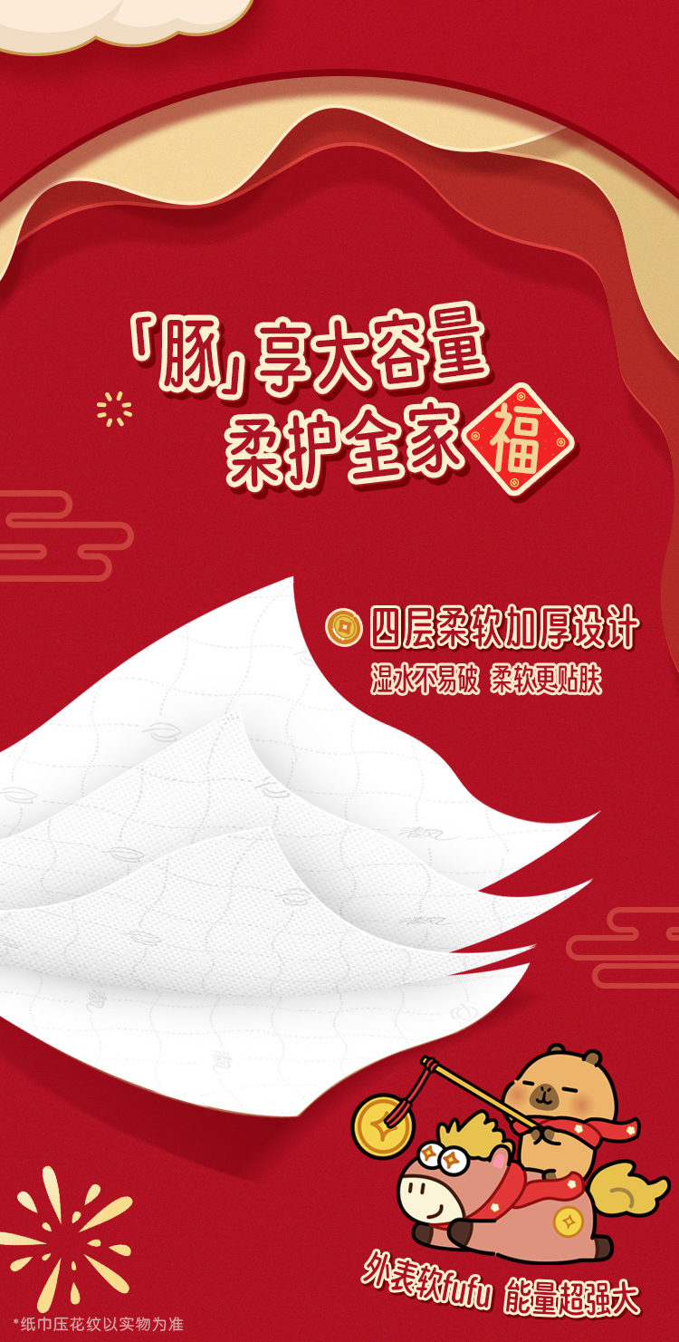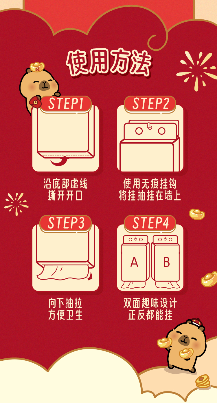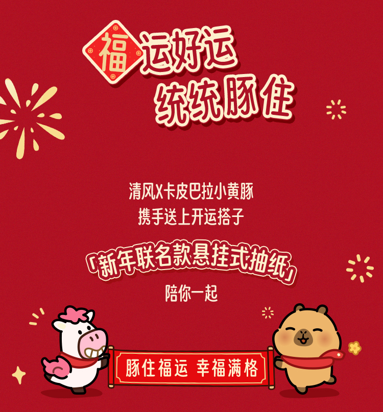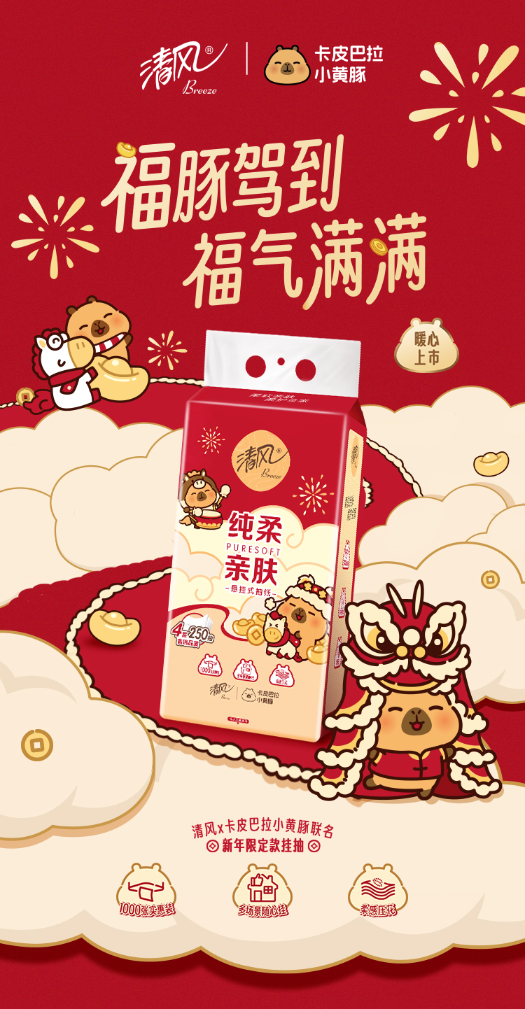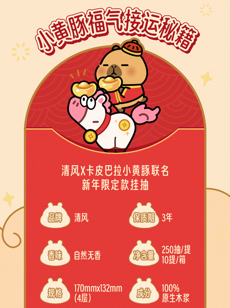 【官方自营】清风挂抽4层250抽10提送挂钩新年限定卡皮巴拉联名