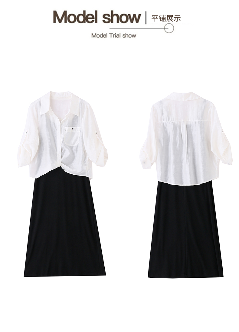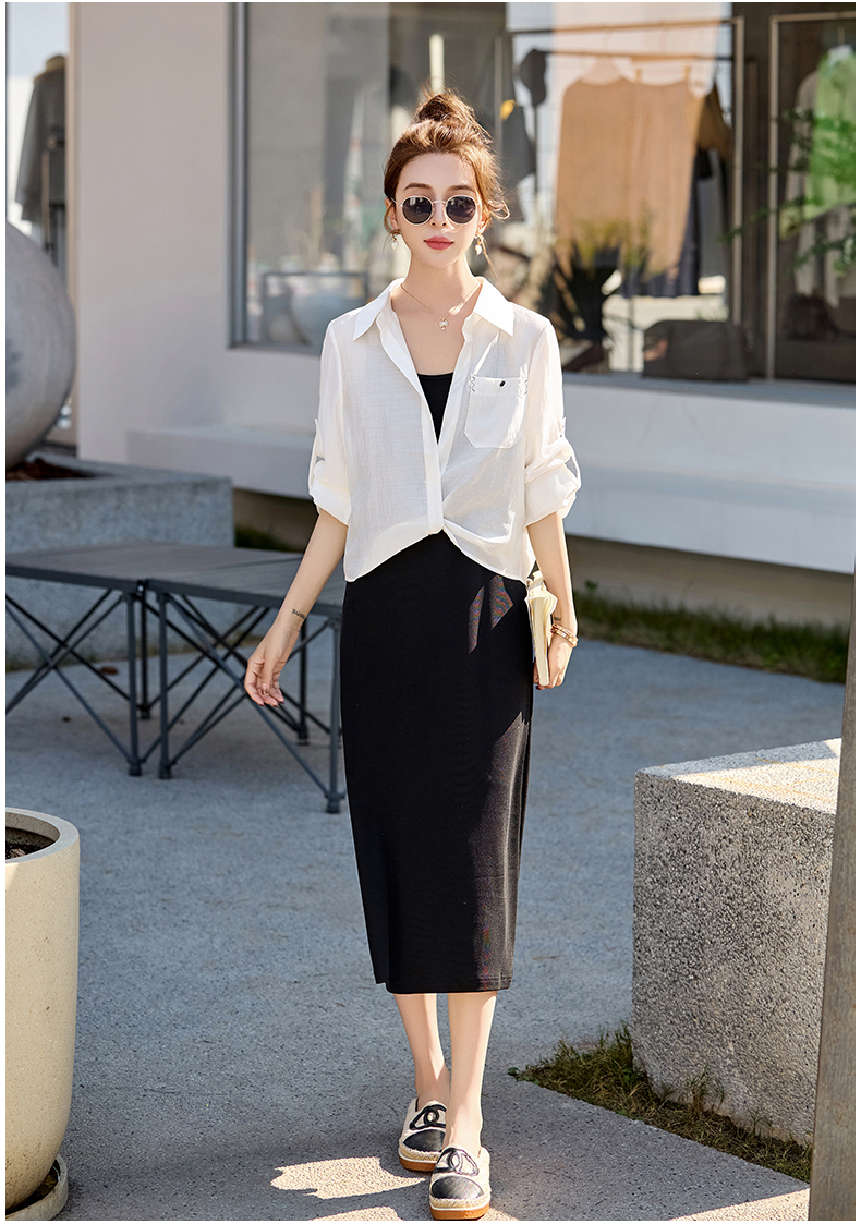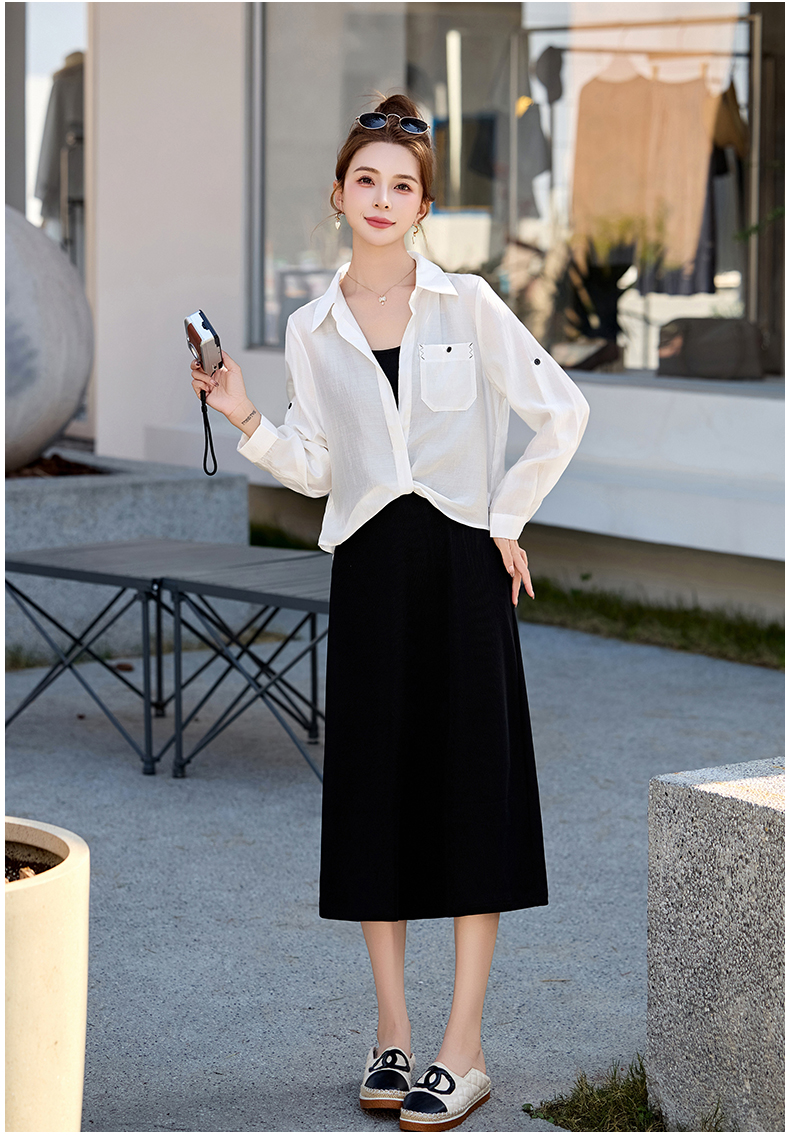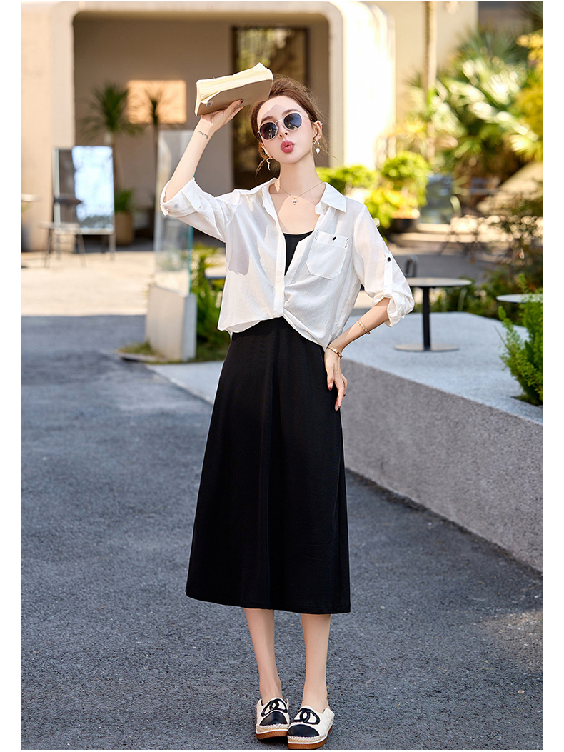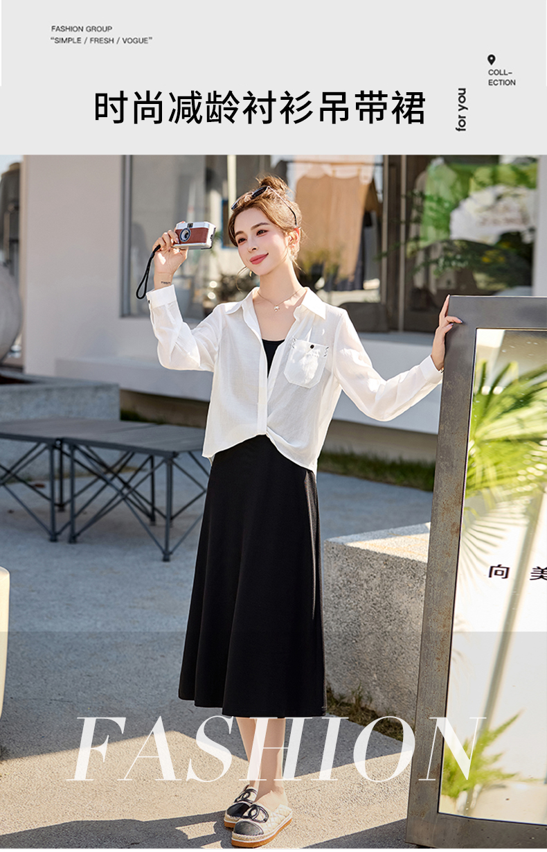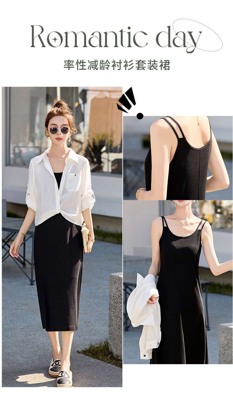 休闲时尚防晒衬衫,洋气宽松吊带裙两件套裙HR-XMRS2571