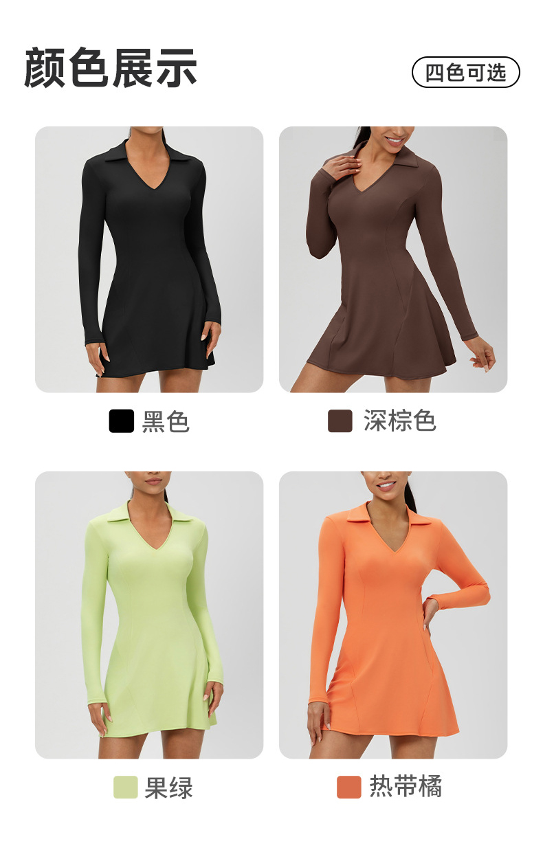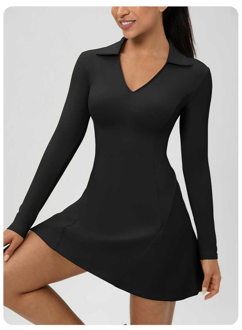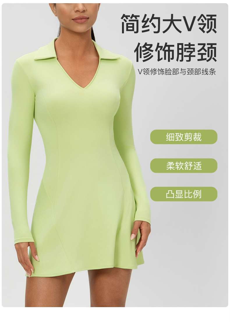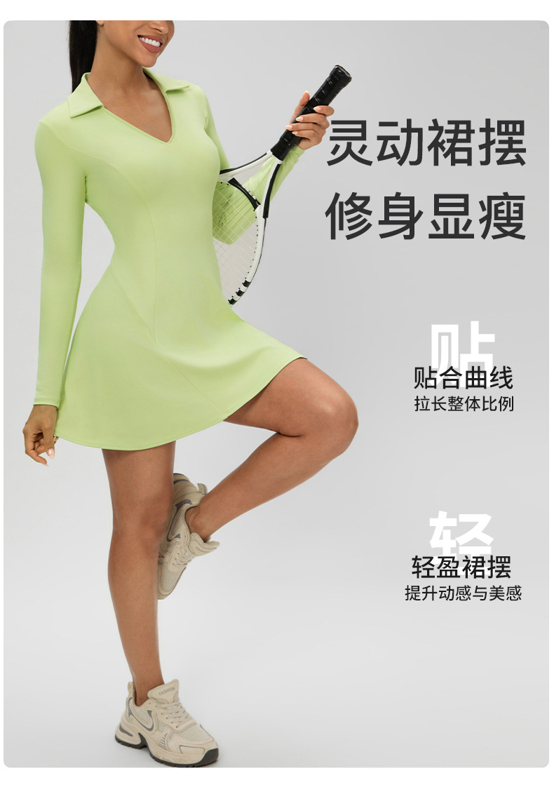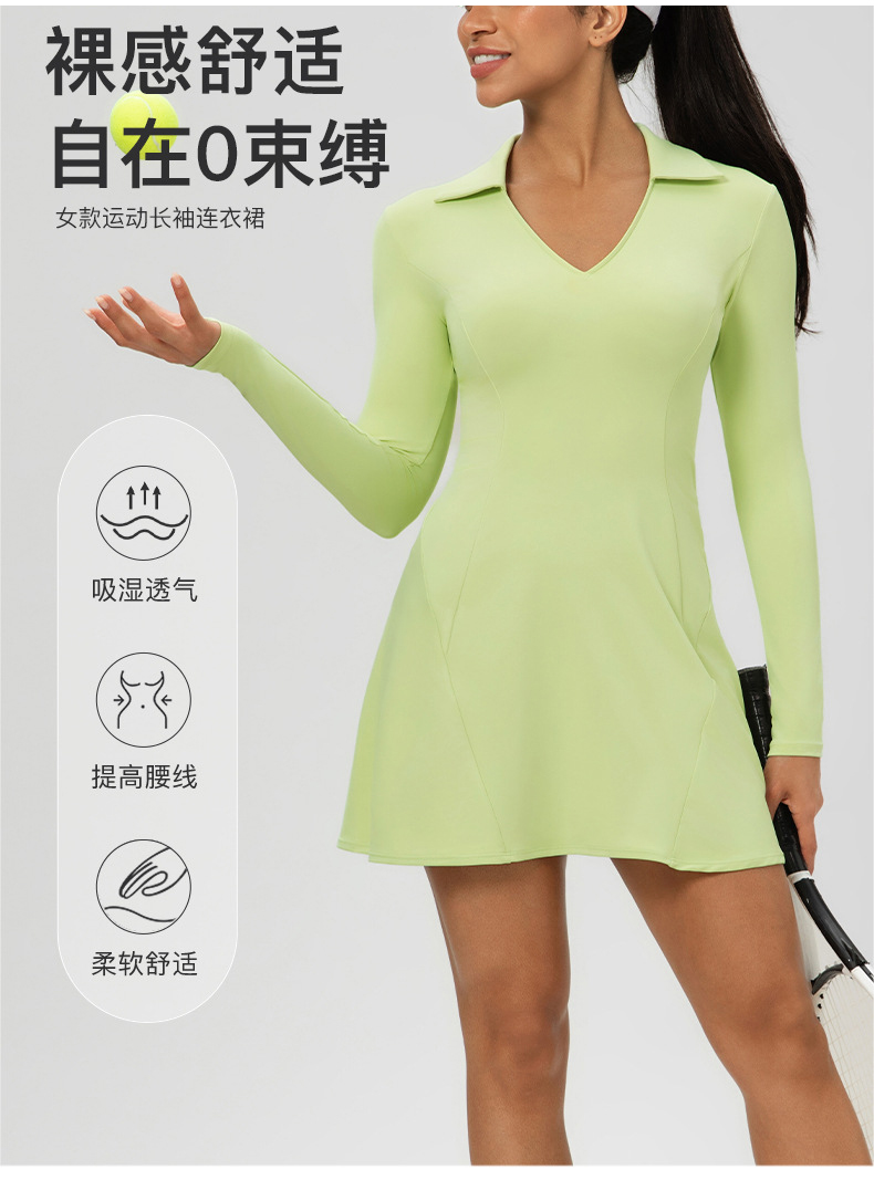 跃牌【欲动春风】系列 秋季长袖翻领网球裙速干收腰显瘦性感V领运动休闲连衣裙52568