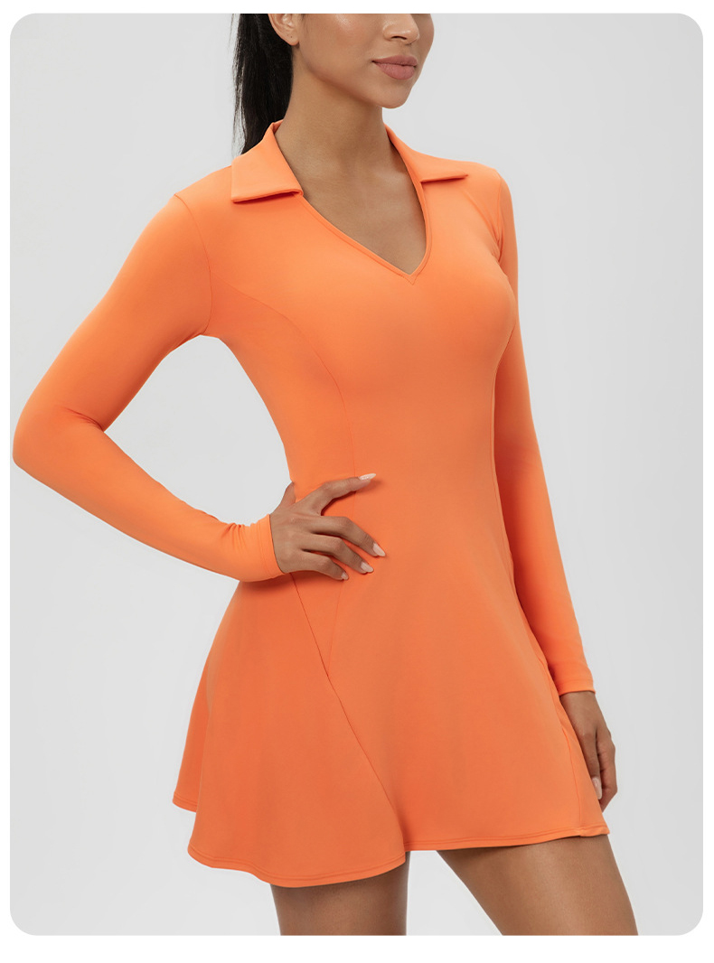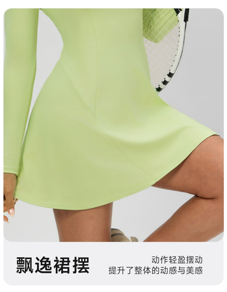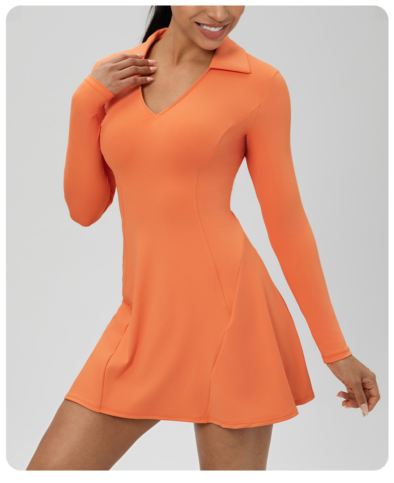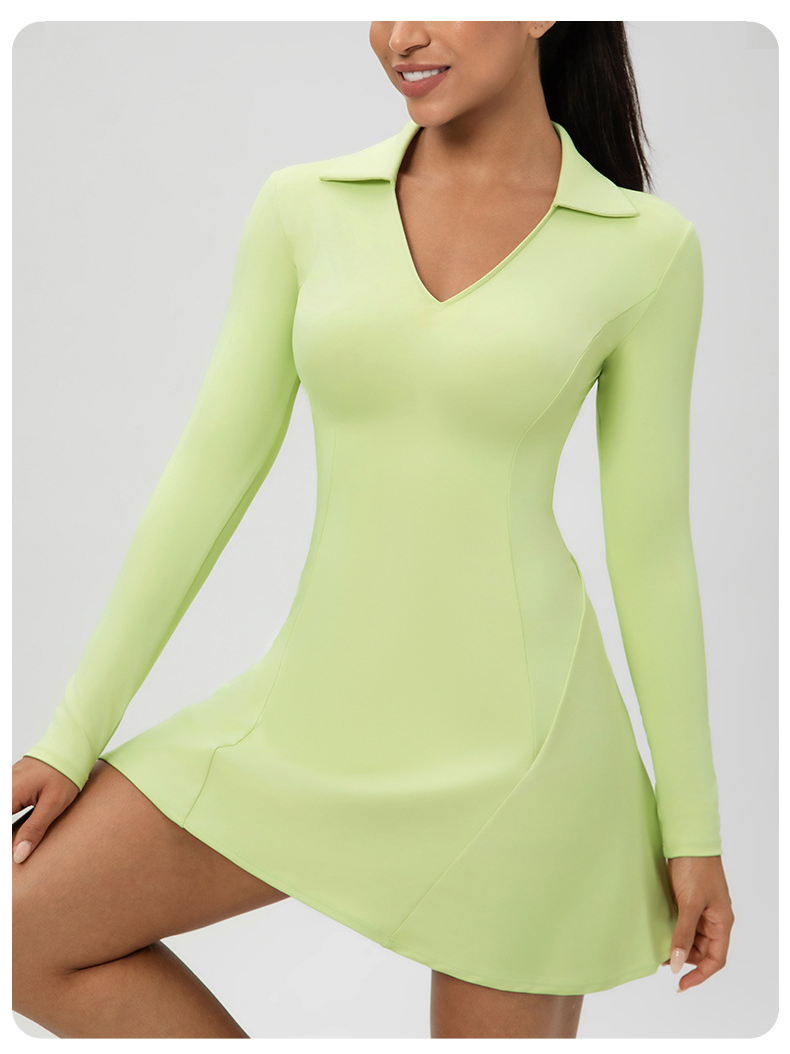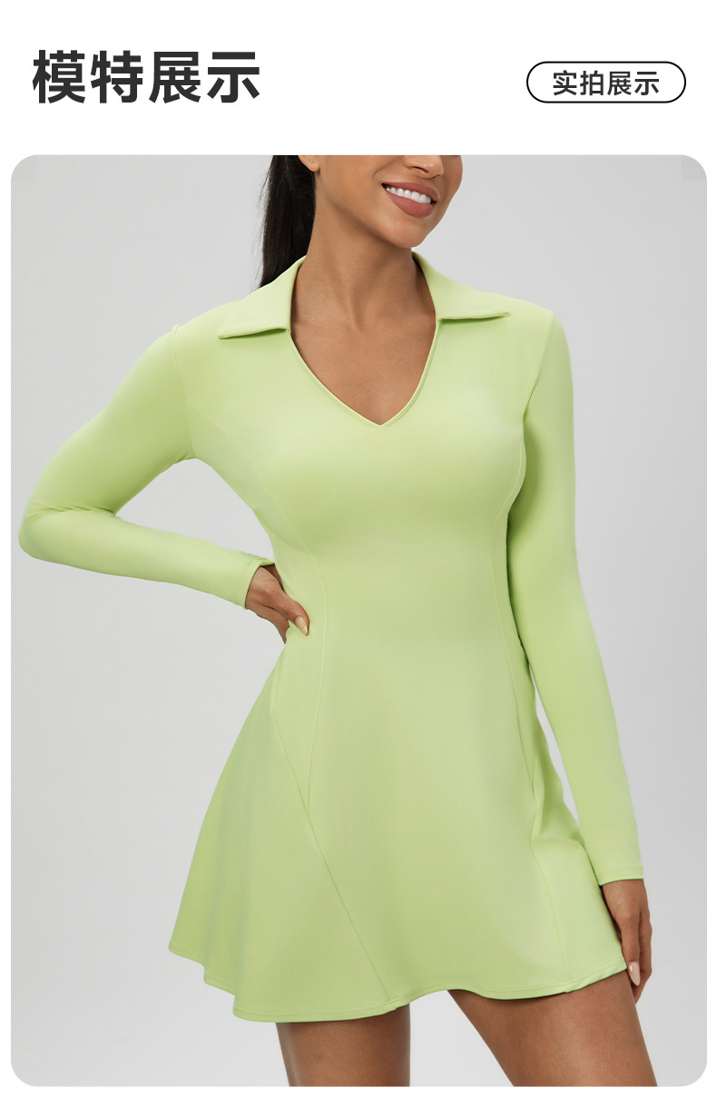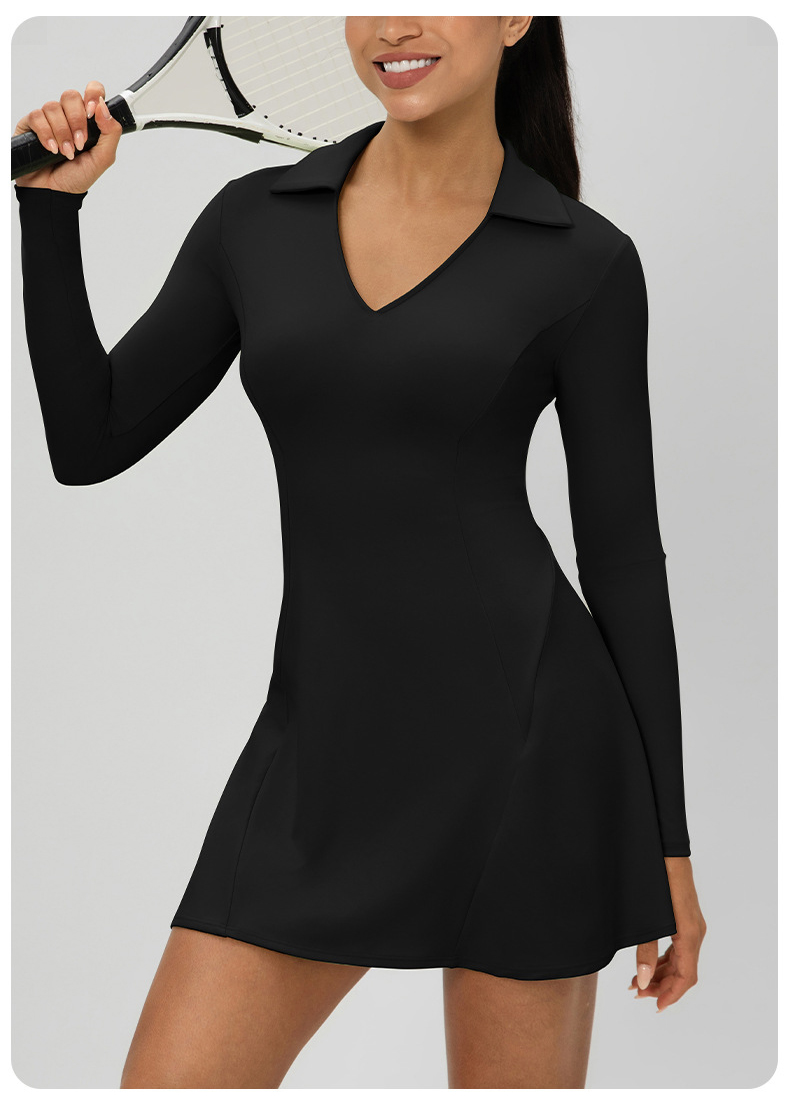 跃牌【欲动春风】系列 秋季长袖翻领网球裙速干收腰显瘦性感V领运动休闲连衣裙52568