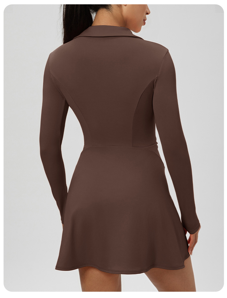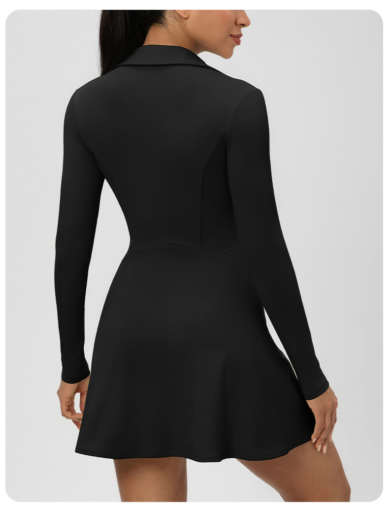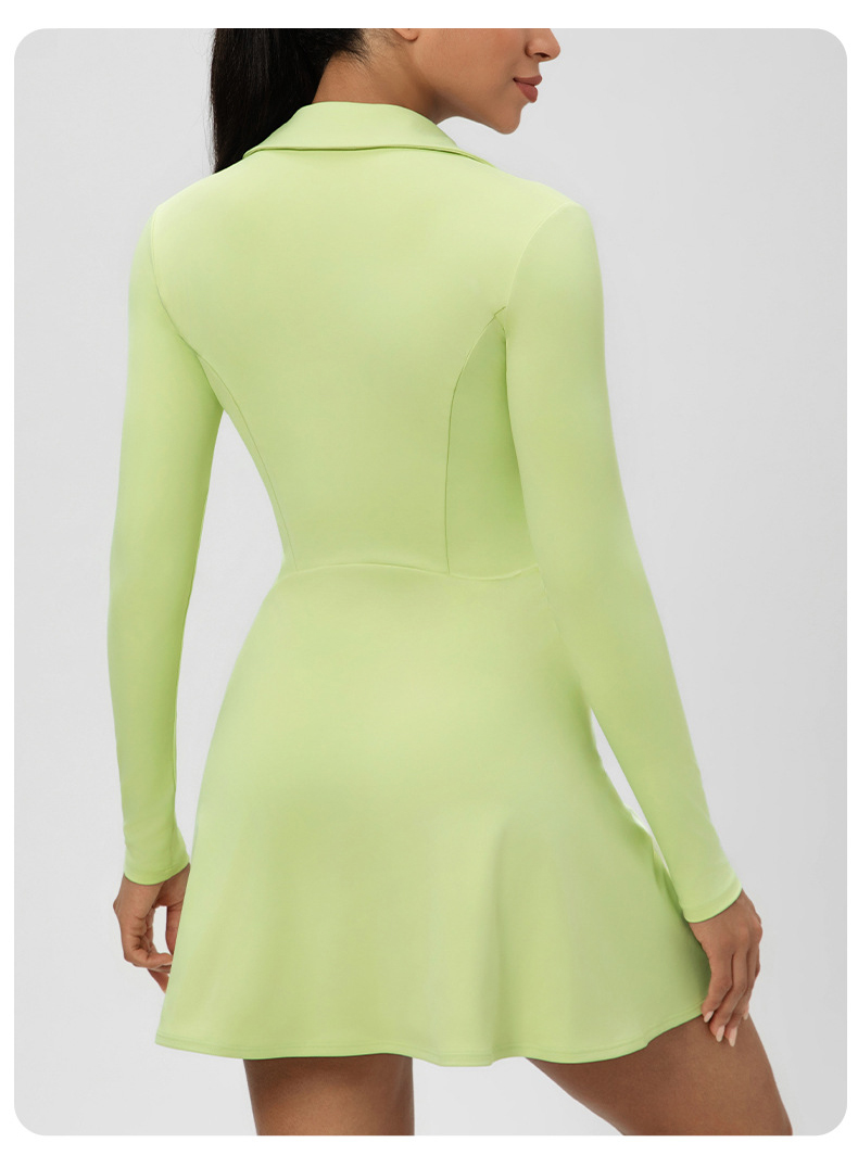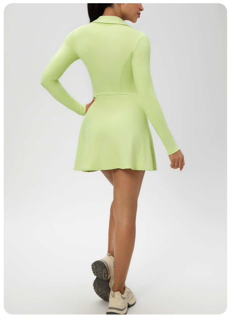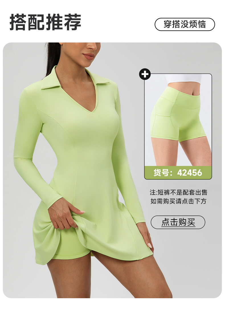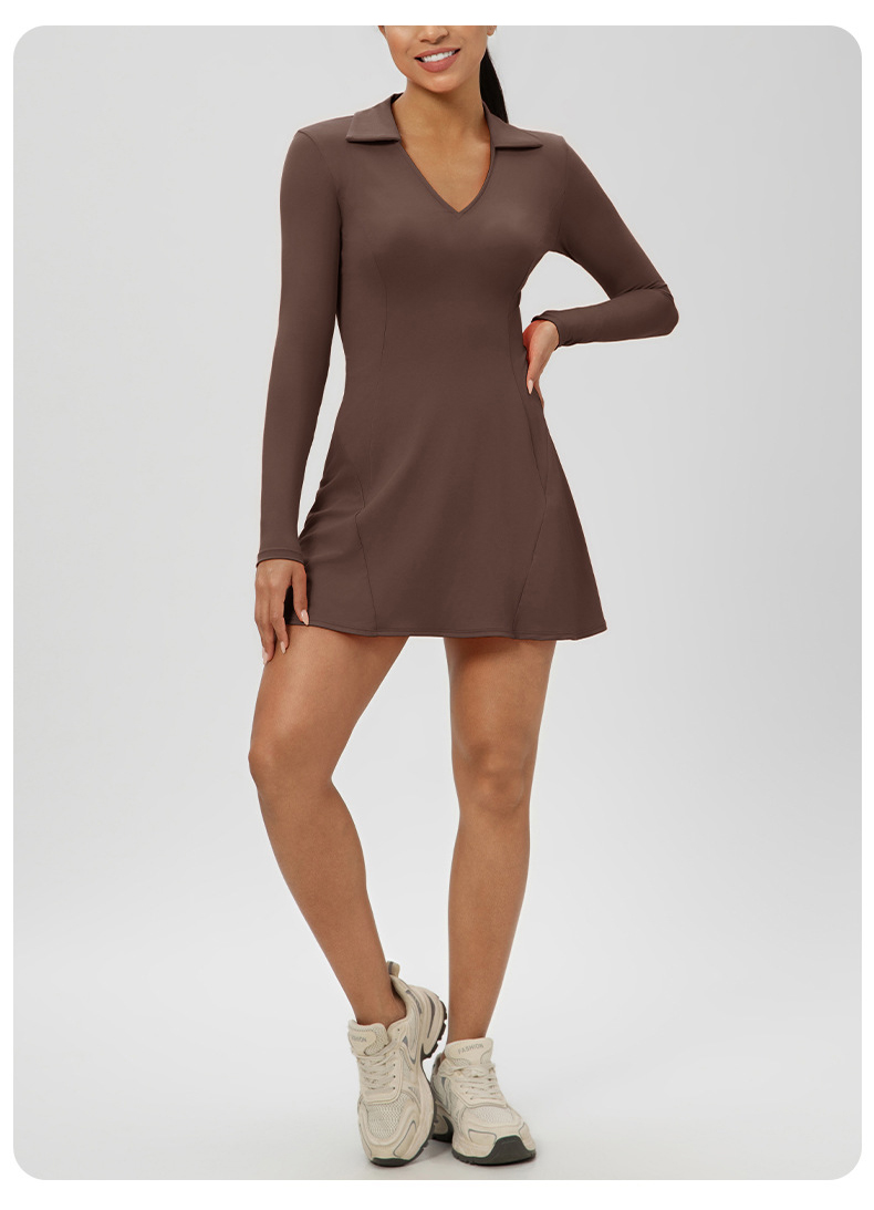 跃牌【欲动春风】系列 秋季长袖翻领网球裙速干收腰显瘦性感V领运动休闲连衣裙52568