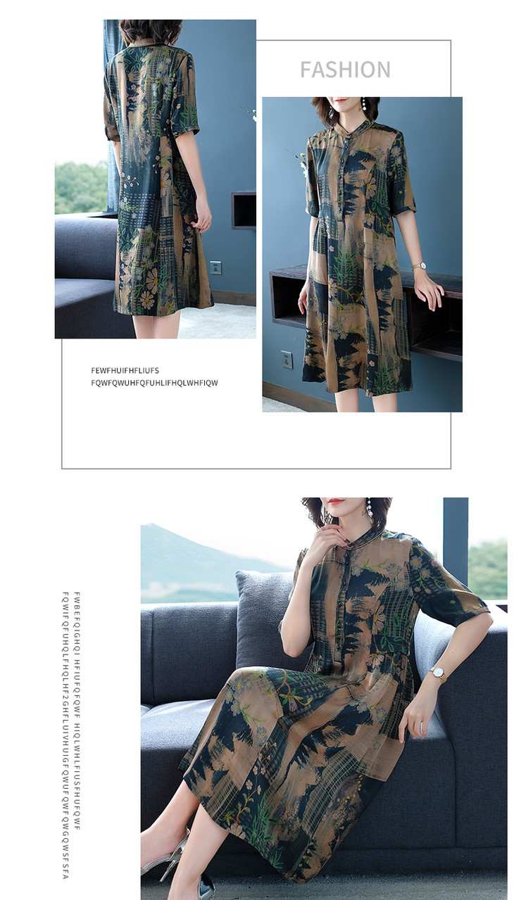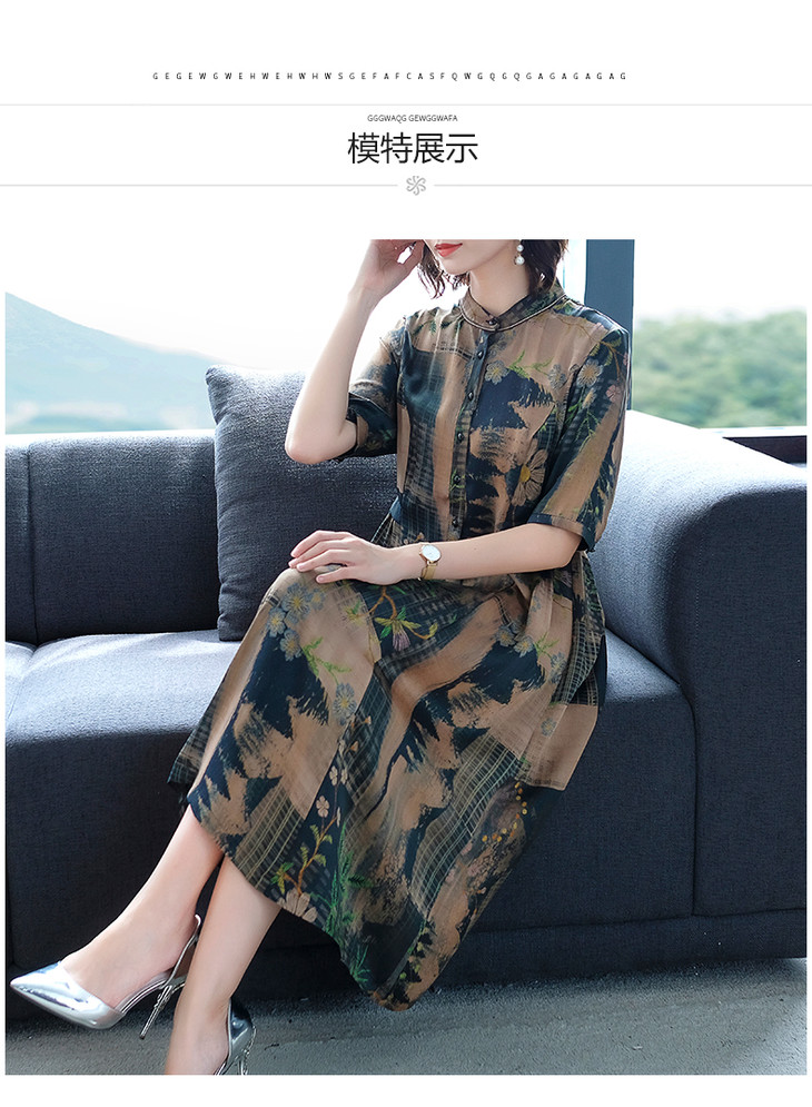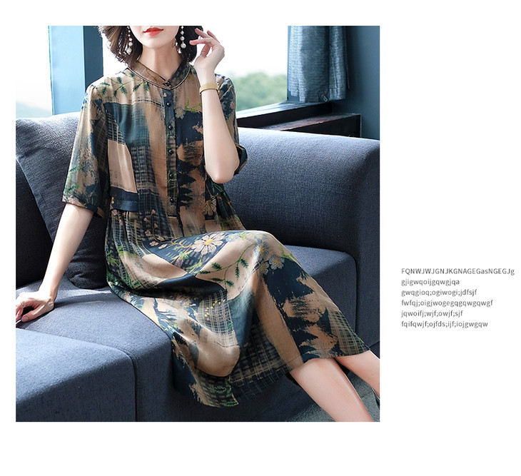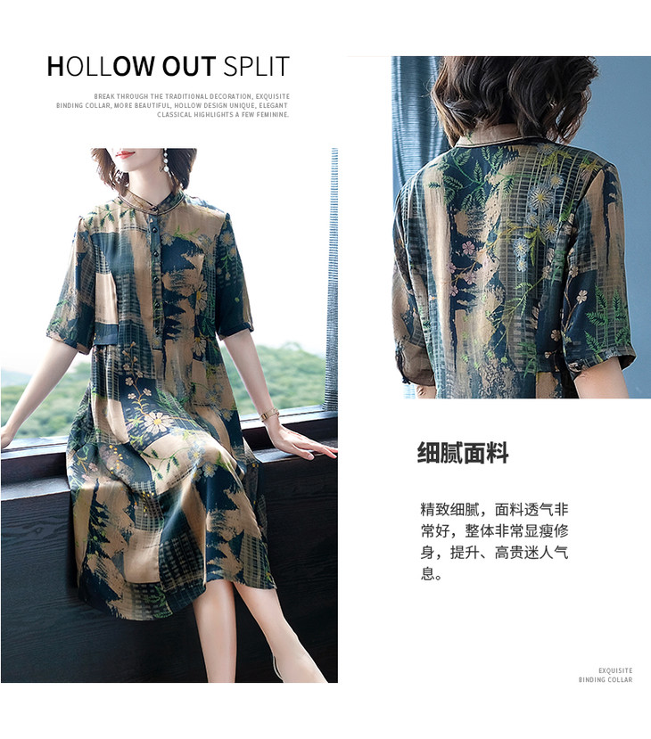 AHM-589新品阔太太复古印花时尚气质高端大牌时尚连衣裙