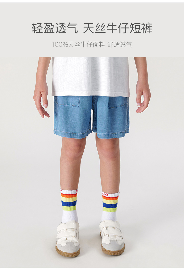 马克珍妮男童凉感透气天丝牛仔短裤儿童裤子2024年夏装新款240551