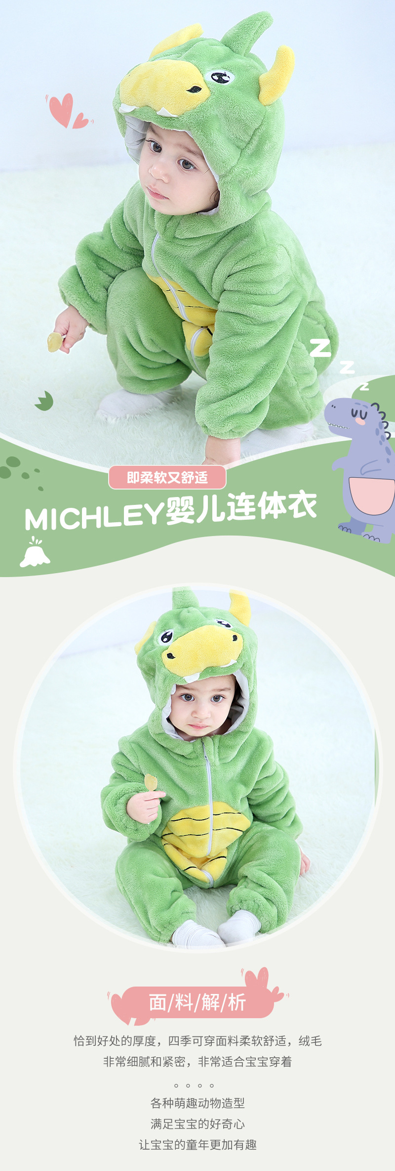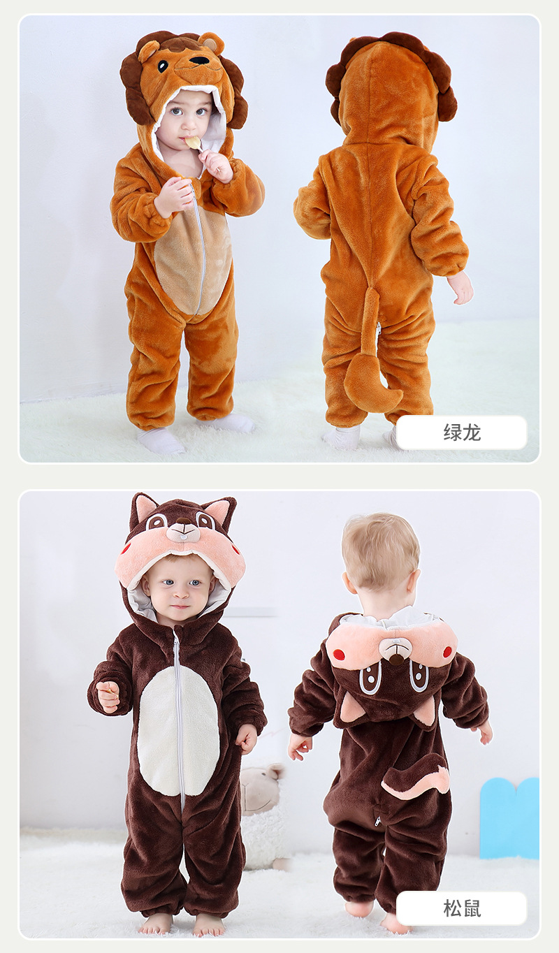 【秋季必备连身衣!】儿童法兰绒爬服婴幼童动物造型连体衣卡通秋季连身衣可爱卡通动物造型,温暖舒适,让宝贝健康快乐成长!lm