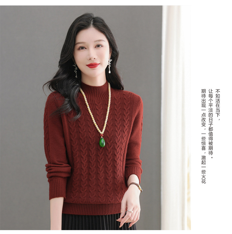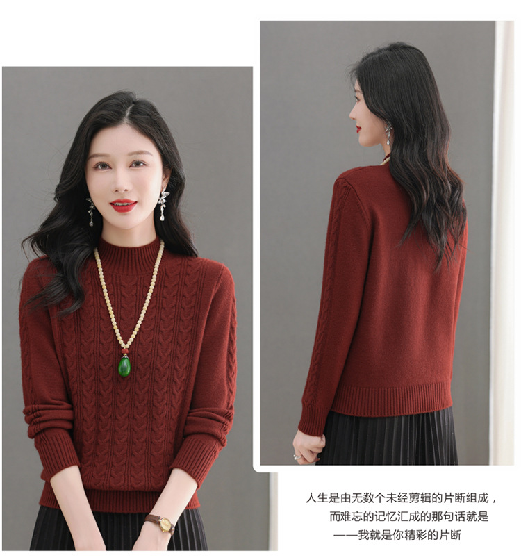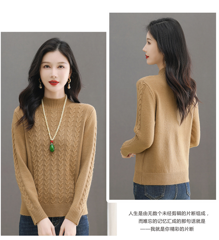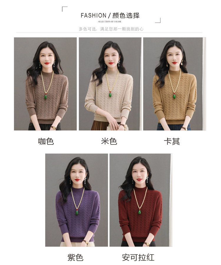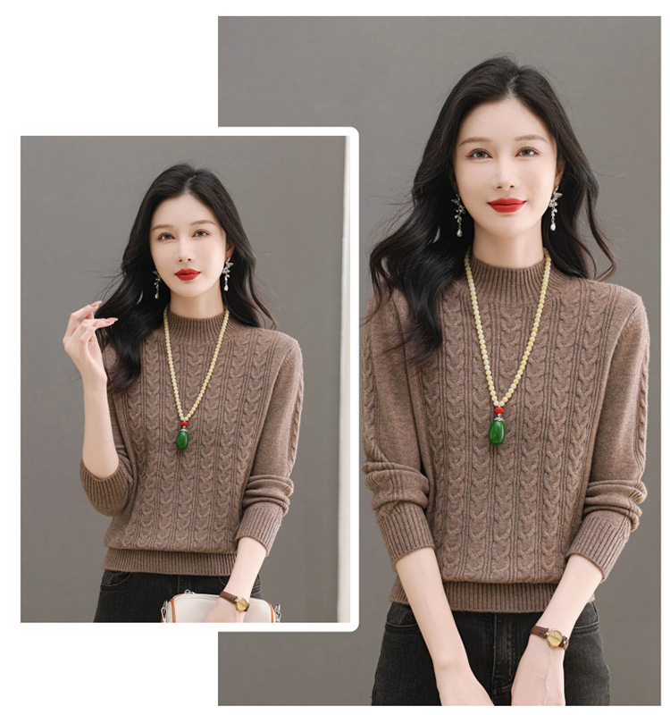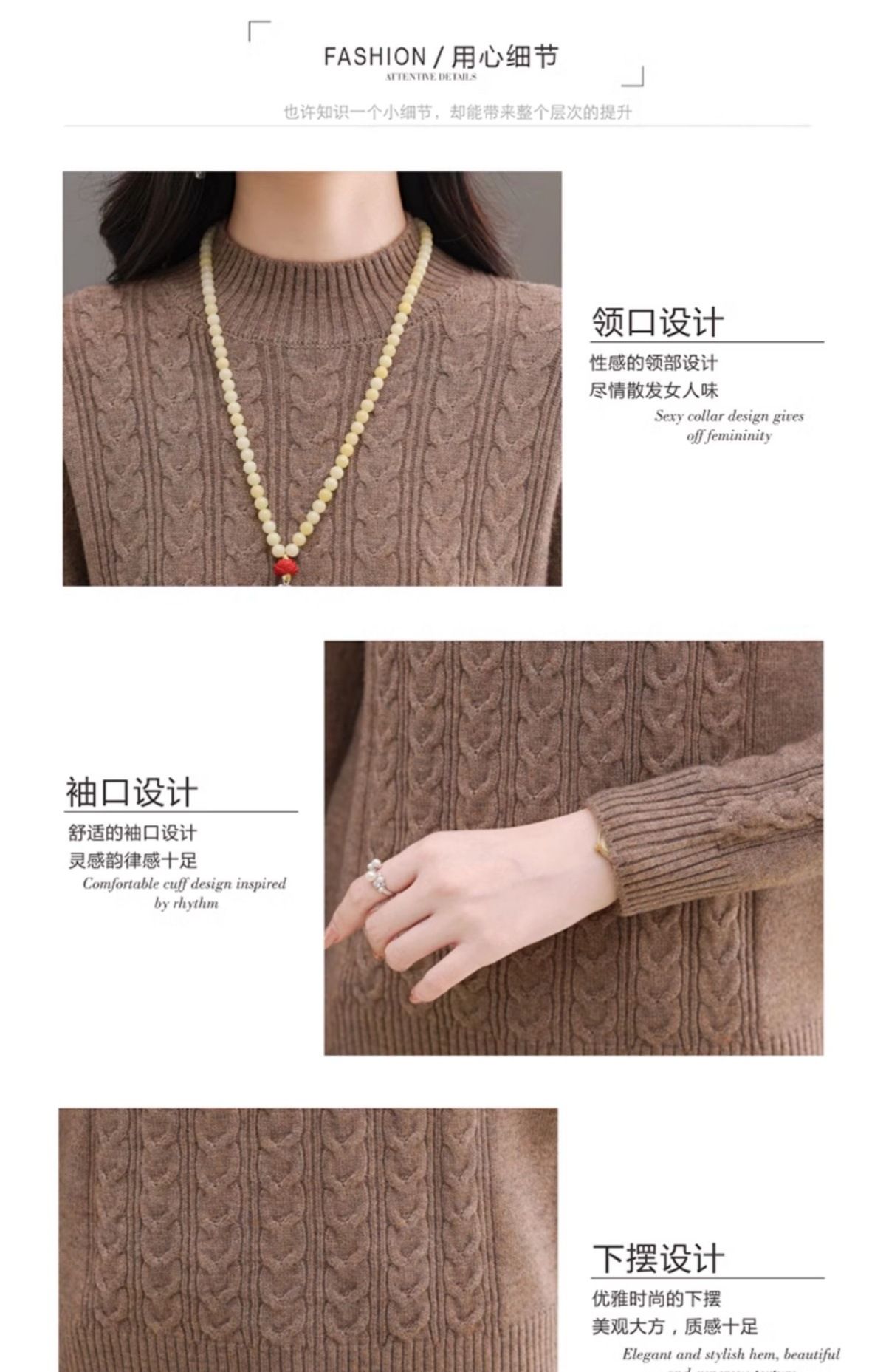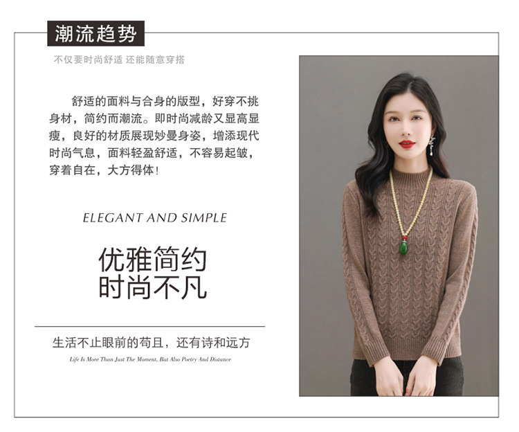 CC-103-66151麻花半高领针织打底衫女士长袖新款秋冬妈妈上衣内搭短款厚款毛衣