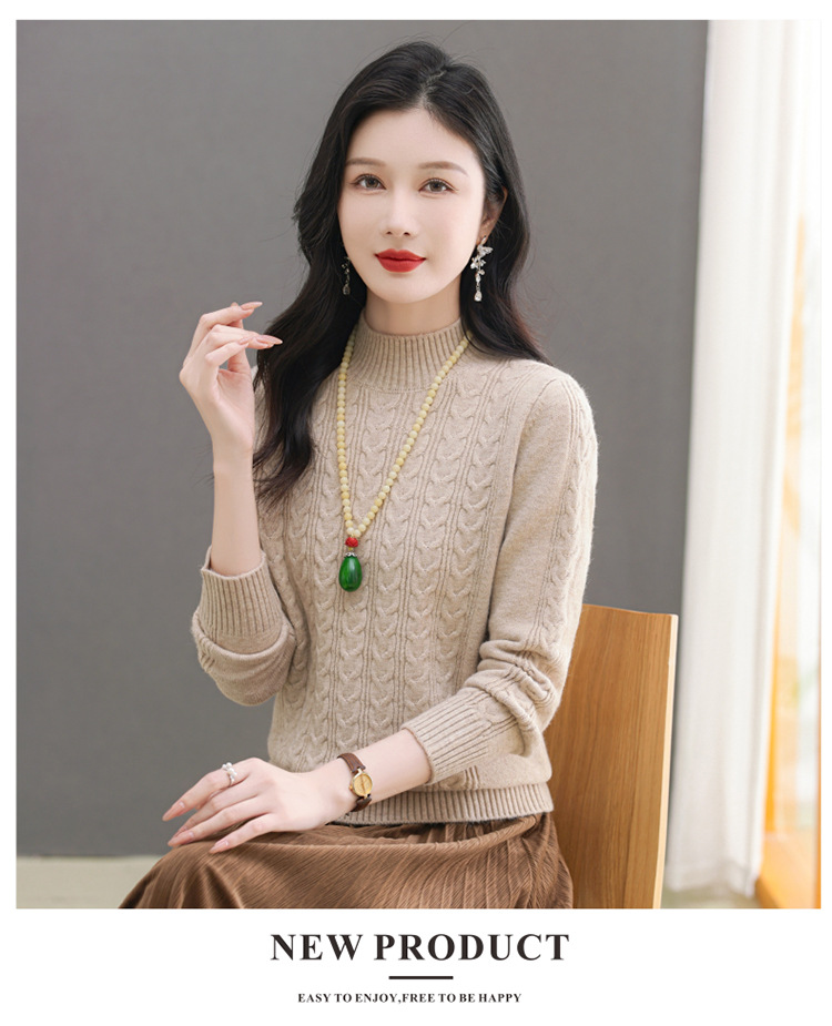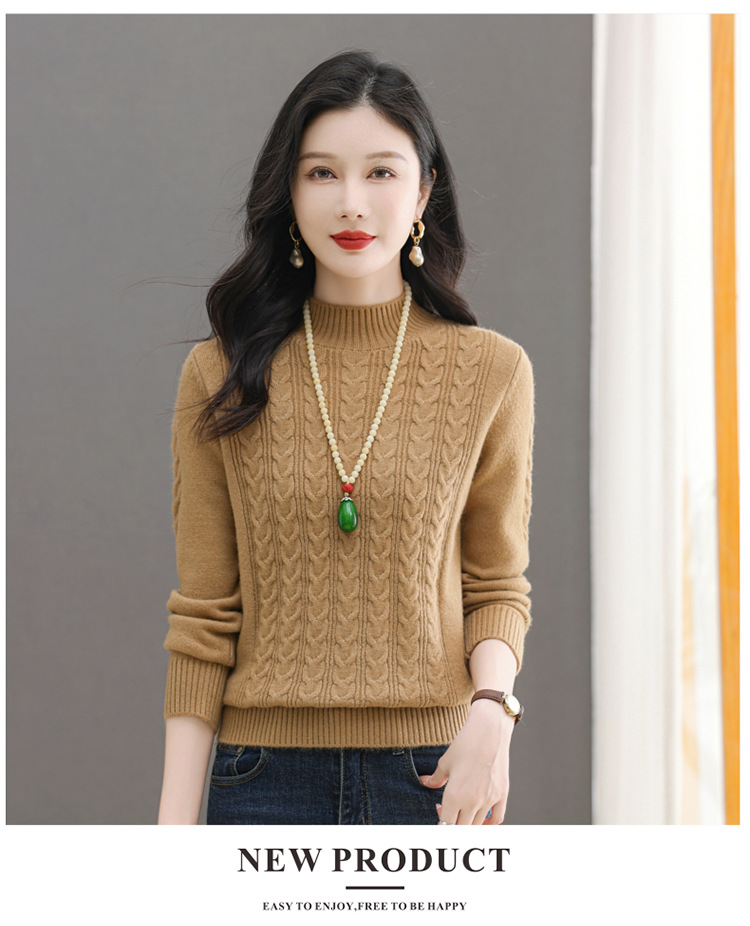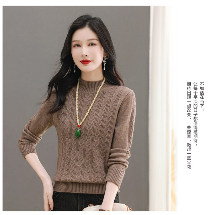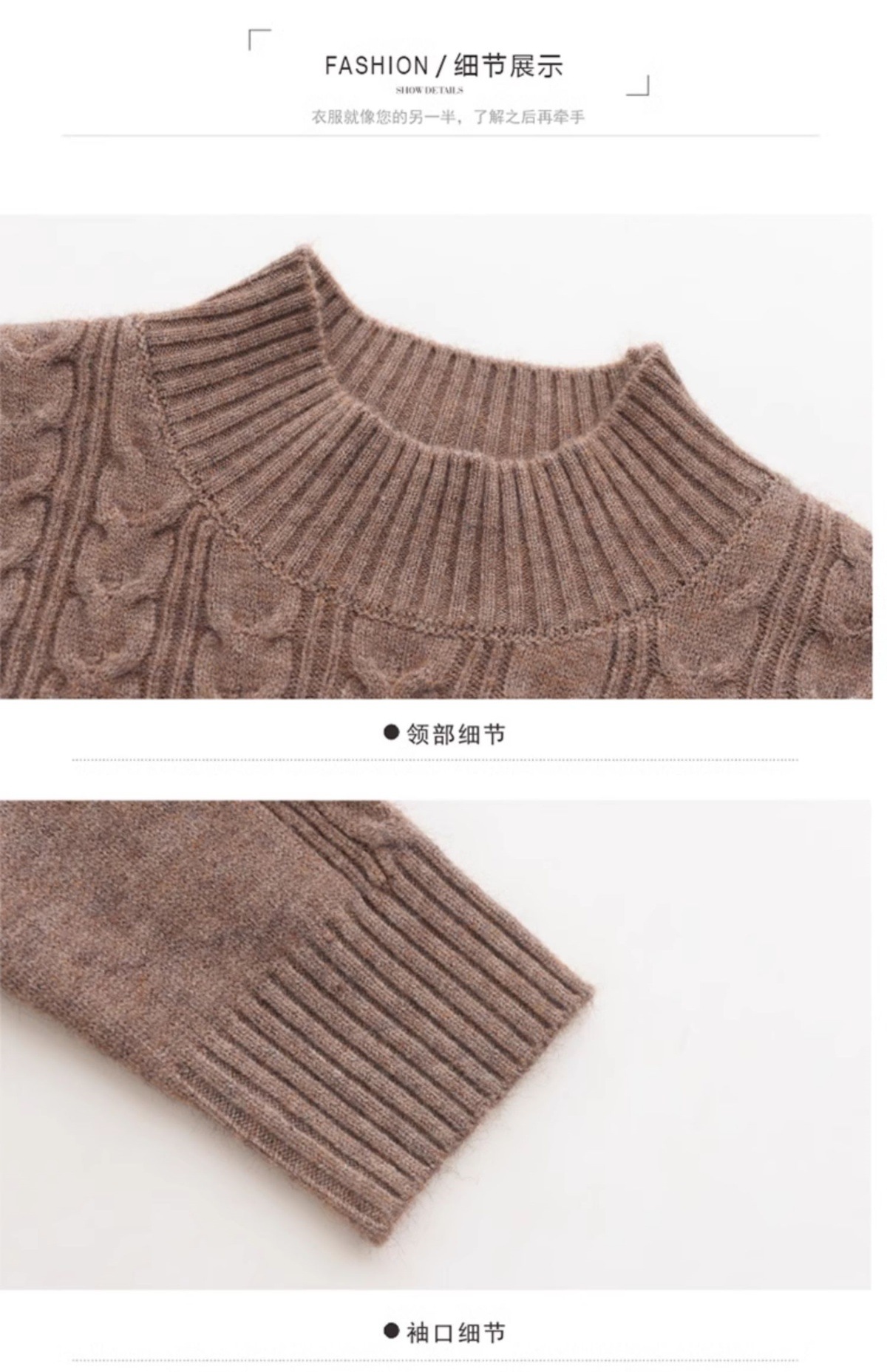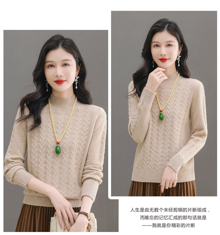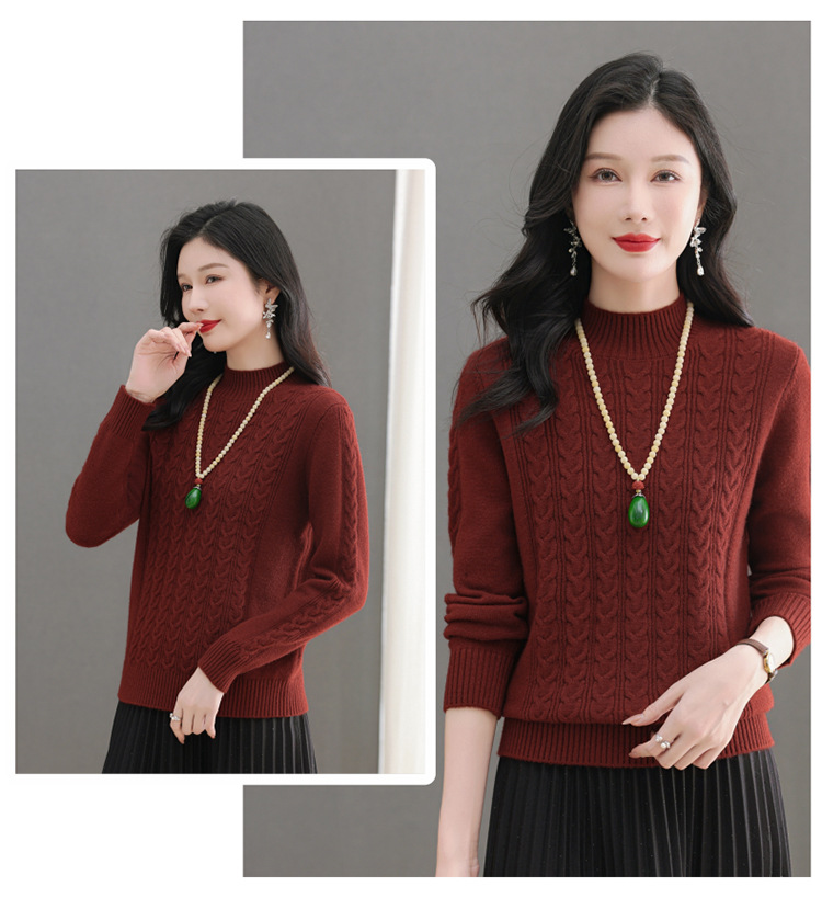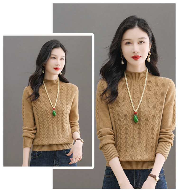 CC-103-66151麻花半高领针织打底衫女士长袖新款秋冬妈妈上衣内搭短款厚款毛衣