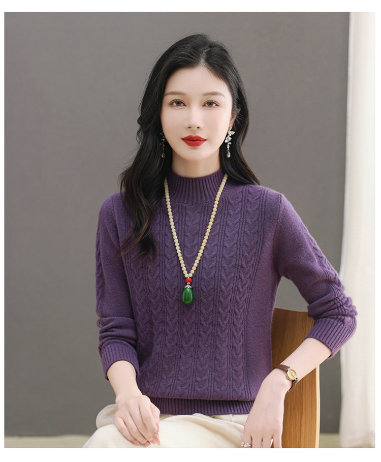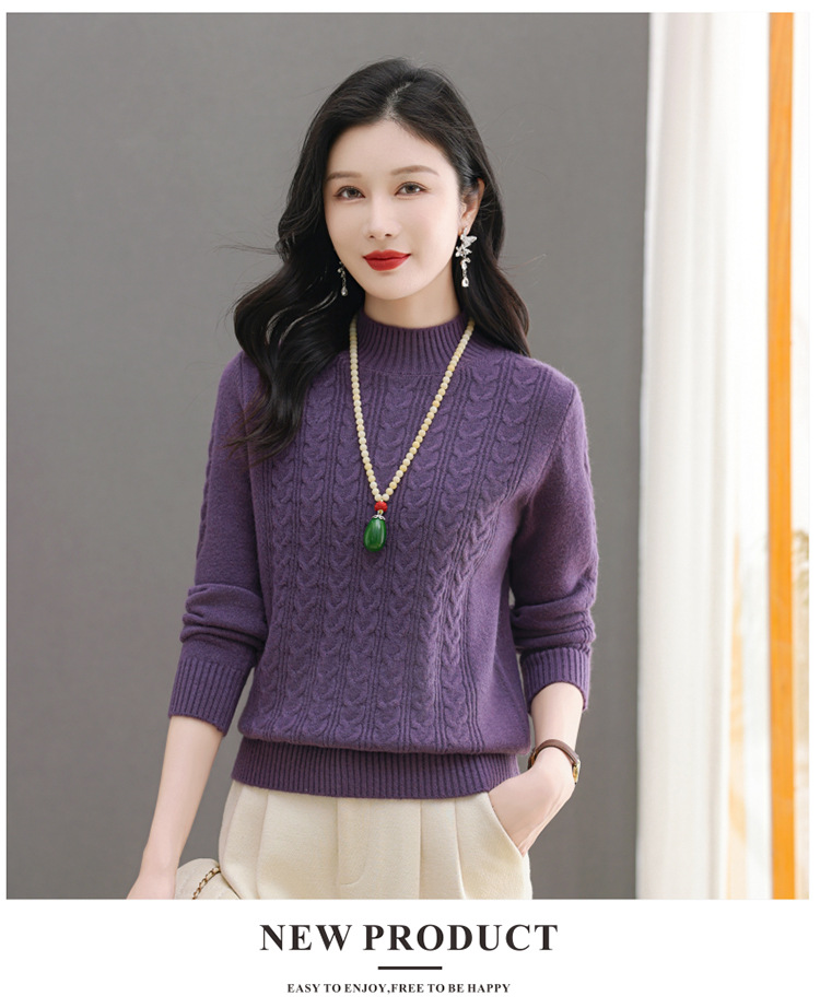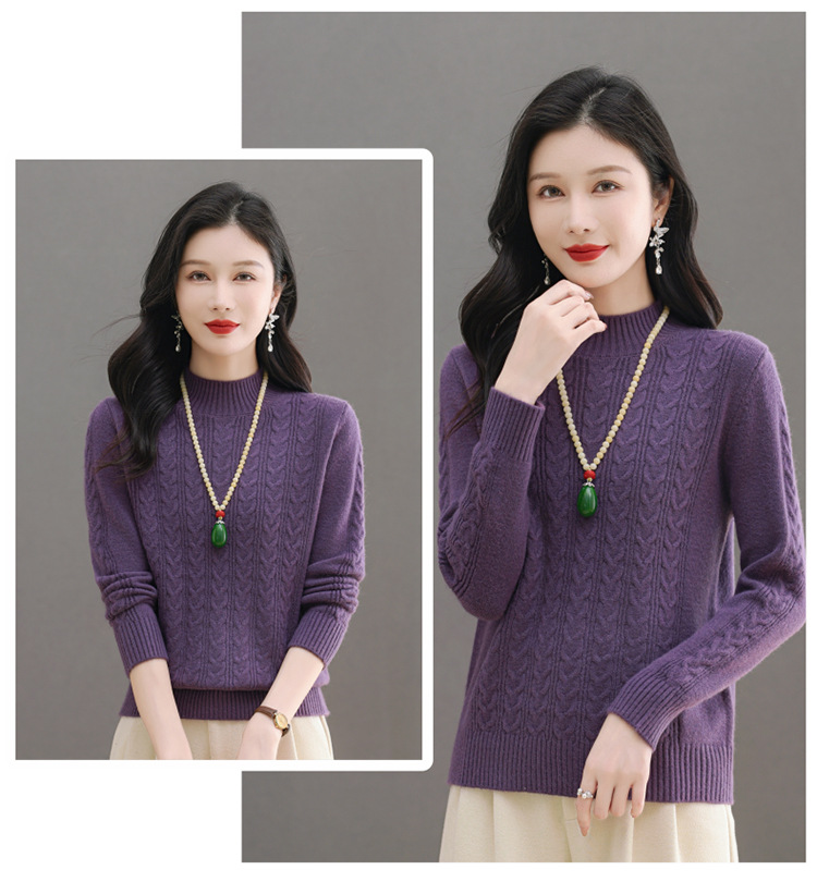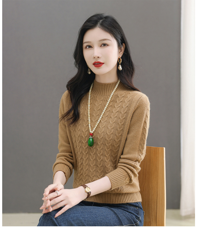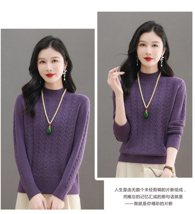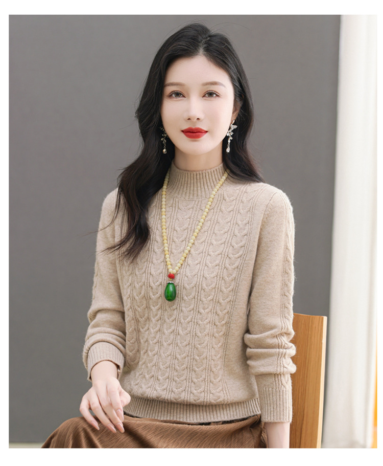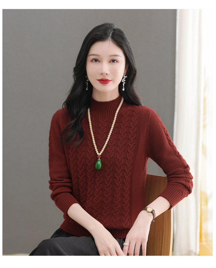 CC-103-66151麻花半高领针织打底衫女士长袖新款秋冬妈妈上衣内搭短款厚款毛衣