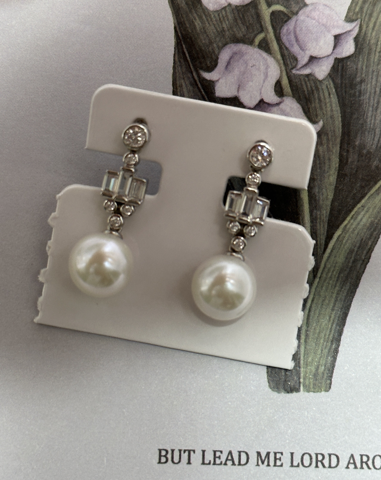 姐妹们,好看好看‼️福利上新啦!凯特王妃同款耳坠,我们选用了正圆基本无暇的强光淡水珍珠做了,配件是珠宝工艺,纯银,不褪色,质量很好,视觉感很厚实的。