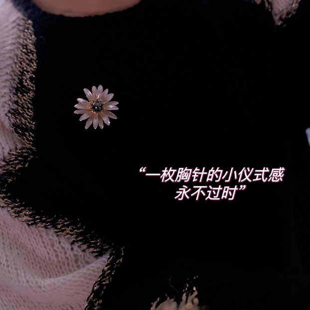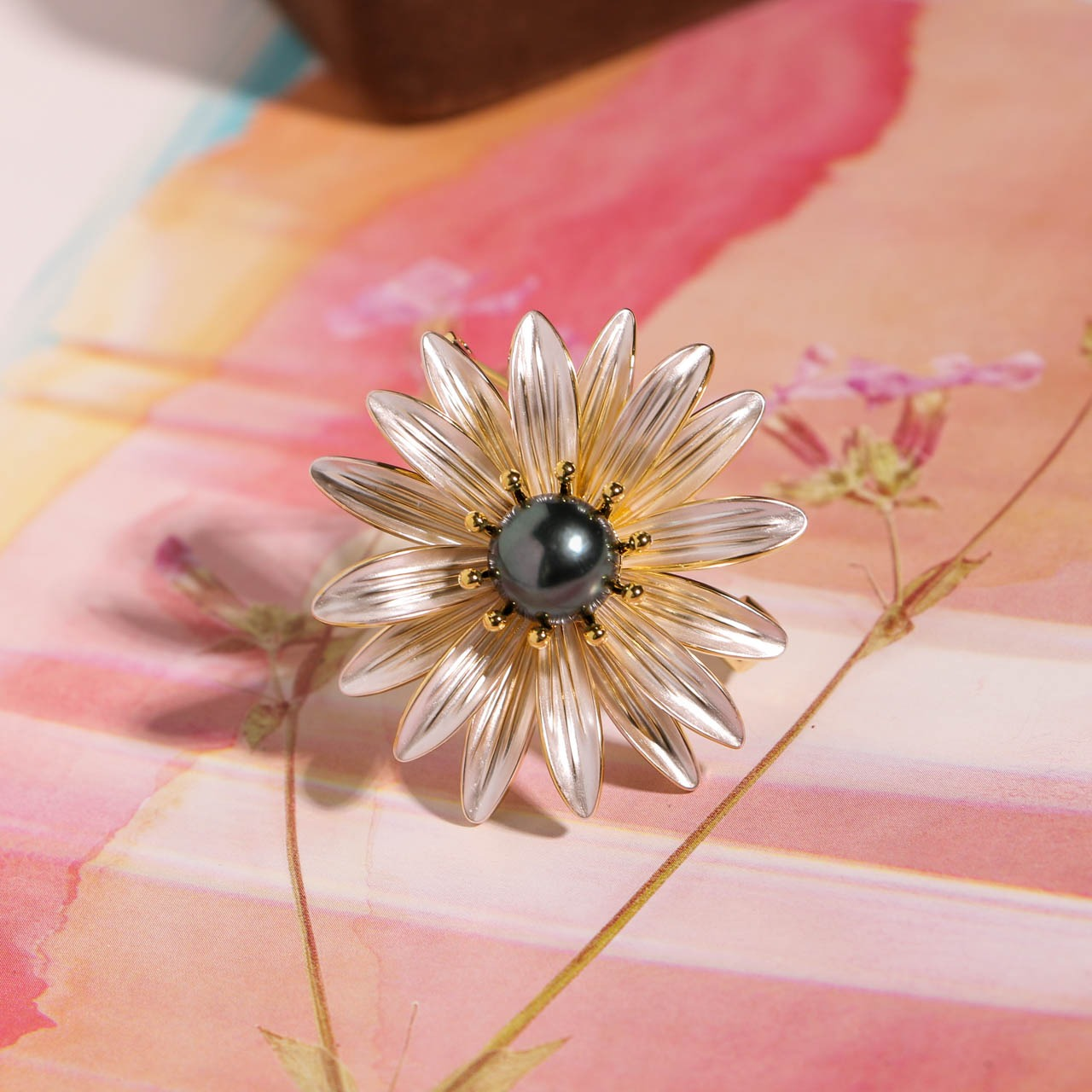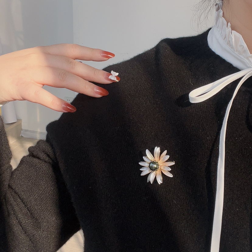 【甄珠贝·花卉系列】雏菊飘带和日本成品进口大溪地黑珠雏菊胸花礼盒套装