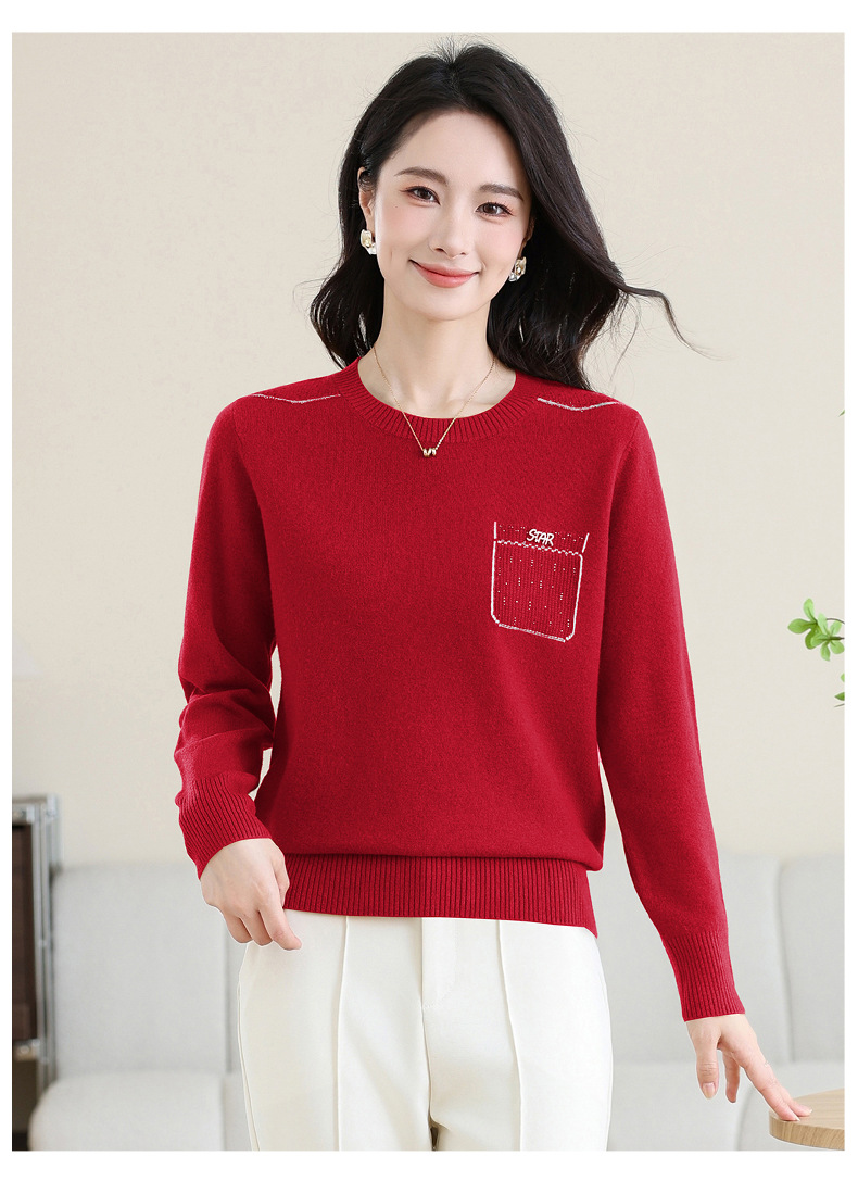 CC-MH-332女士100纯羊毛衫新款2024秋冬季针织打底衫内搭圆领上衣妈妈毛衣