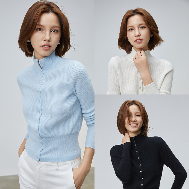 VogoPetite亲肤舒适显瘦半高领收腰开衫100%山羊绒BP133F1701