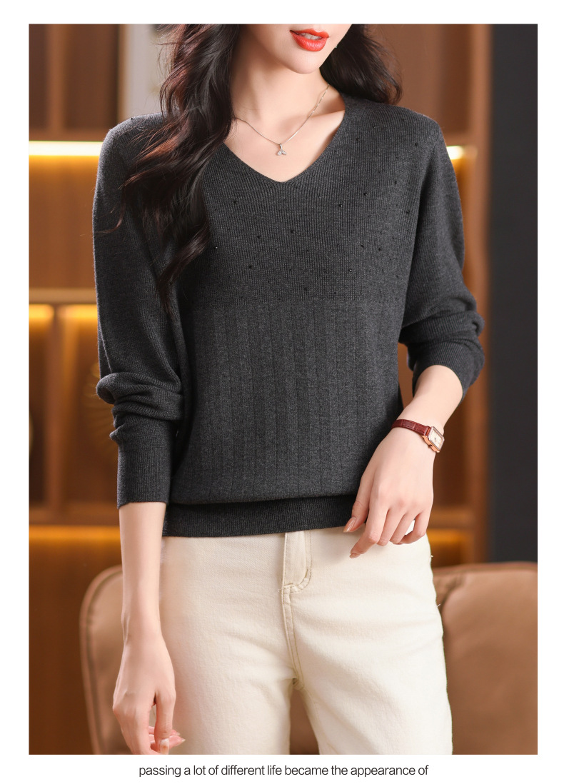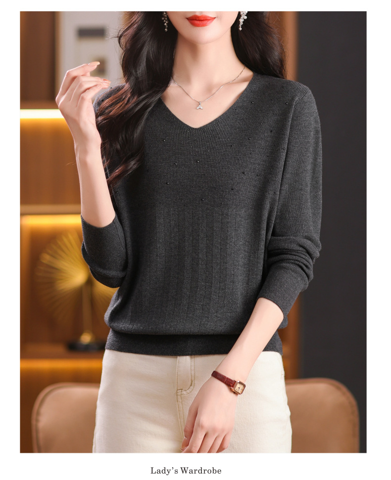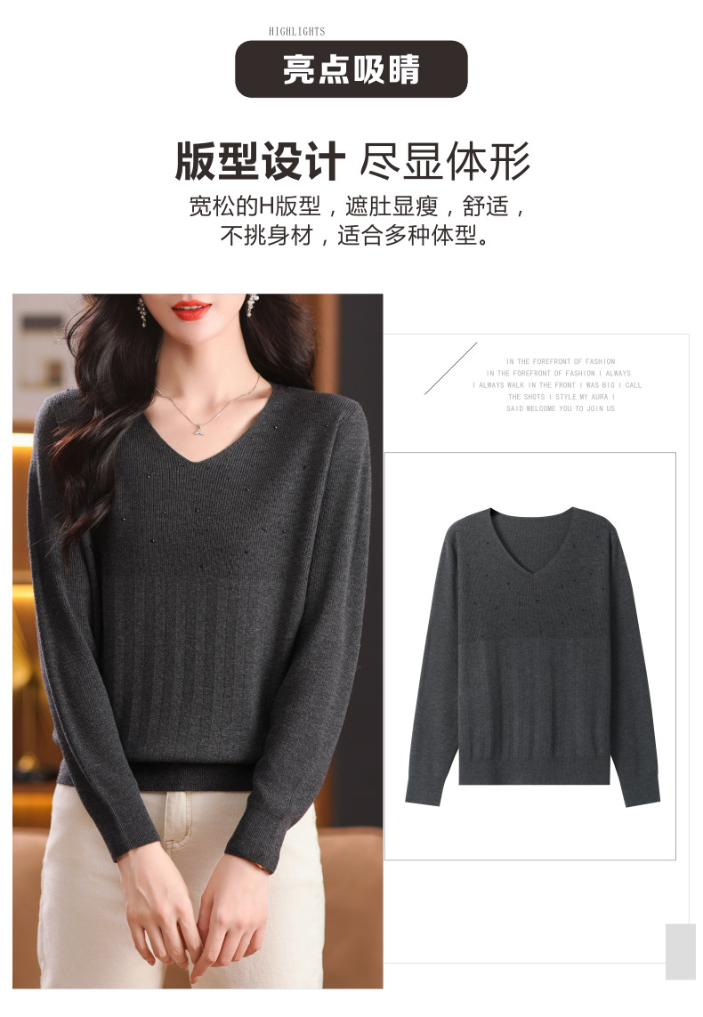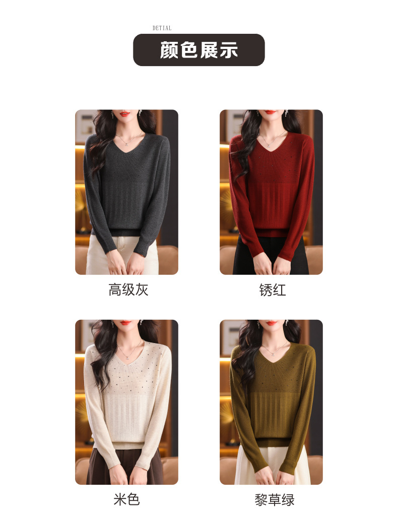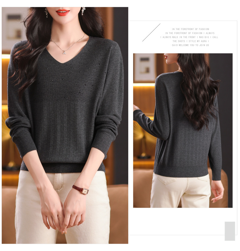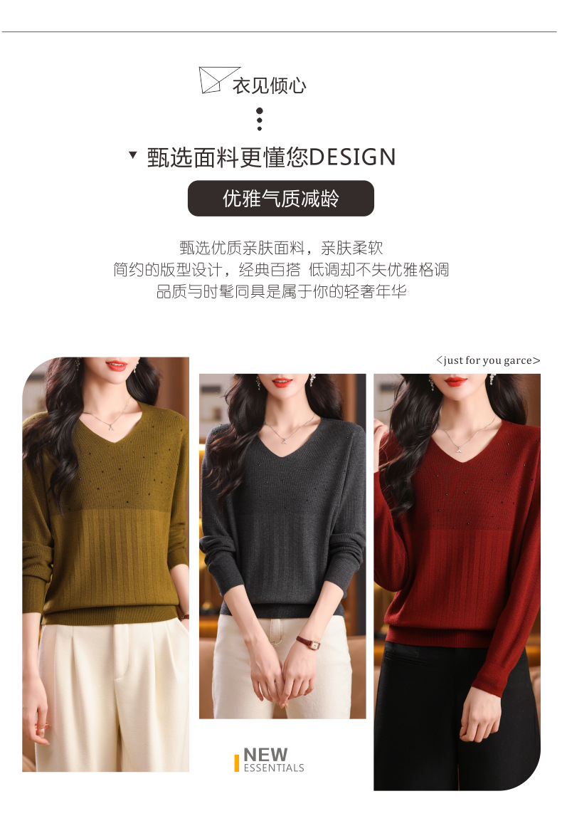 CC-XMY-7067早秋薄款针织衫女长袖V领上衣秋装2024年新款时尚羊毛打底衫