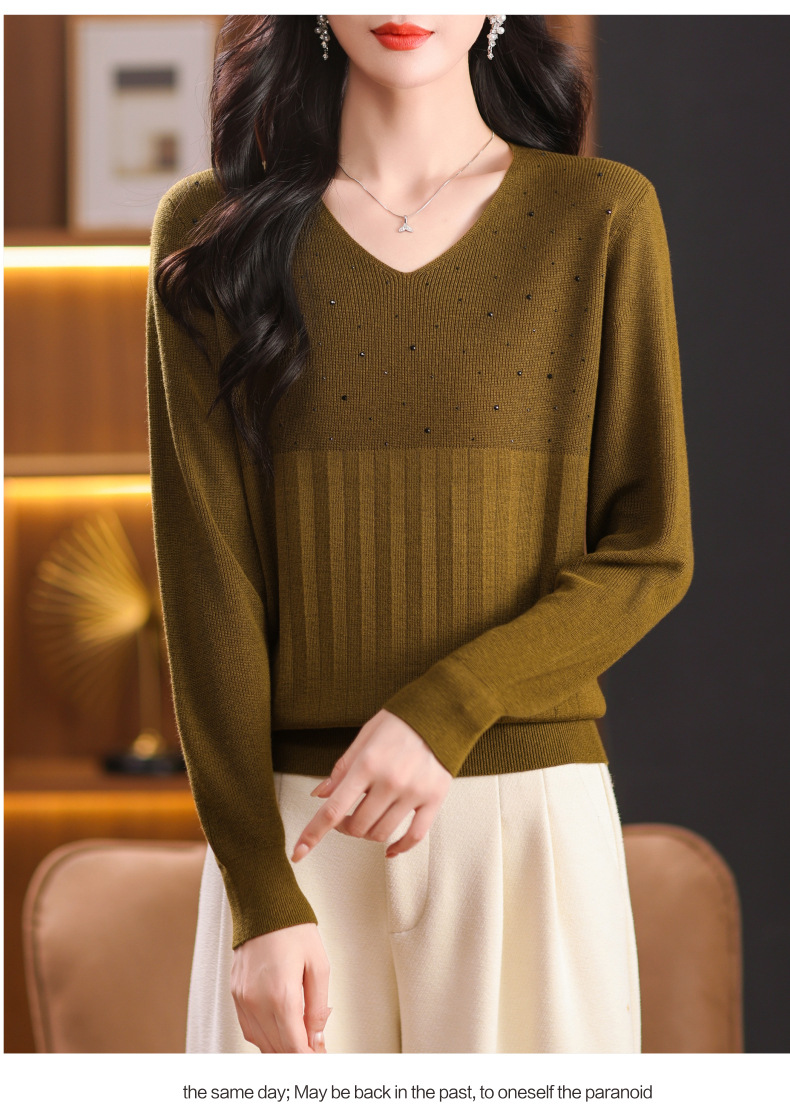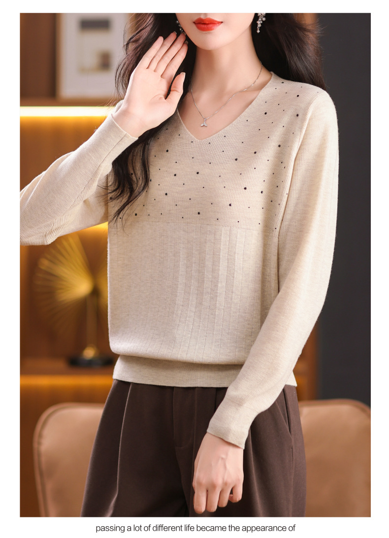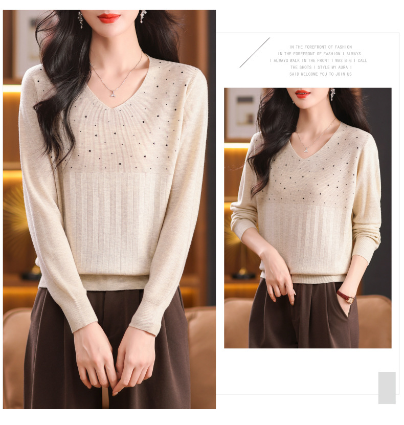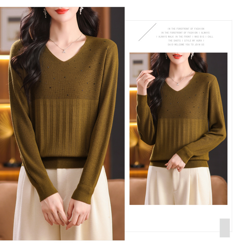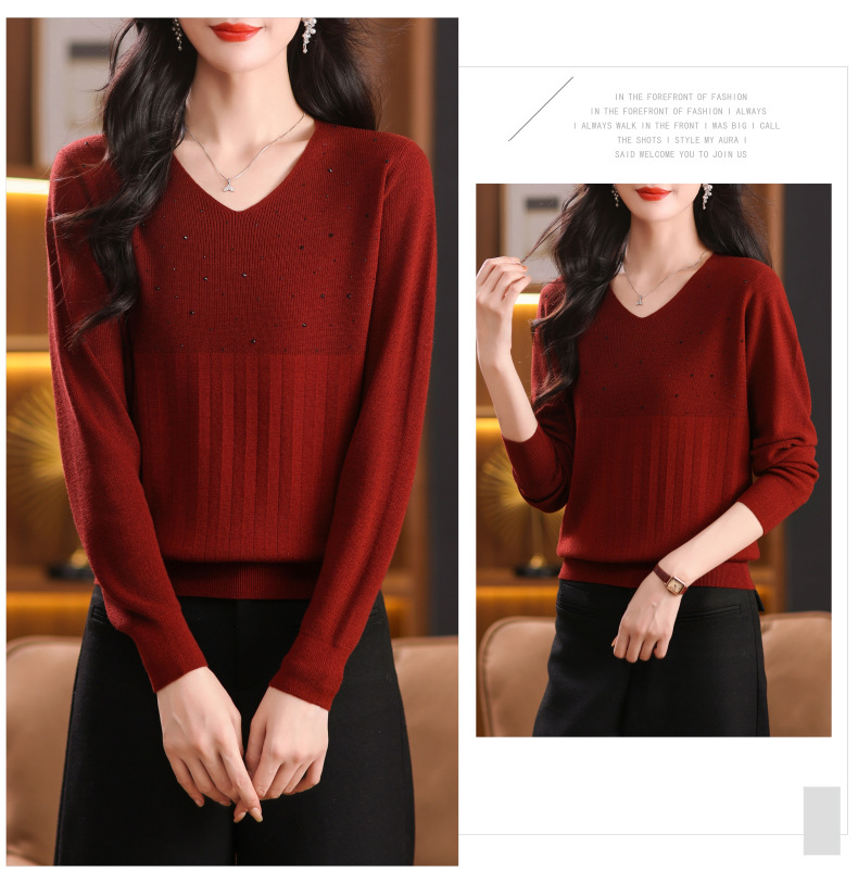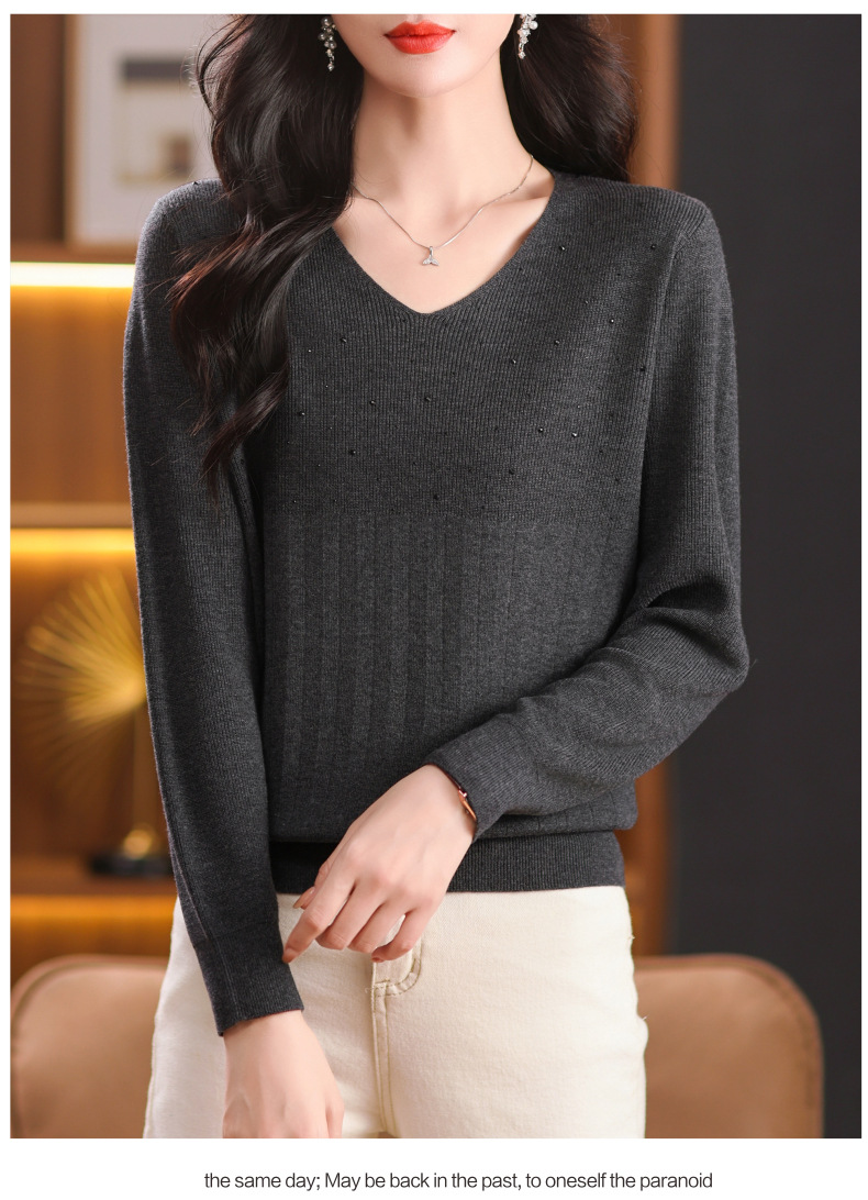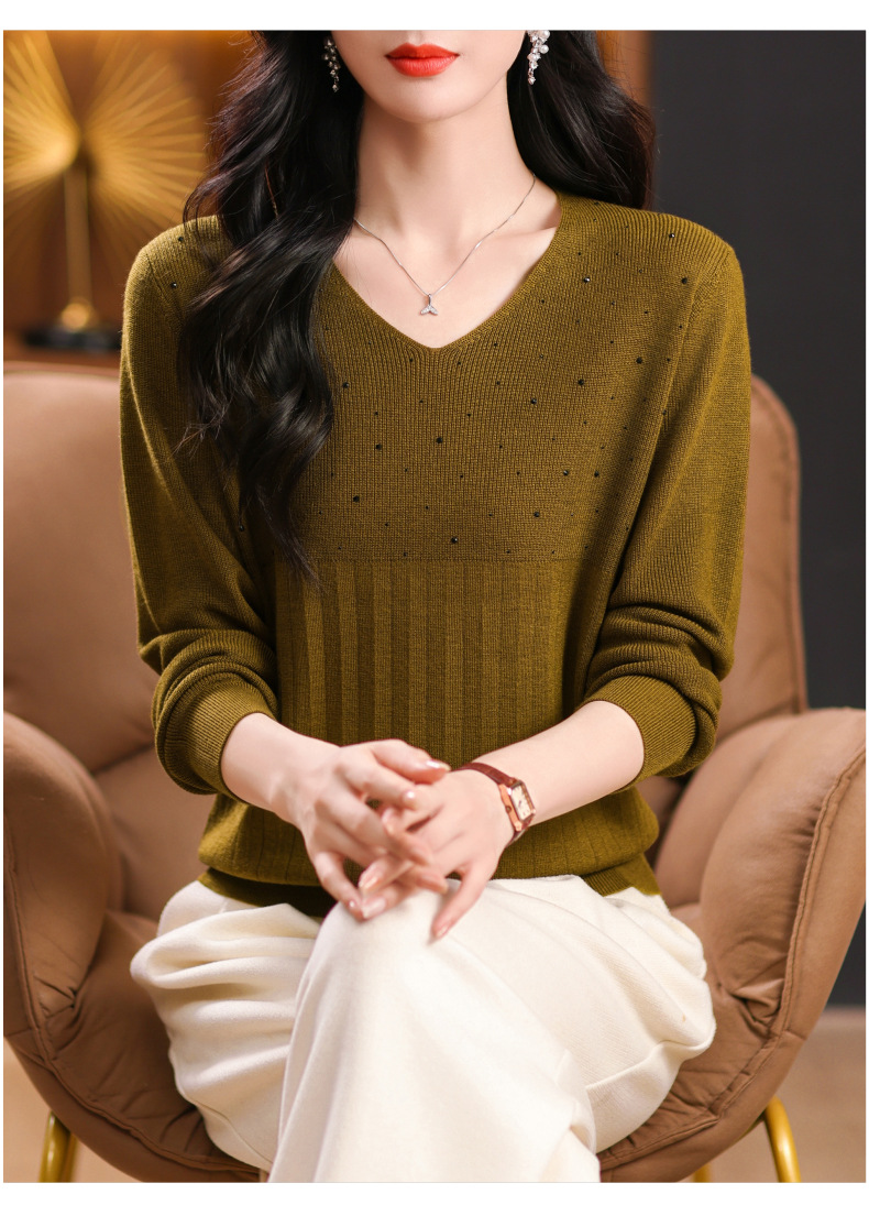 CC-XMY-7067早秋薄款针织衫女长袖V领上衣秋装2024年新款时尚羊毛打底衫