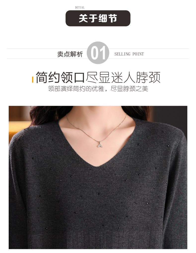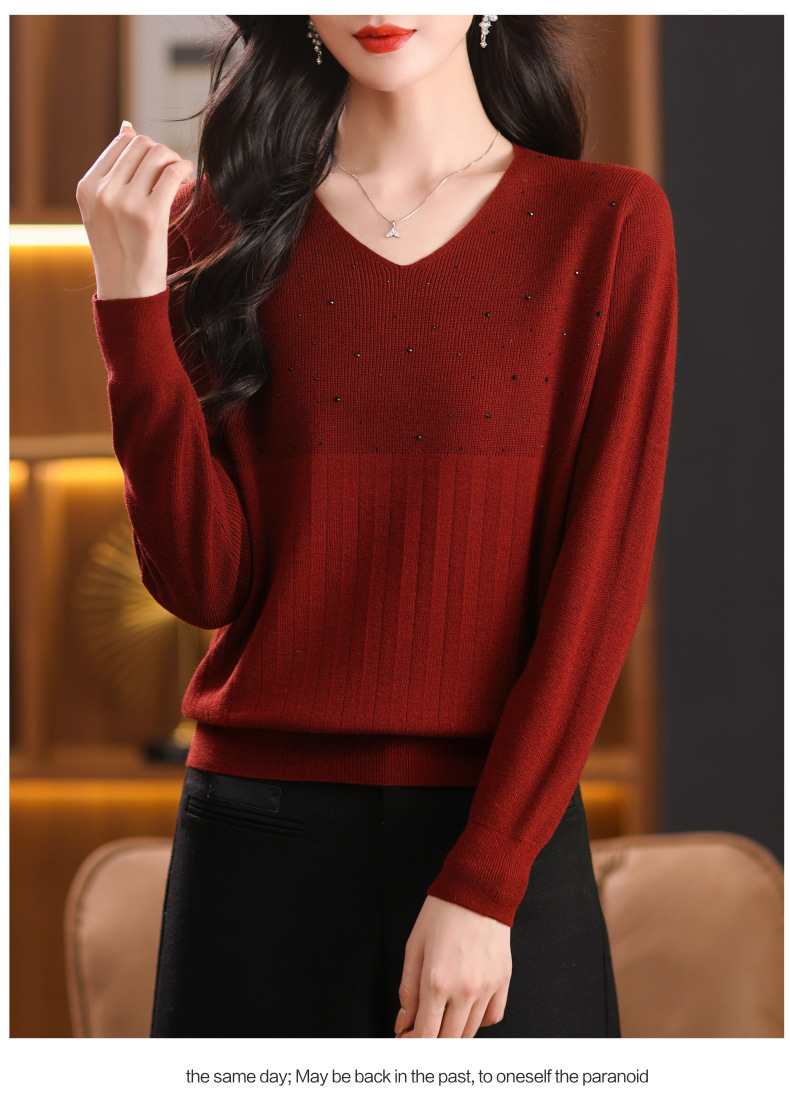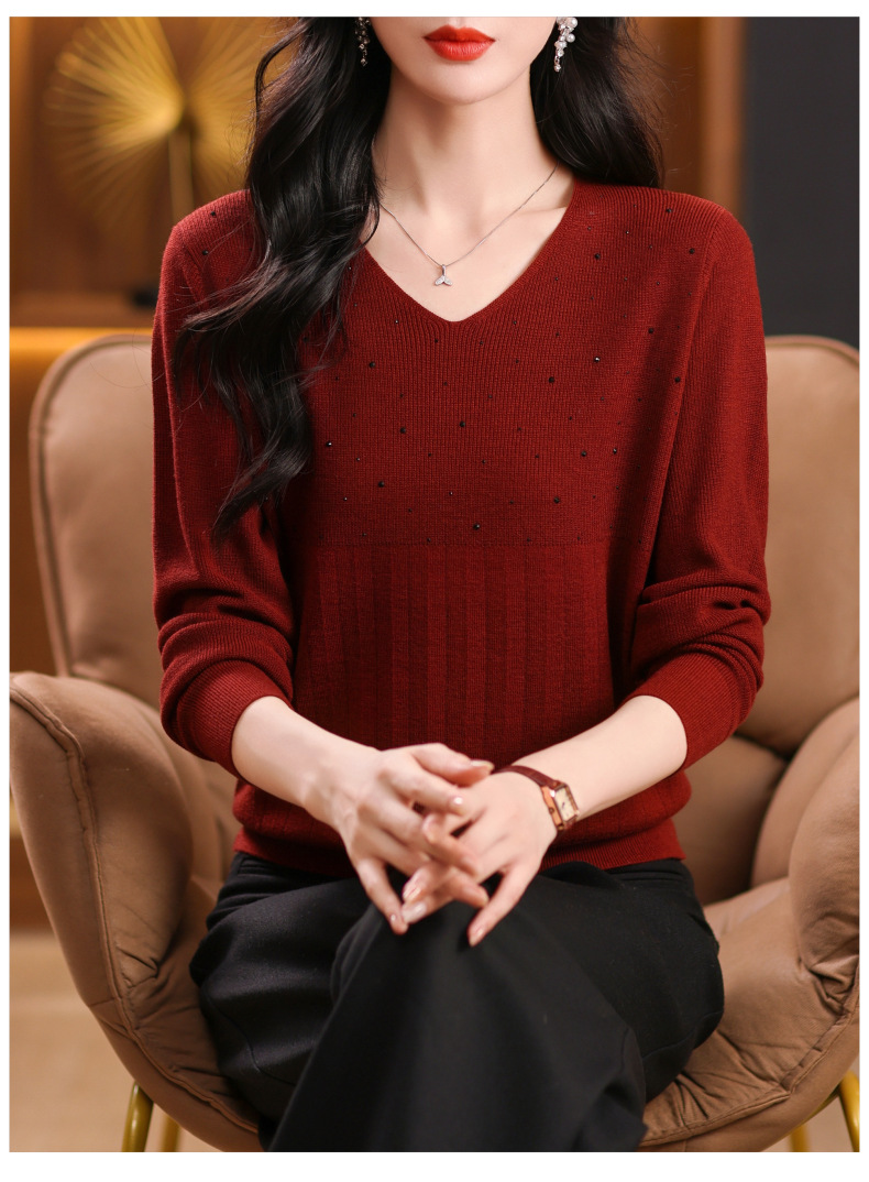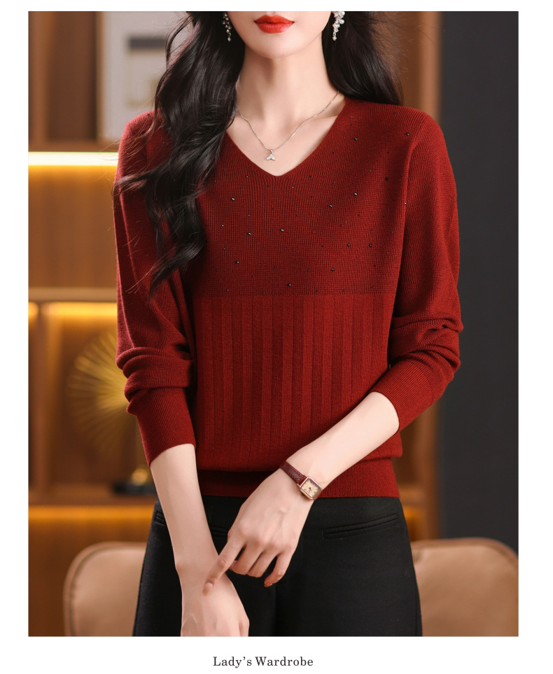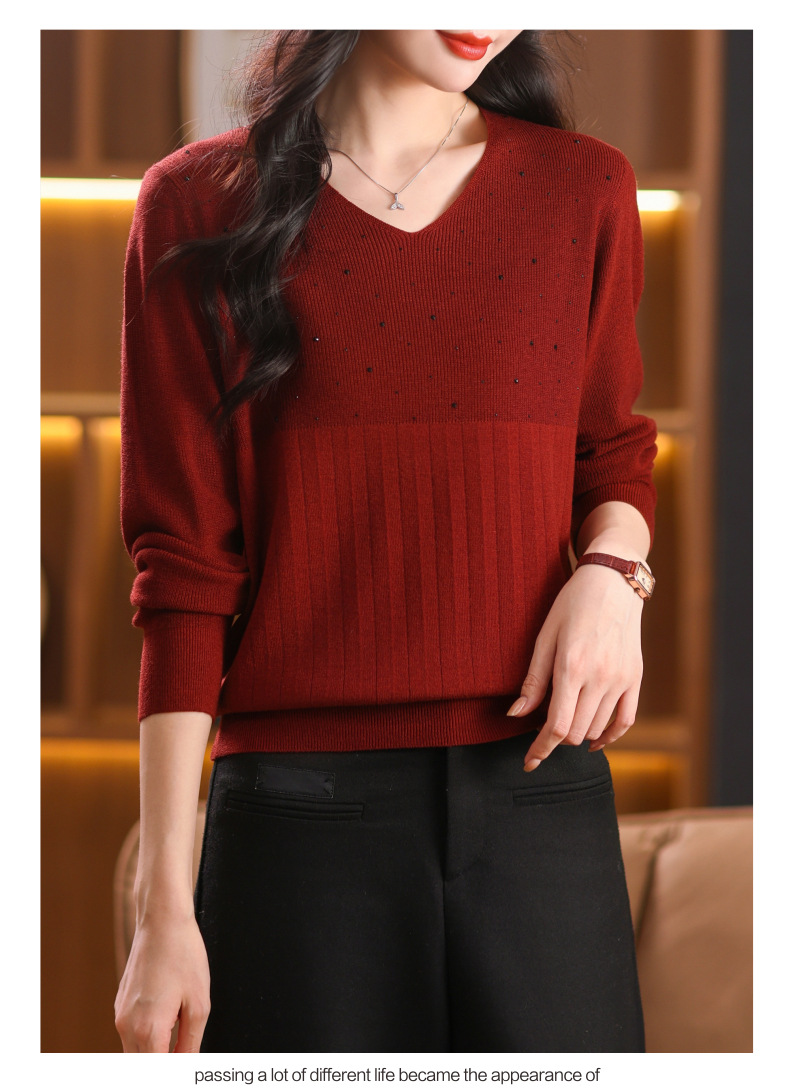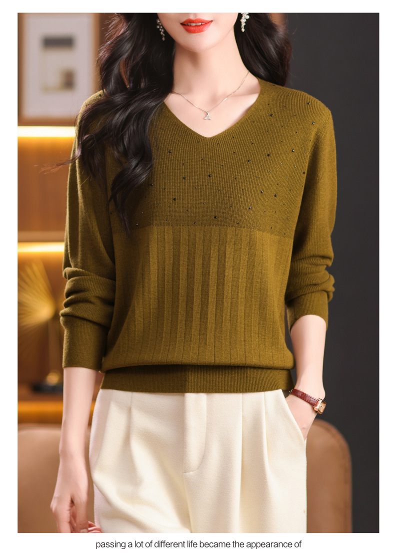 CC-XMY-7067早秋薄款针织衫女长袖V领上衣秋装2024年新款时尚羊毛打底衫