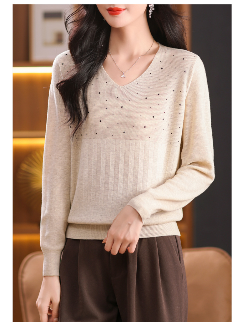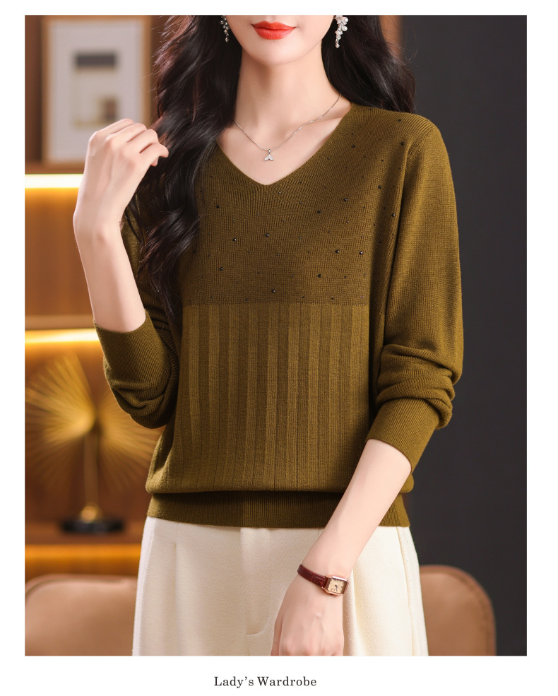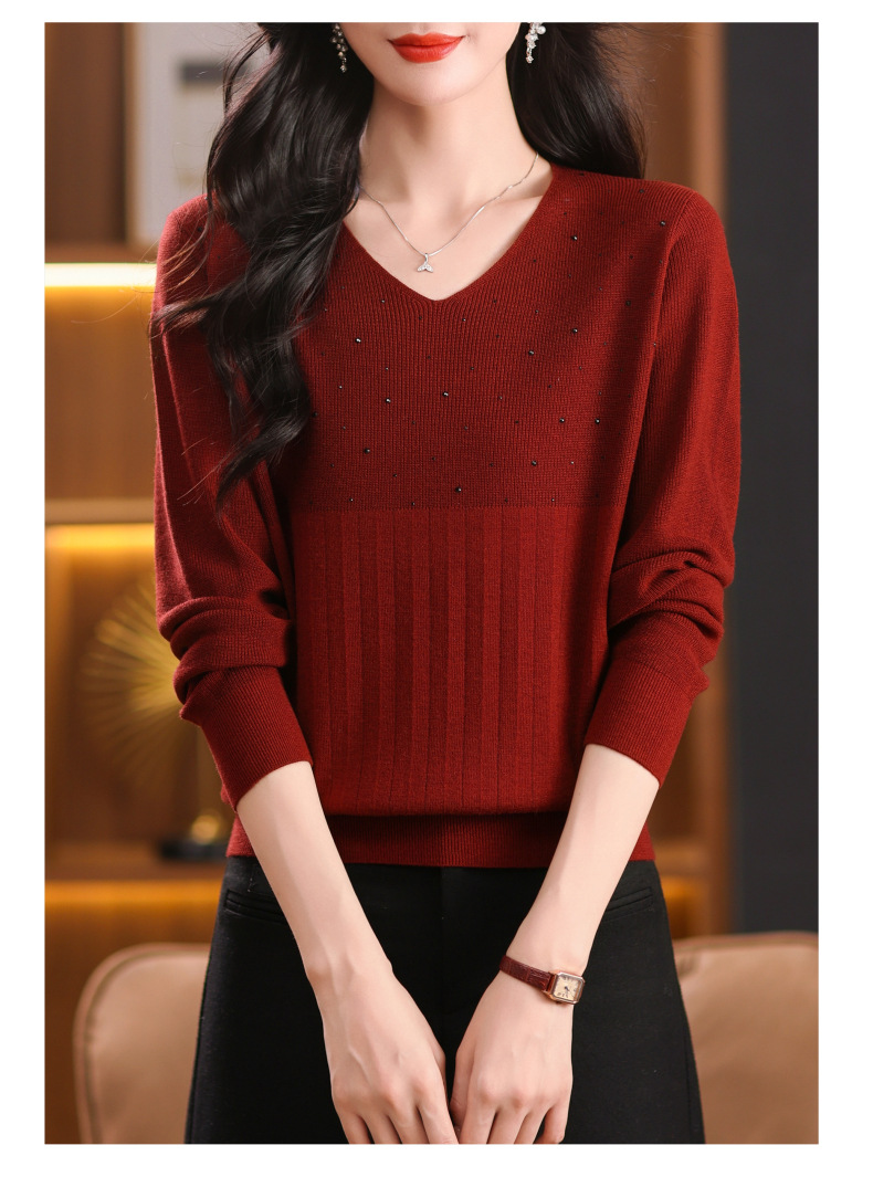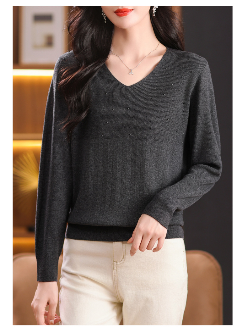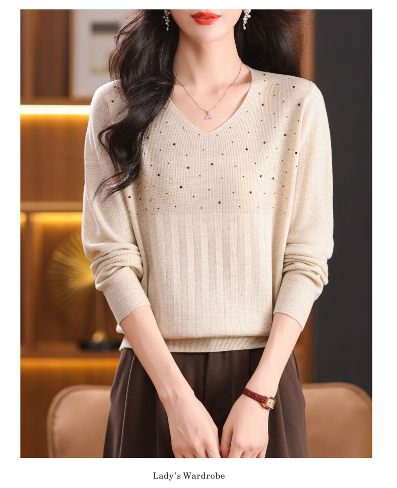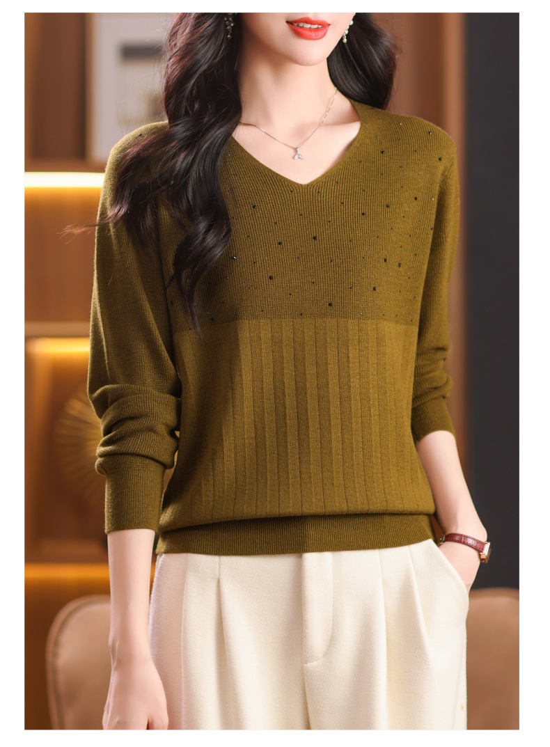 CC-XMY-7067早秋薄款针织衫女长袖V领上衣秋装2024年新款时尚羊毛打底衫