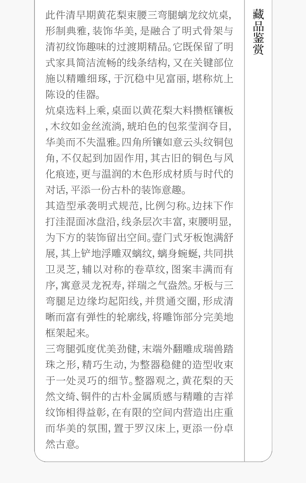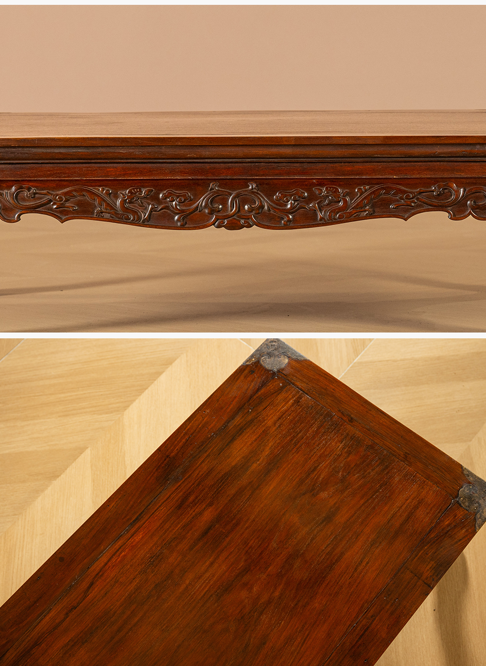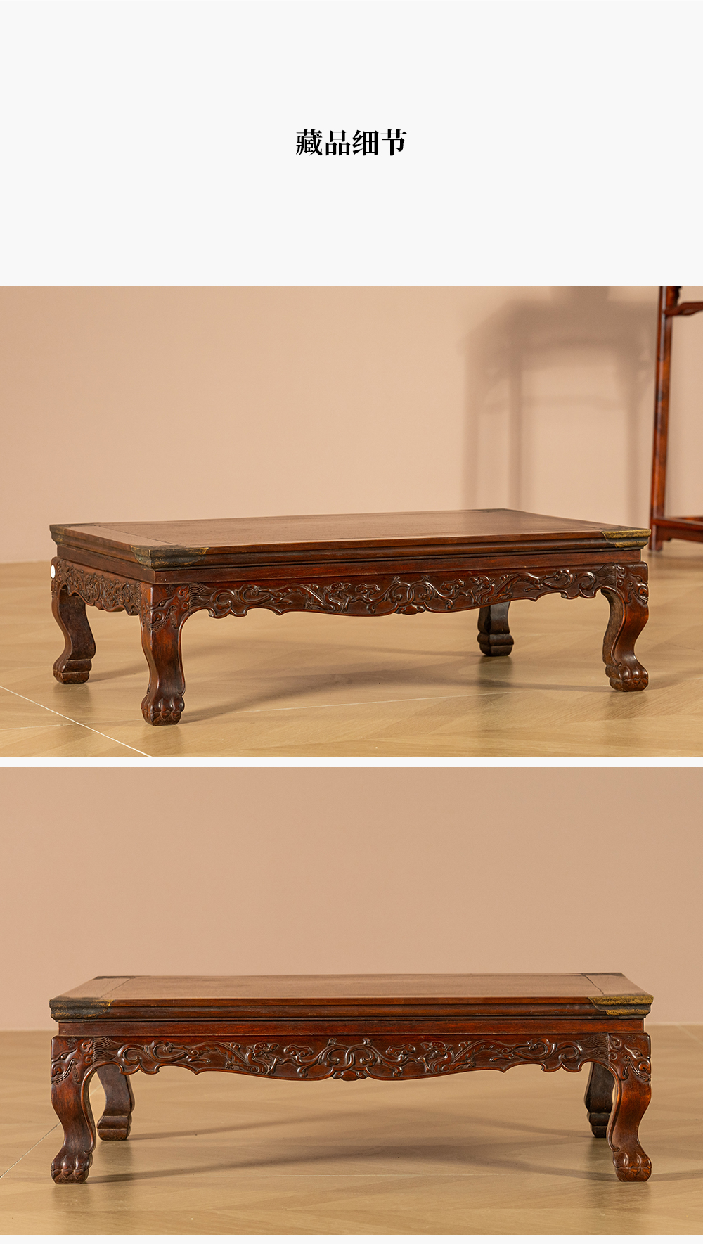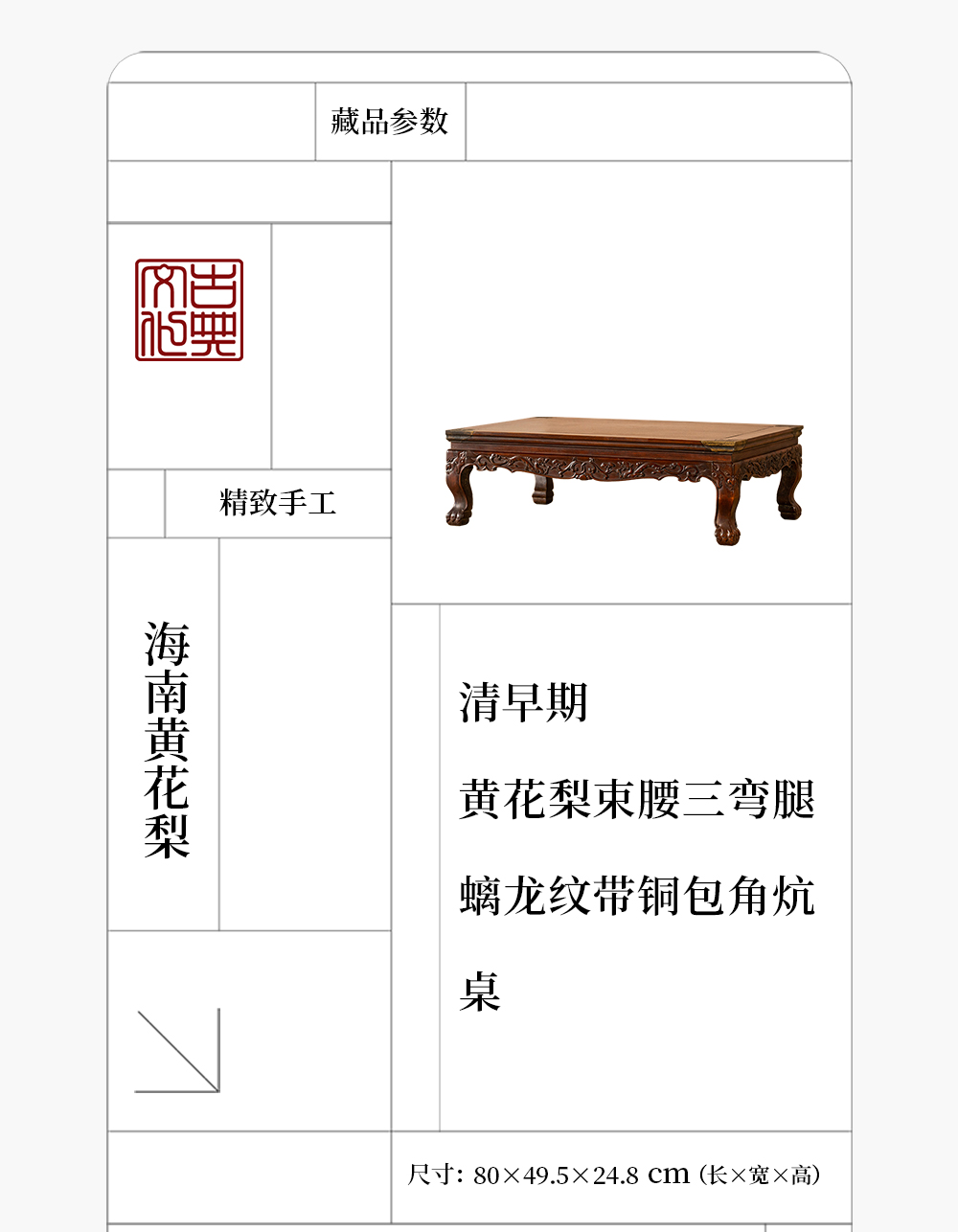 清早期 黄花梨束腰三弯腿螭龙纹带铜包角炕桌