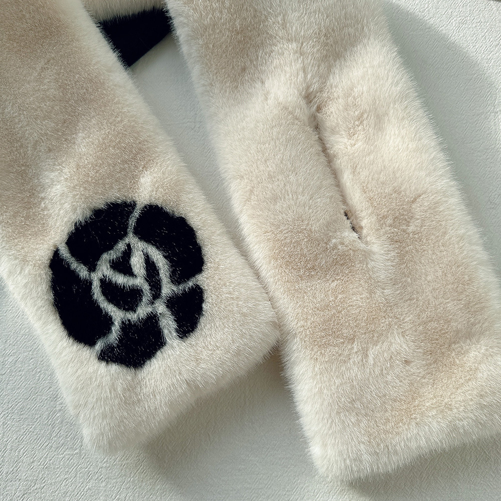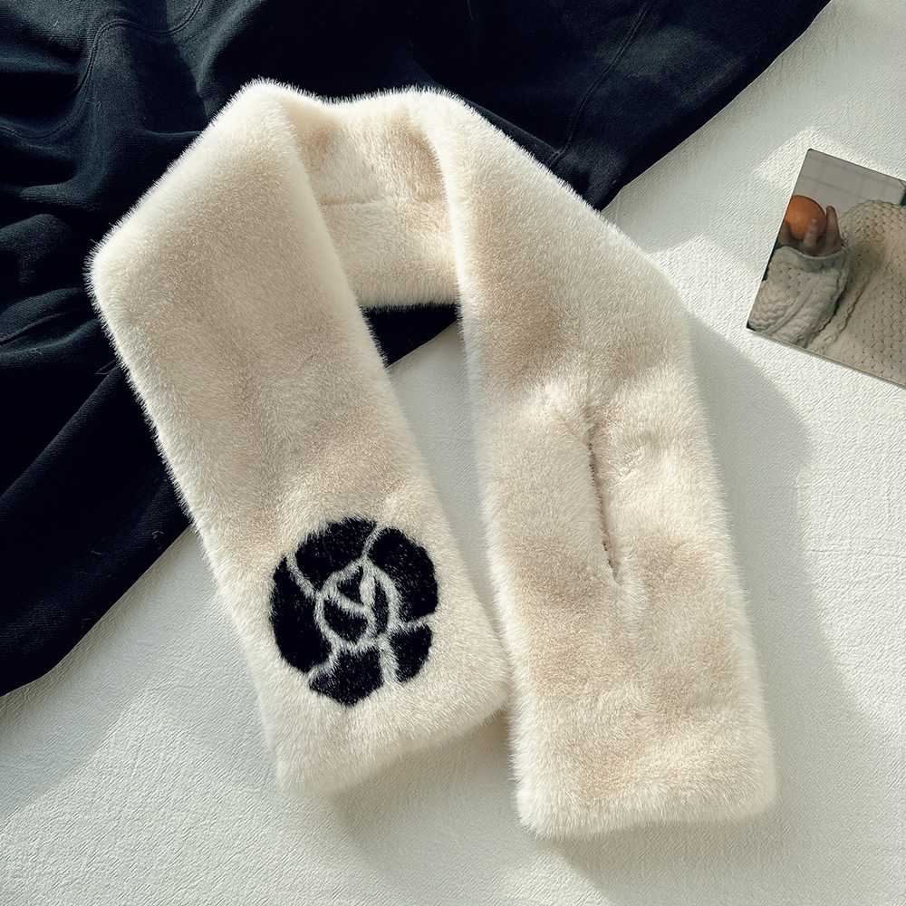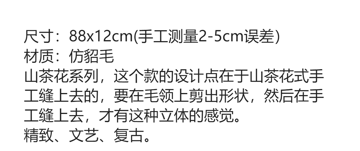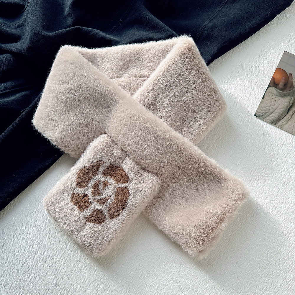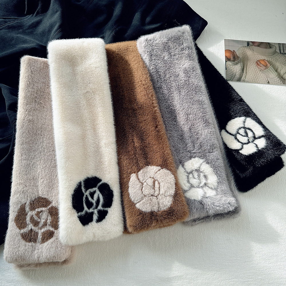 雀说手工缝制山茶花毛绒绒围巾女冬季保暖交叉知性文艺毛领围脖高品质ALW035
