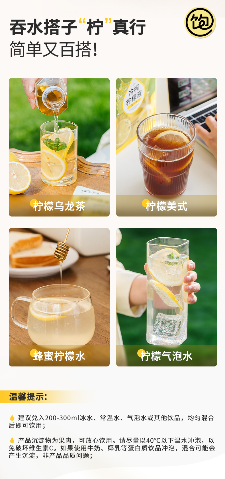 【鸣奇】王饱饱冷榨柠檬液600g/盒【周日不发货】 0蔗糖0脂肪 天然健康,爱上喝水,随时随地补充VC