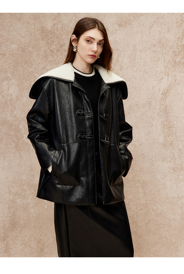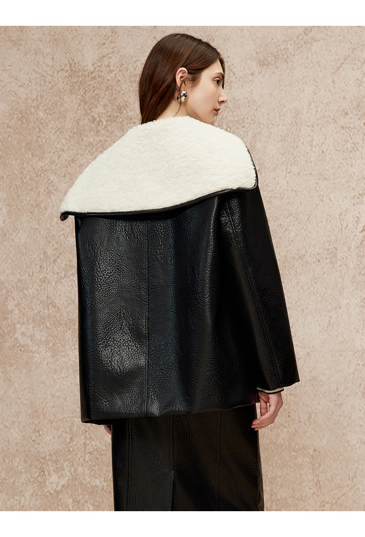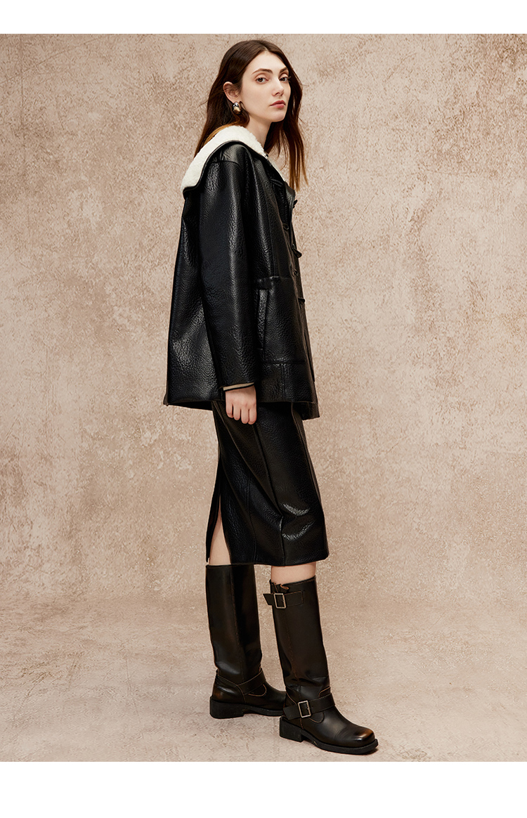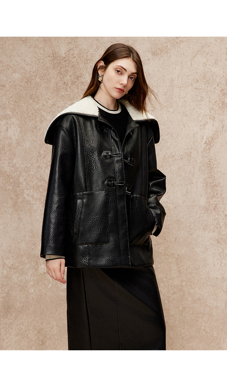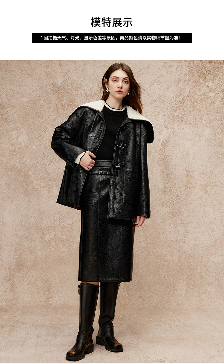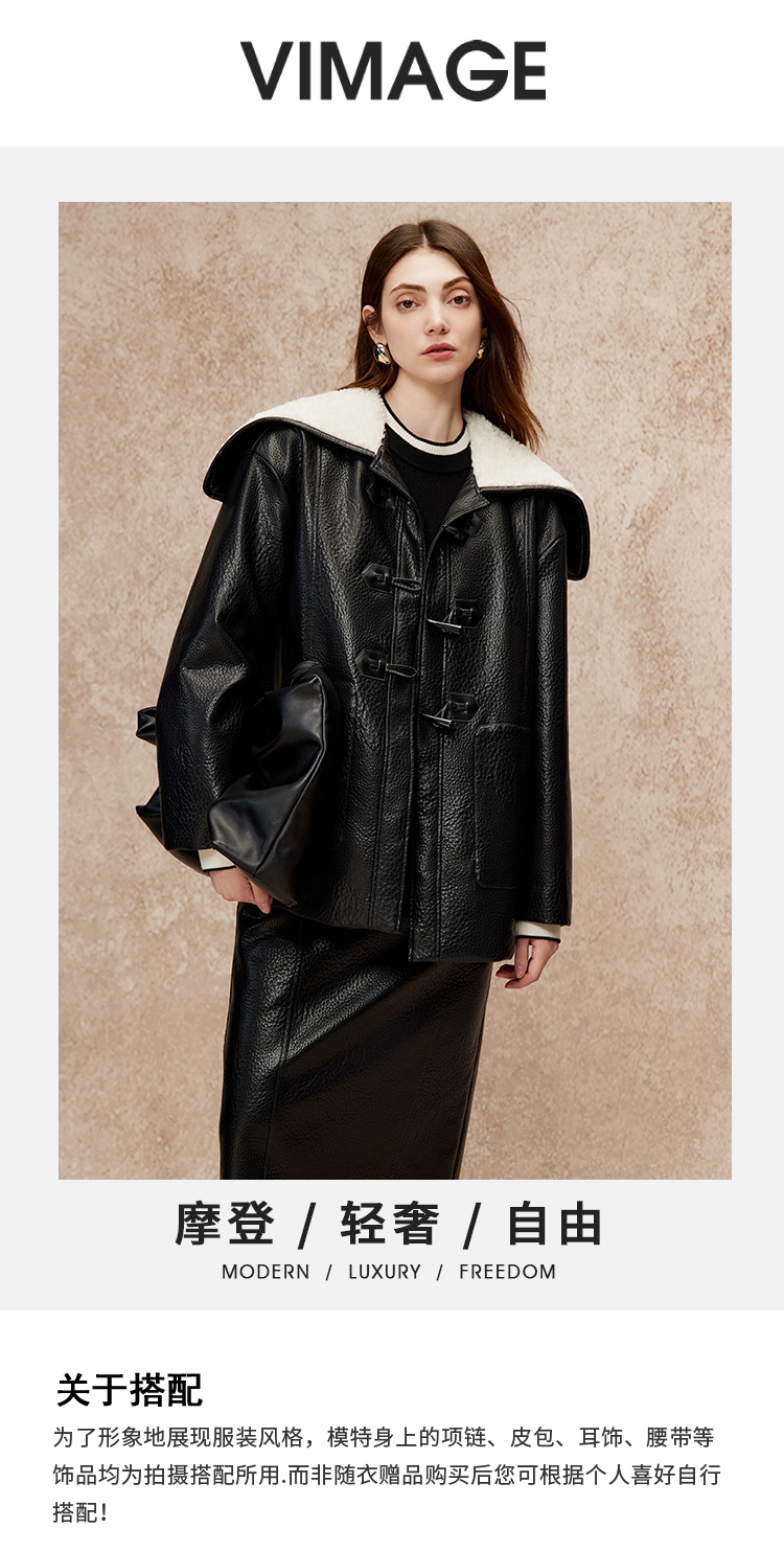 VIMAGE纬漫纪大翻领拼接休闲直筒外套冬新款V2203831