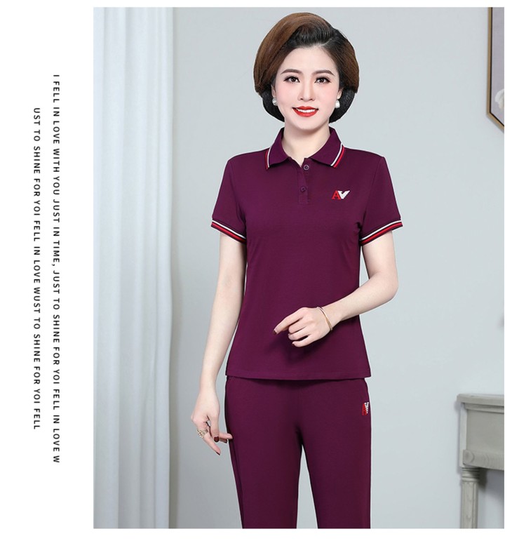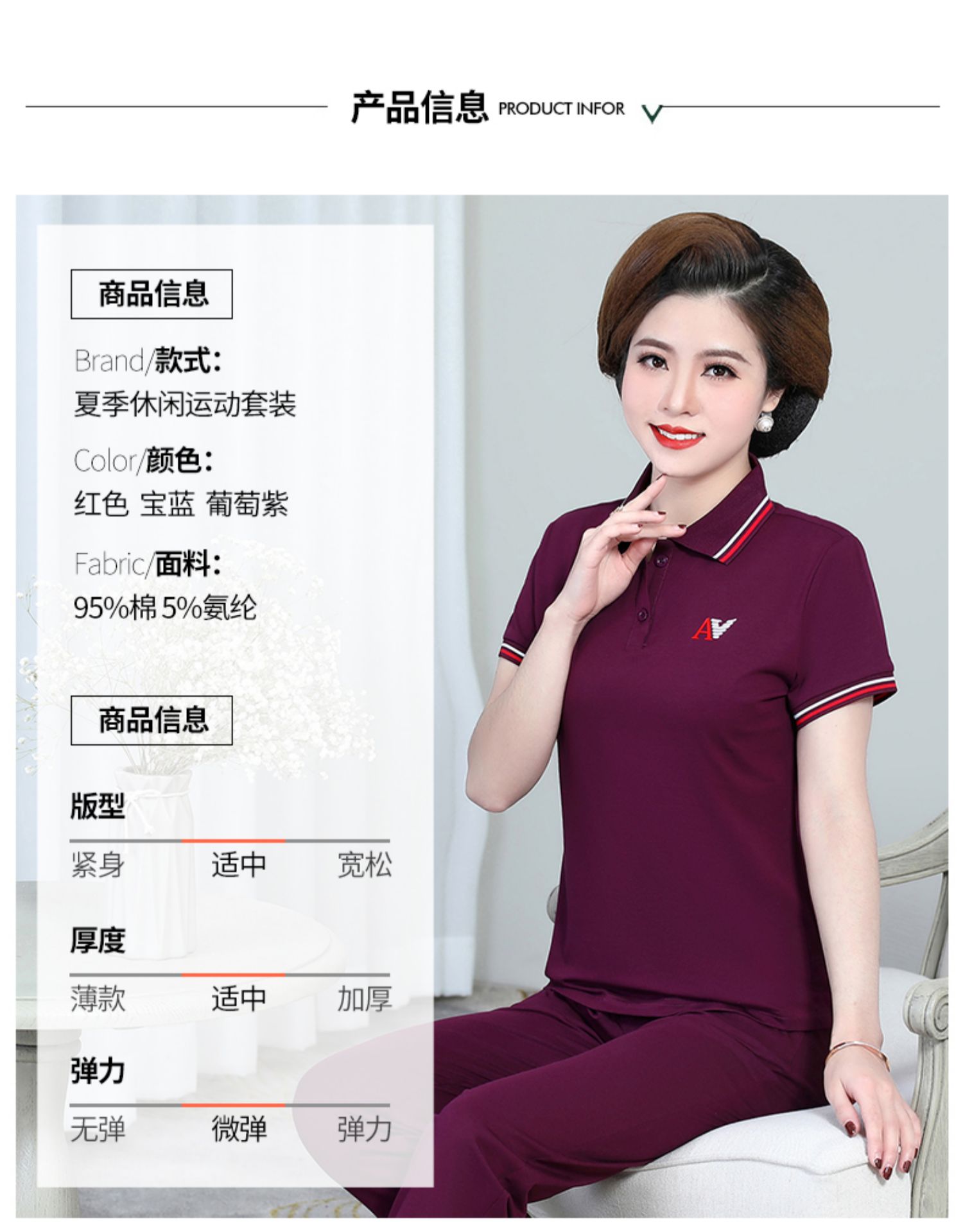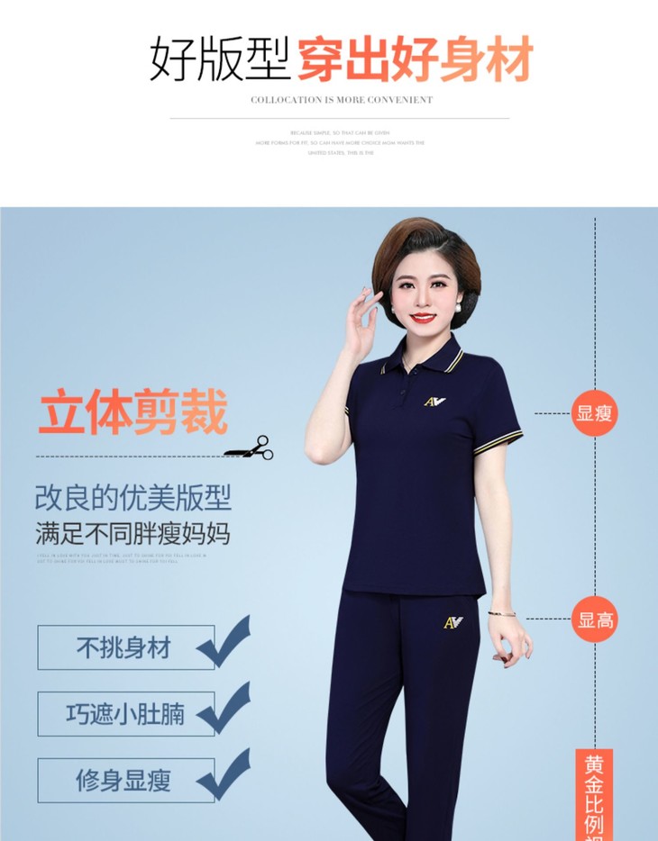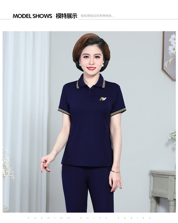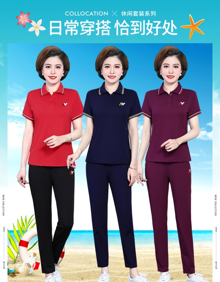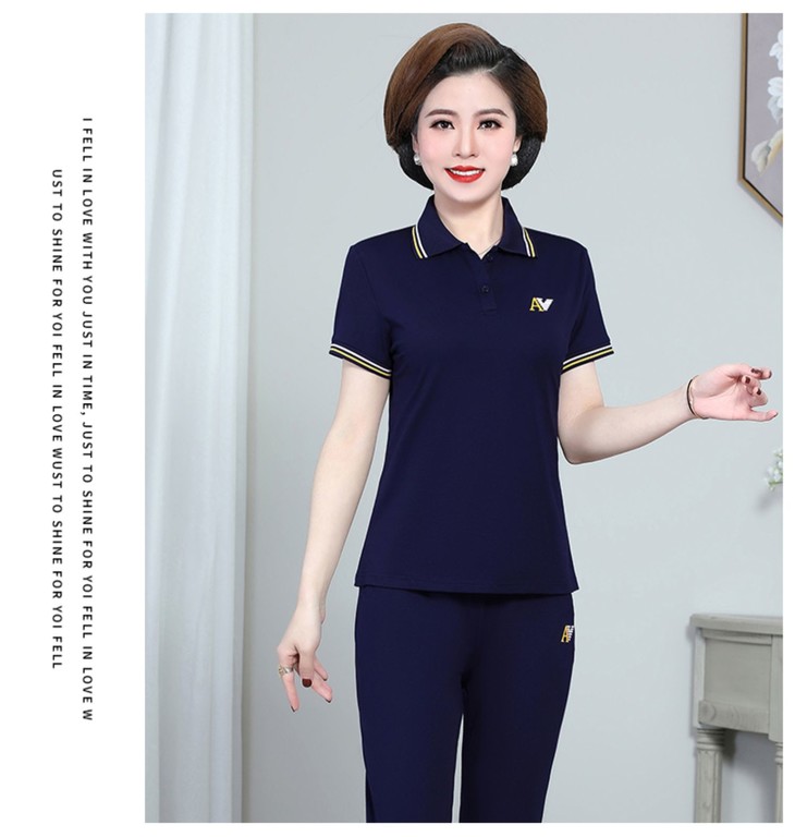 W-685【95棉】新款时尚运动服套装中年短袖休闲两件套
