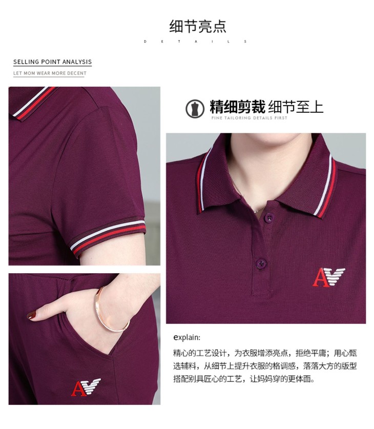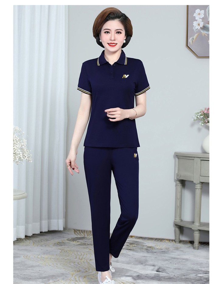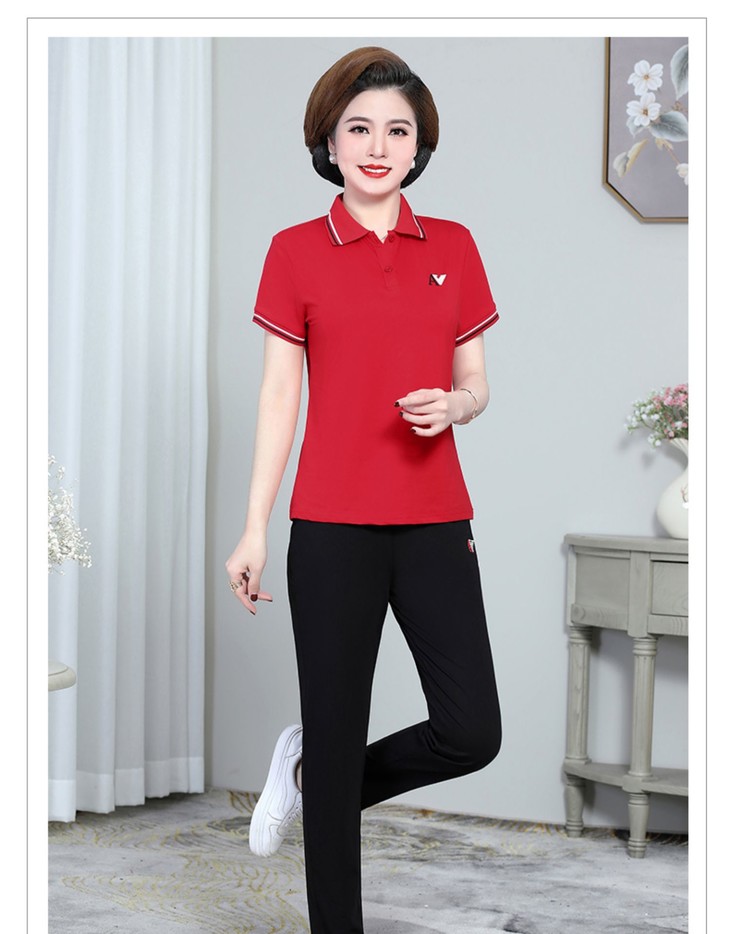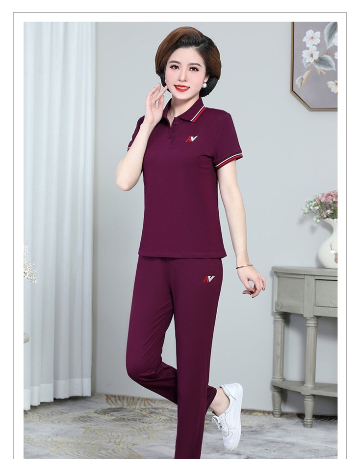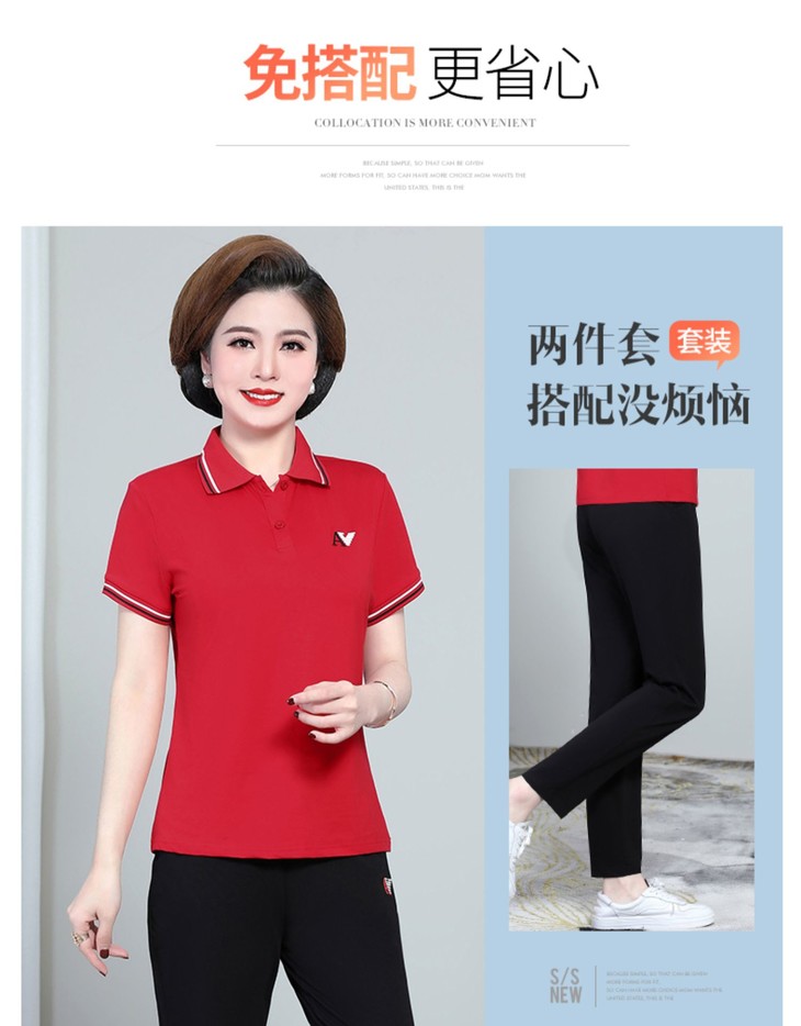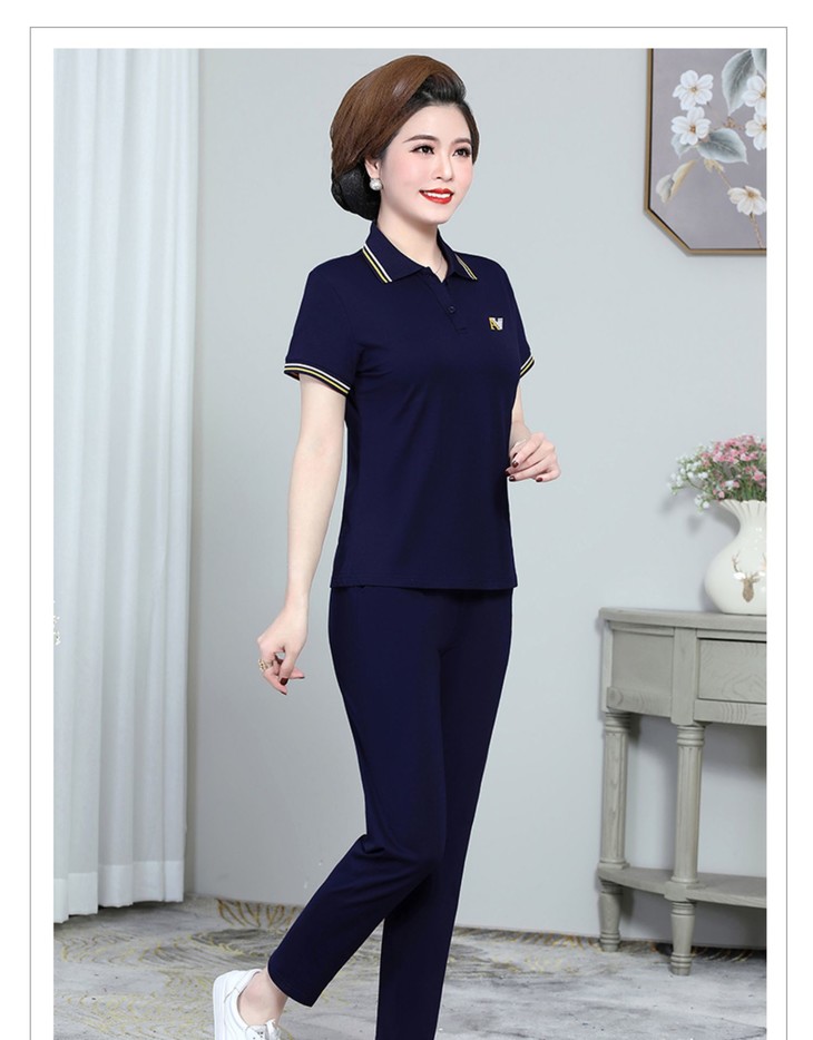 W-685【95棉】新款时尚运动服套装中年短袖休闲两件套