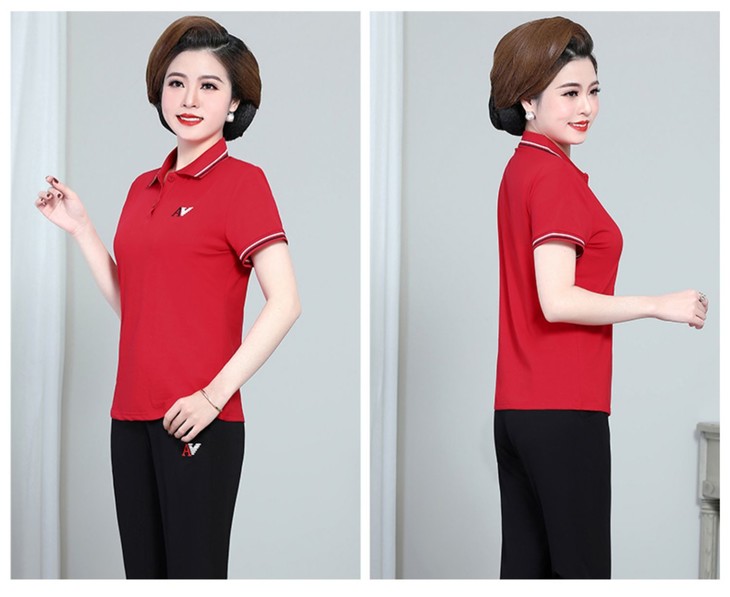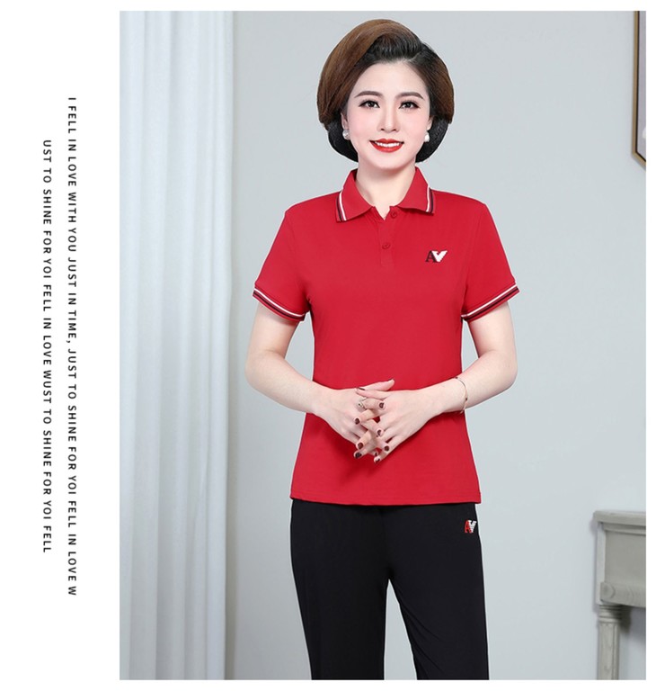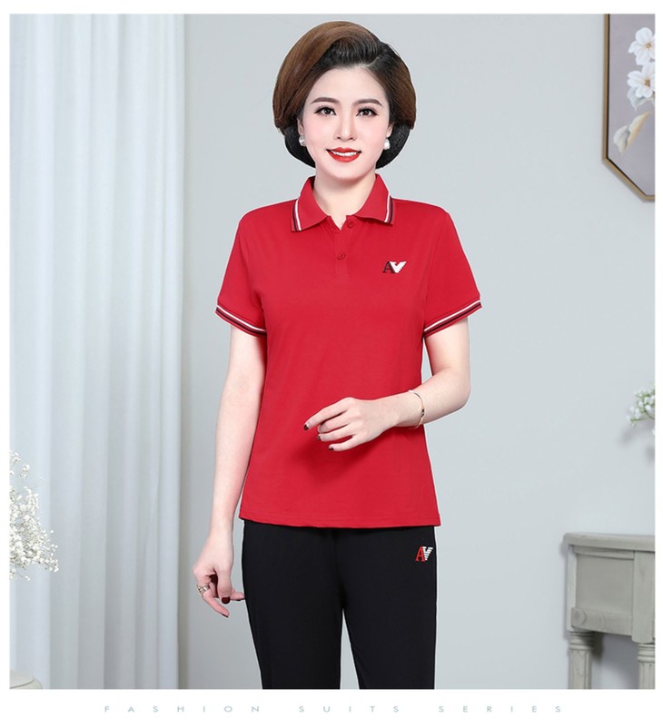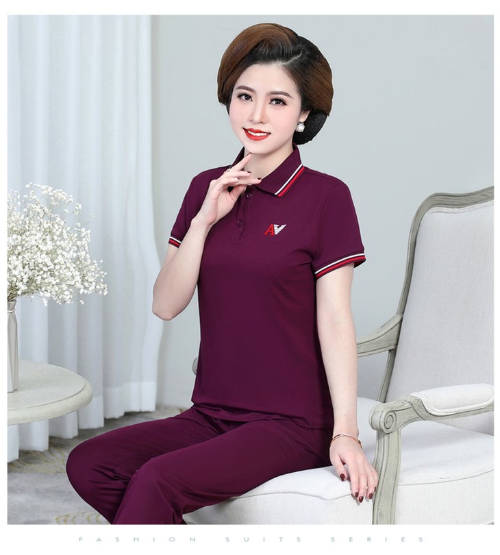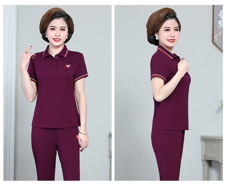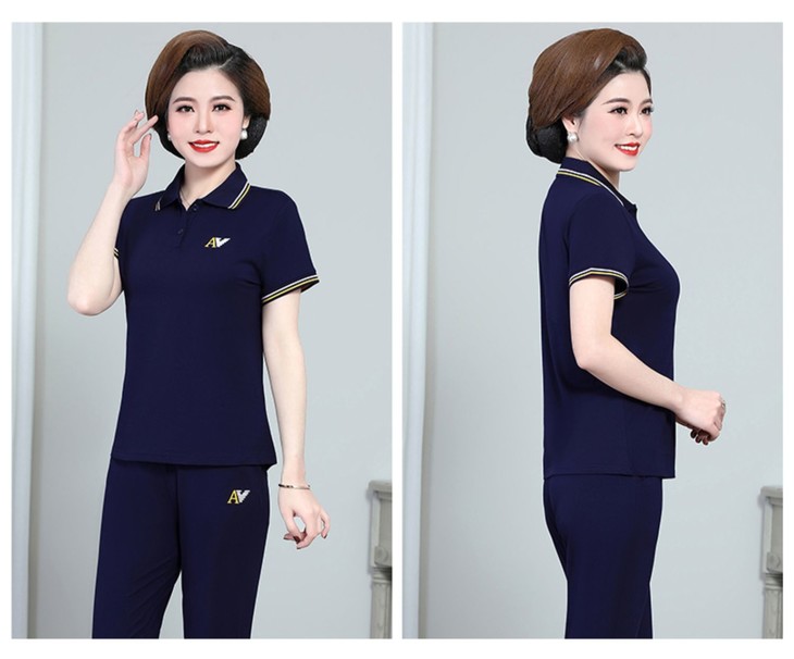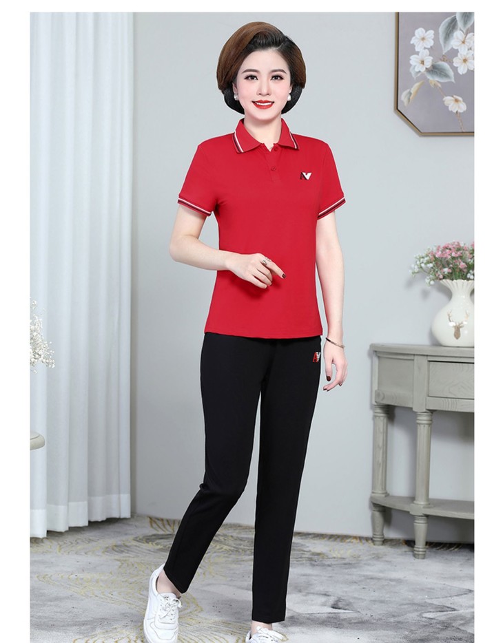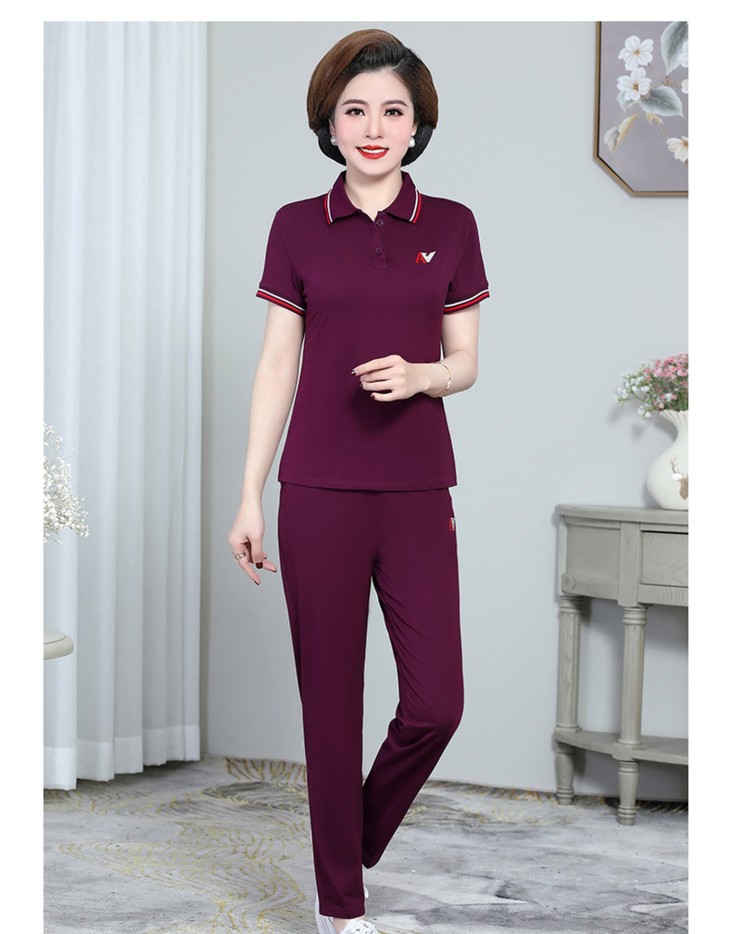 W-685【95棉】新款时尚运动服套装中年短袖休闲两件套