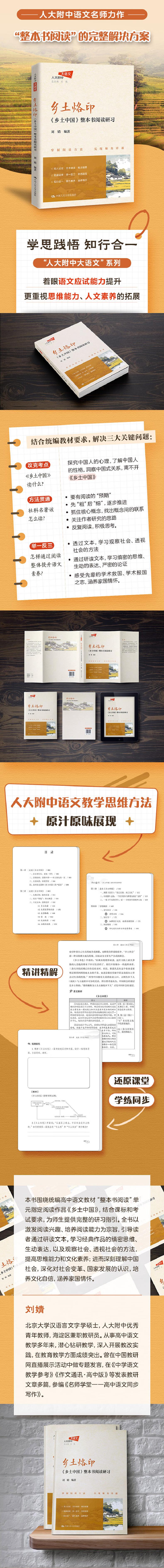 本书围绕**高中语文教材“整本书阅读**阅读作品《乡土中国》,结合课标和考试要求,为教师和学生提供完整的阅读和学习指引。《乡土中国》基于调查研究而成的社会学名著,半个多世纪以来产生了重要的学术和社会影响,堪称****。全书以培养阅读能力、激发阅读兴趣为宗旨,引导读者通过研读文本,学习**作品的缜密思维、生动表达,以及观察社会、透视社会的方法,提高思维能力和文化素养;进而深刻理解中国社会,深化对社会变革、国家发展的认识,培养文化自信,涵养家国情怀。