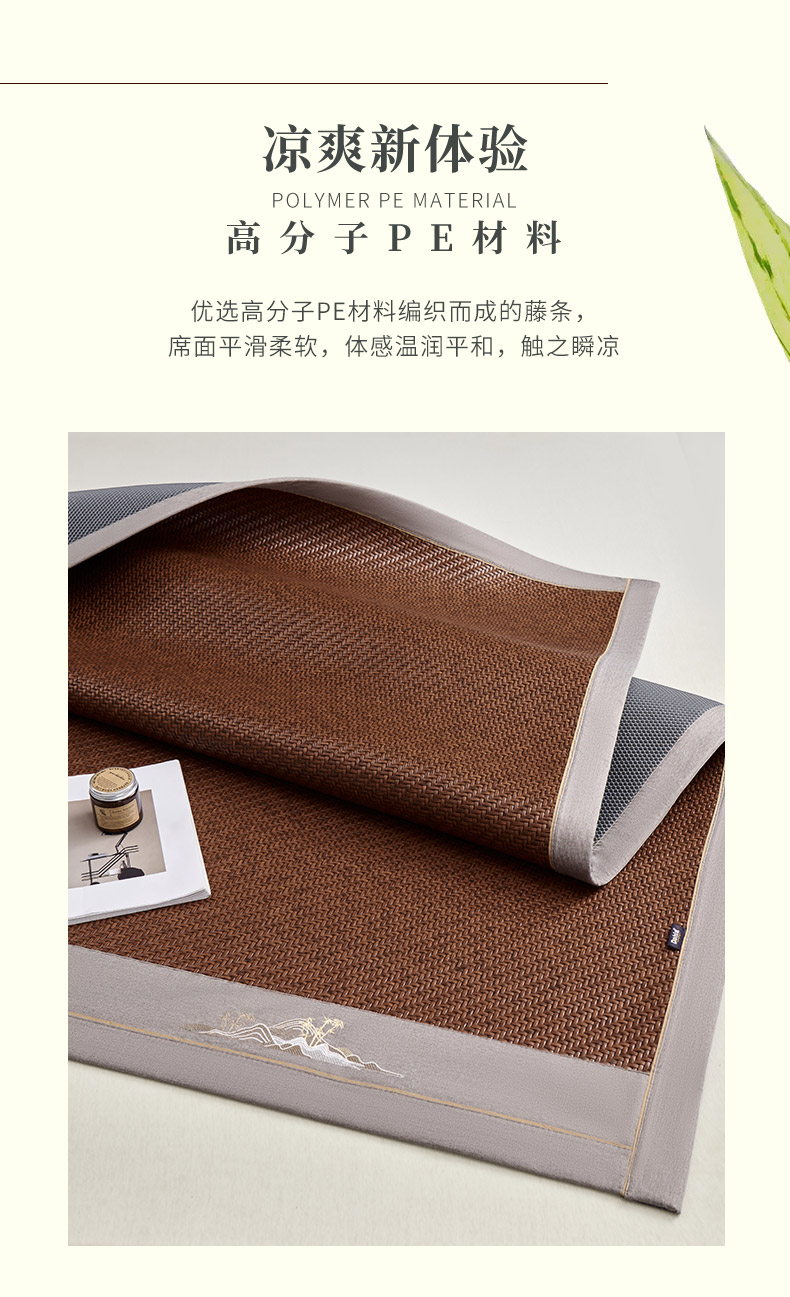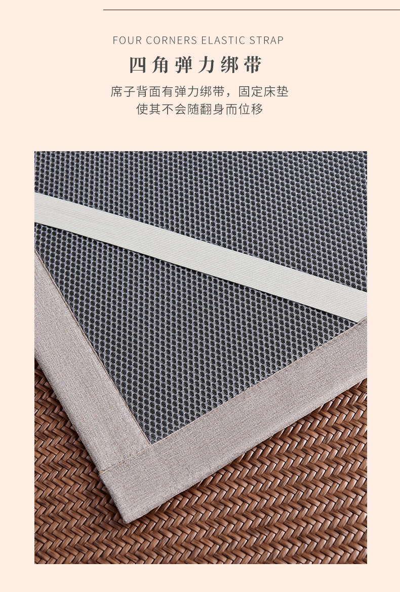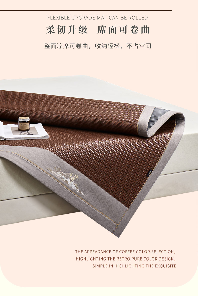 多喜爱 霸王藤席 远山(咖/灰)【精致刺绣】【四角弹力绑带】【无毛刺】加厚加密 平滑柔软 0.3+凉感值超国家标准 藤席编造 3D蜂窝透气