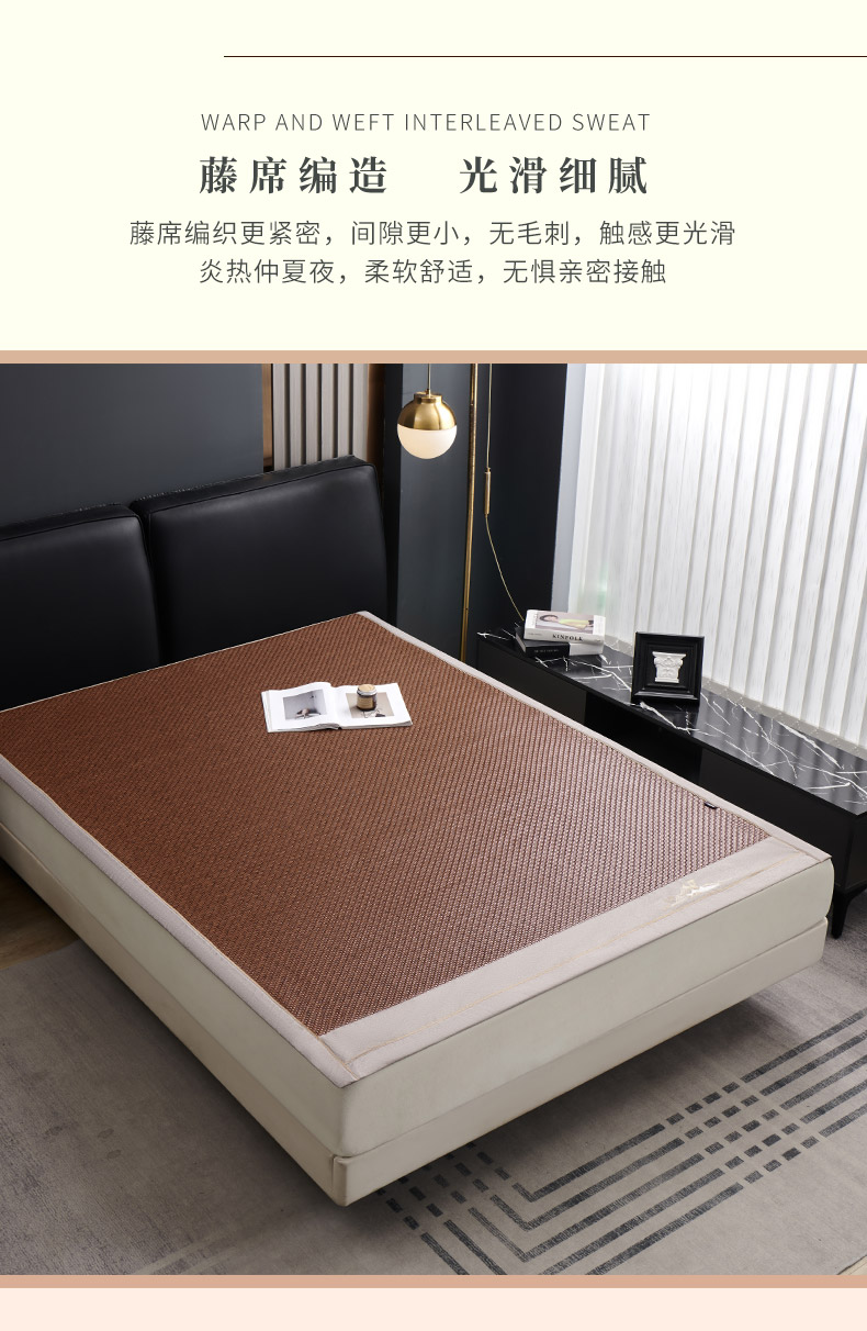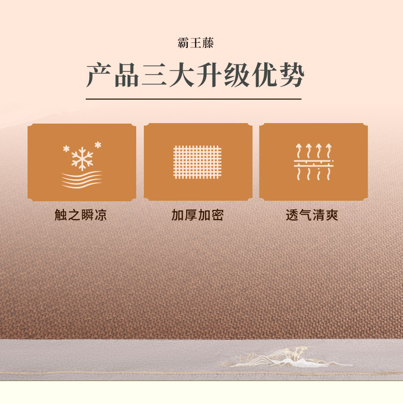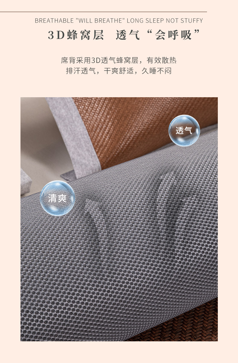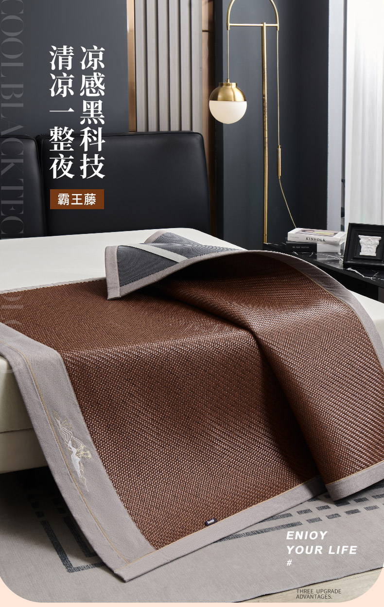 多喜爱 霸王藤席 远山(咖/灰)【精致刺绣】【四角弹力绑带】【无毛刺】加厚加密 平滑柔软 0.3+凉感值超国家标准 藤席编造 3D蜂窝透气