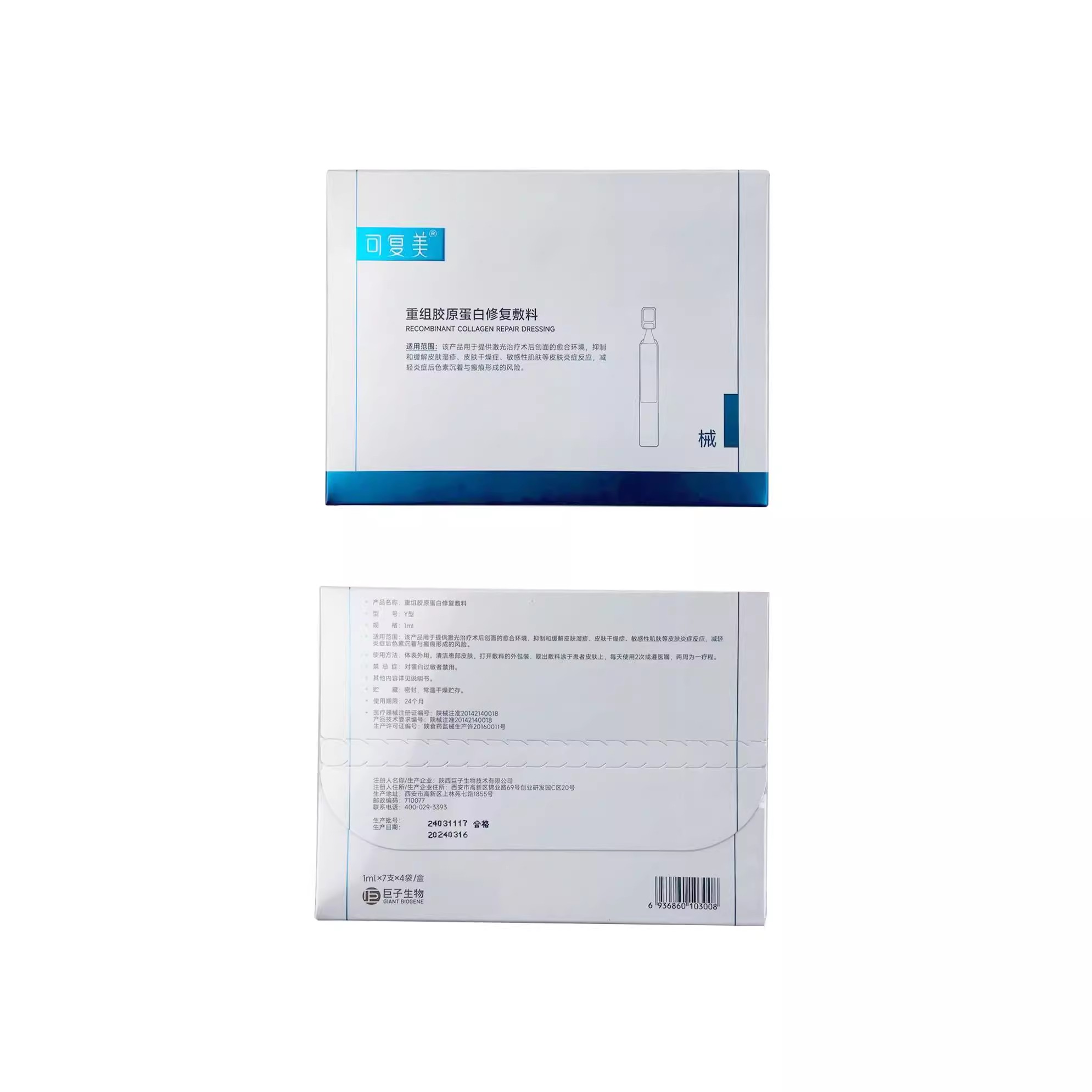 【门店直发】可复美重组胶原蛋白修复敷料1ml次抛7支装28支装械字号胶原棒