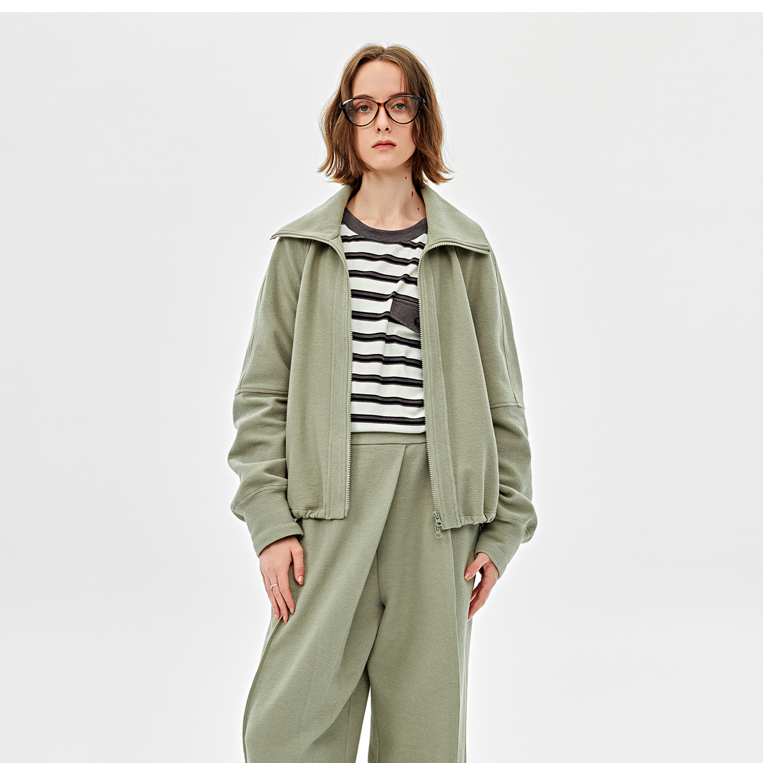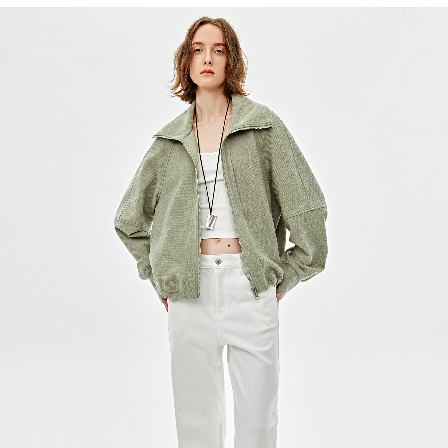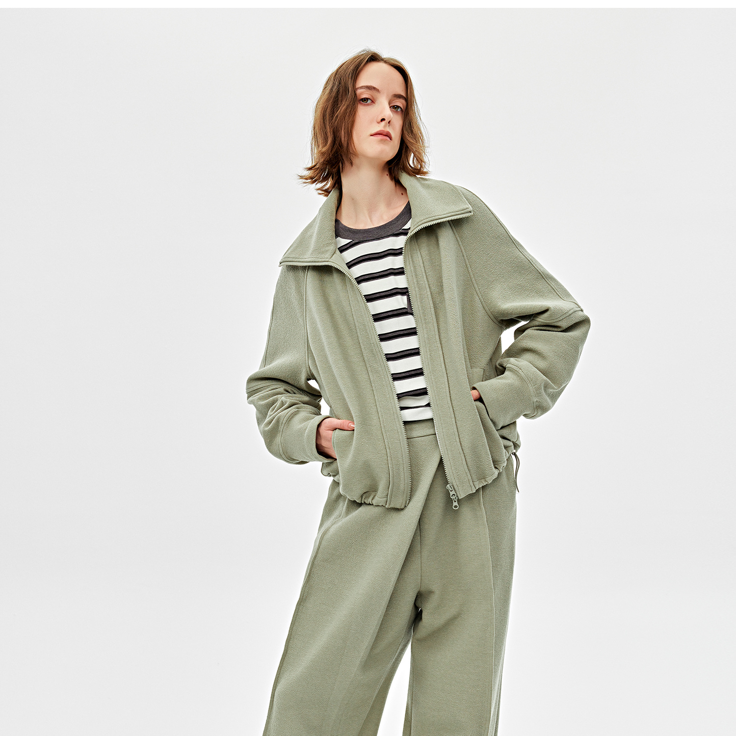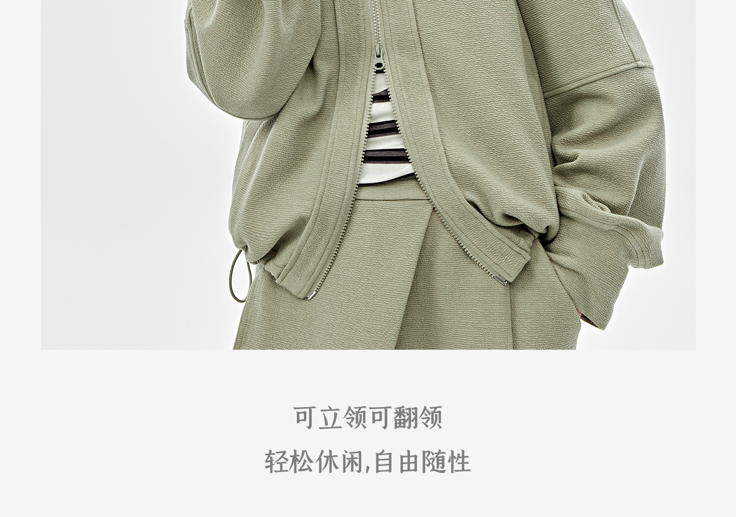 可造型翻领松弛感拉链轻休闲肌理感外套/时髦解构阔腿裤2025春WT2501016