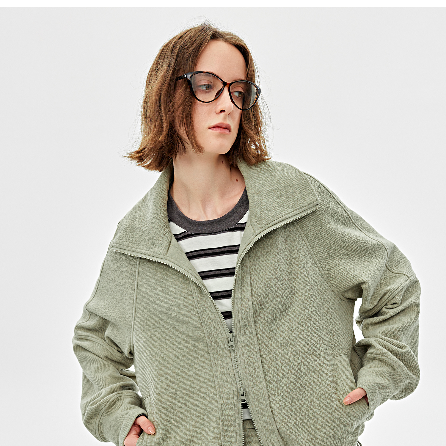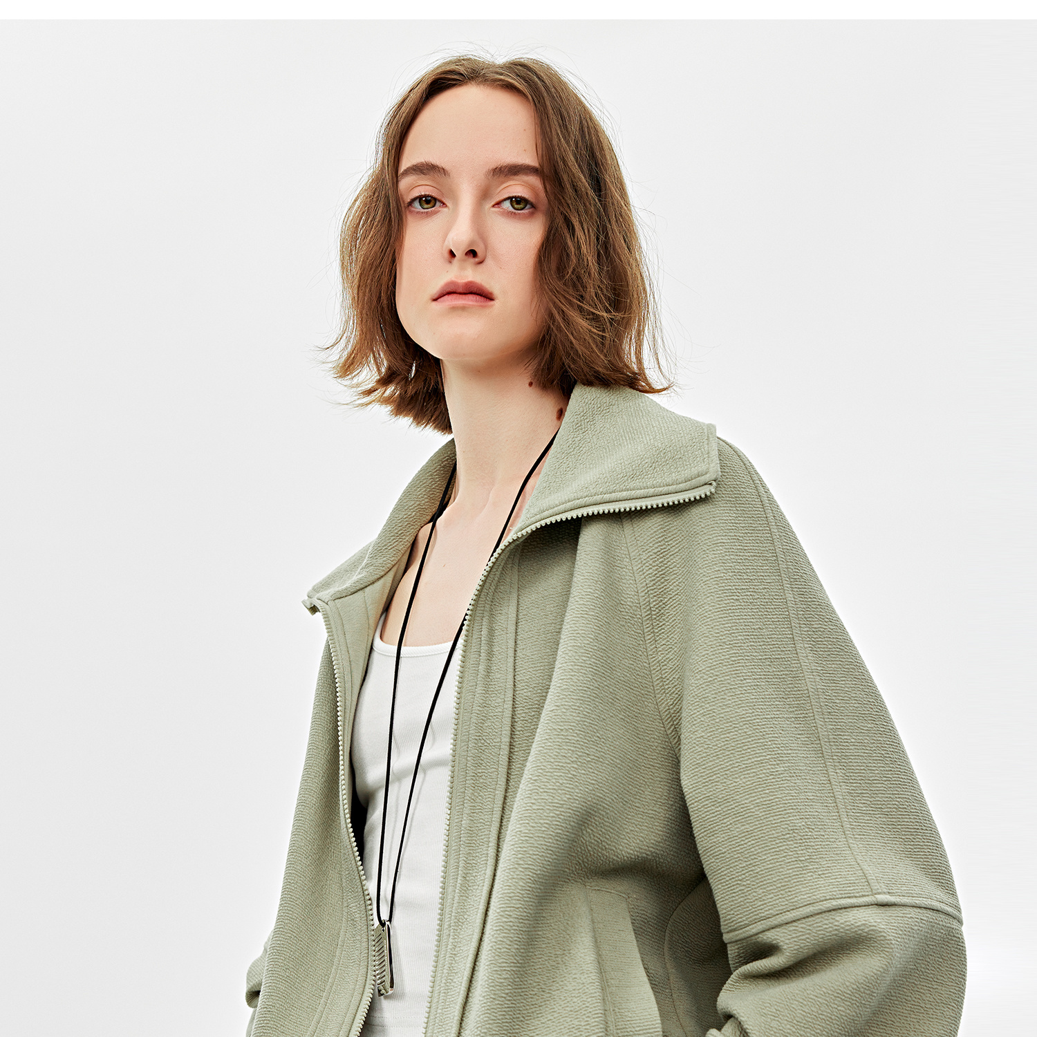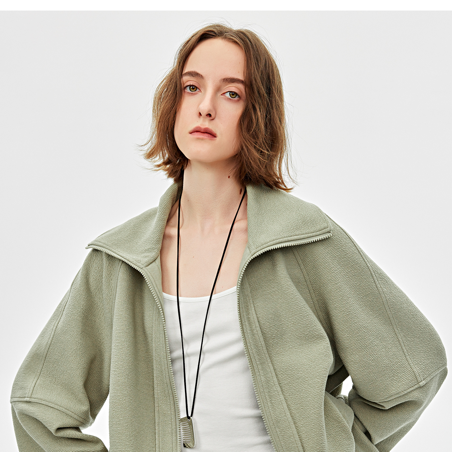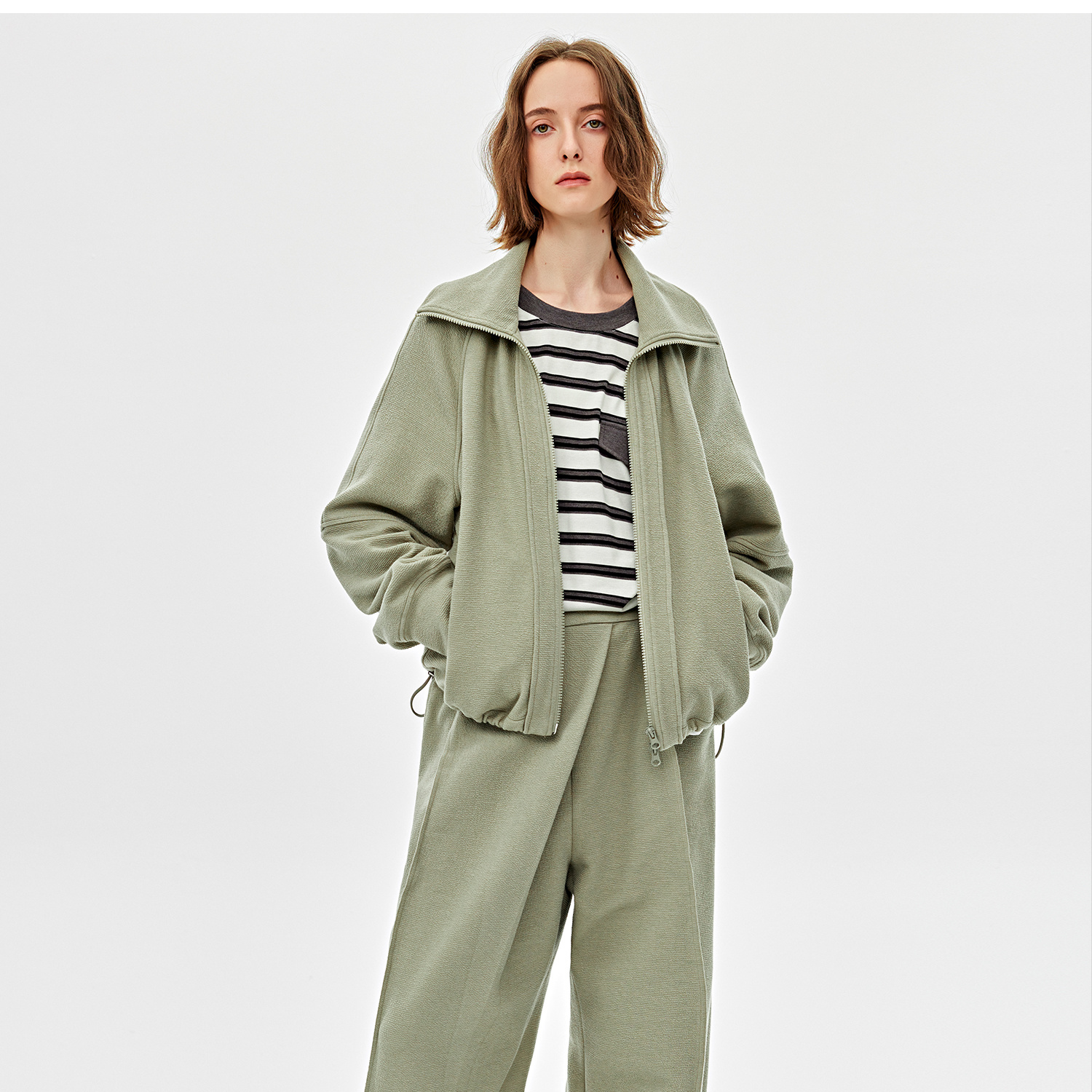 可造型翻领松弛感拉链轻休闲肌理感外套/时髦解构阔腿裤2025春WT2501016