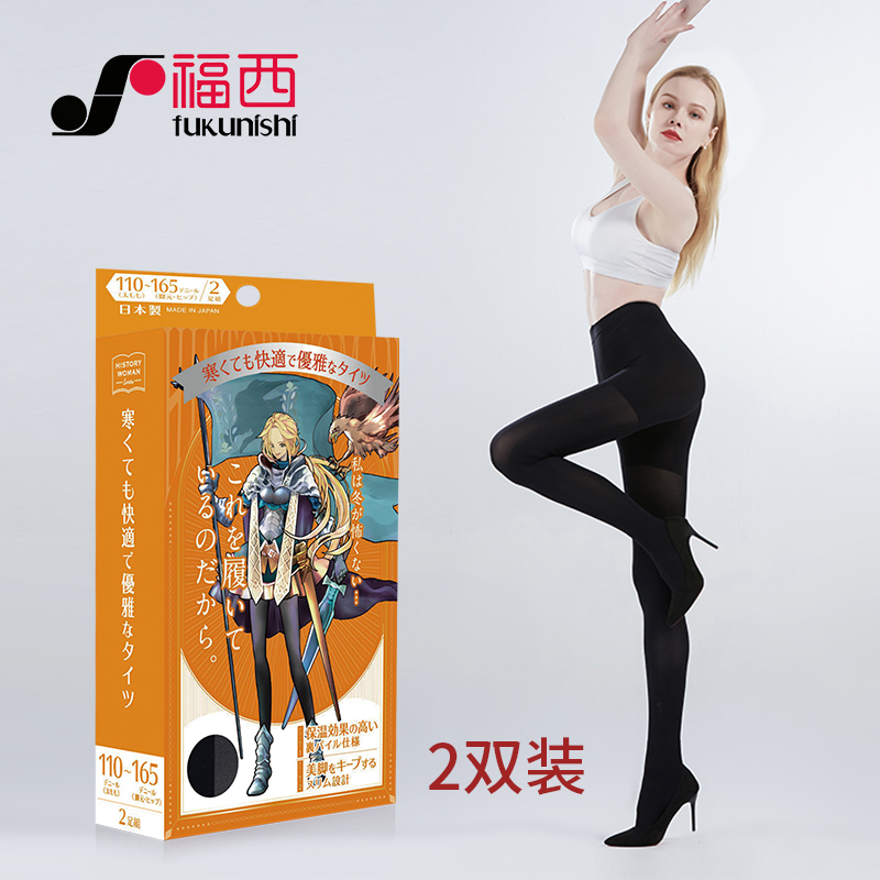 【E】福西日本进口优雅抗寒款连裤袜 (2双装)黑色 腿部110D 脚部加厚165D