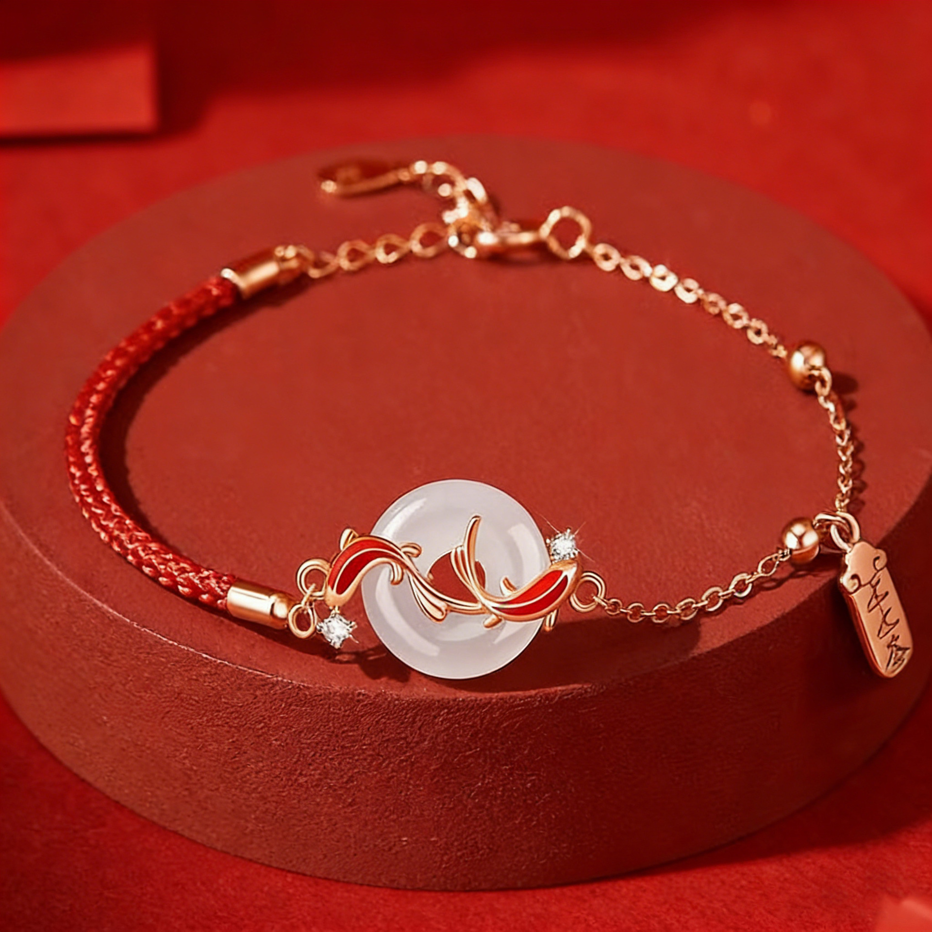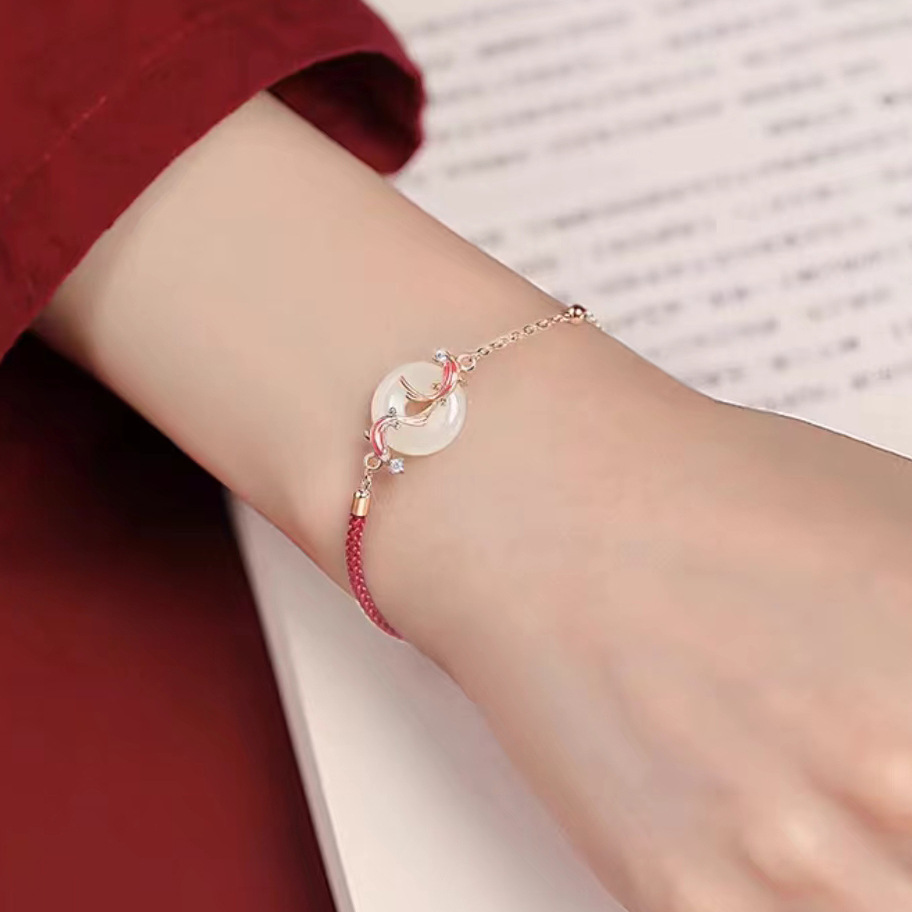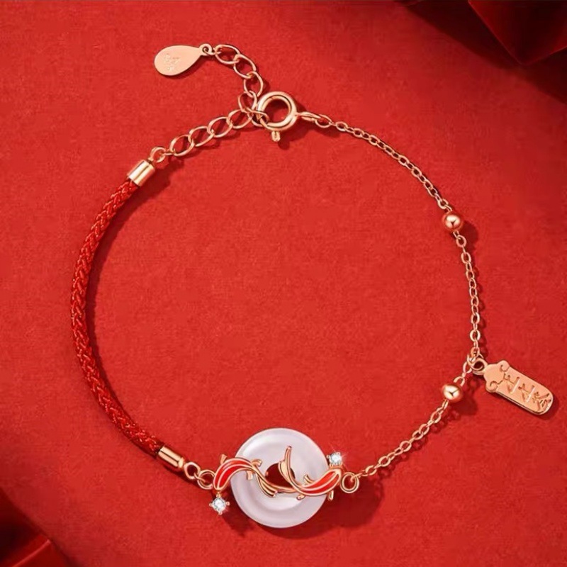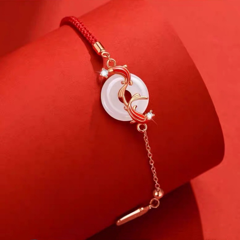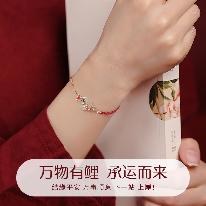 春节不打烊【情人节礼物❗️新年送礼好物】s925纯银锦鲤平安扣红绳手链本命年时尚和田玉手链女高级感手饰品。jd
