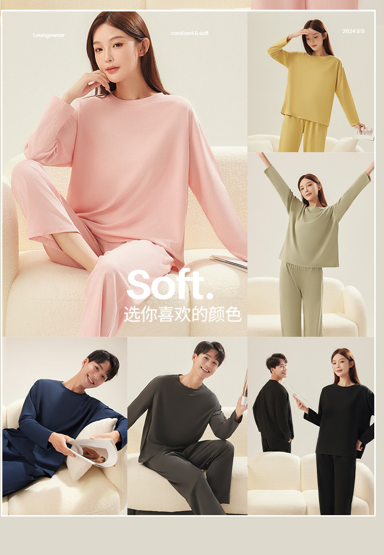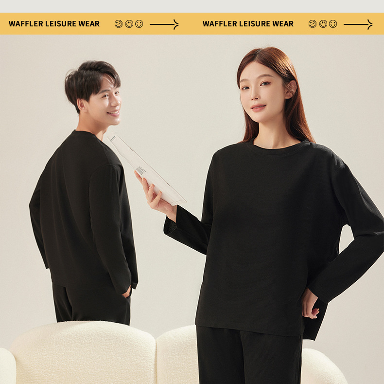 【优质好棉料❗️丝滑裸感亲肤】情侣睡衣女春秋季长袖长裤套装新款华夫格宽松休闲大码男士家居服