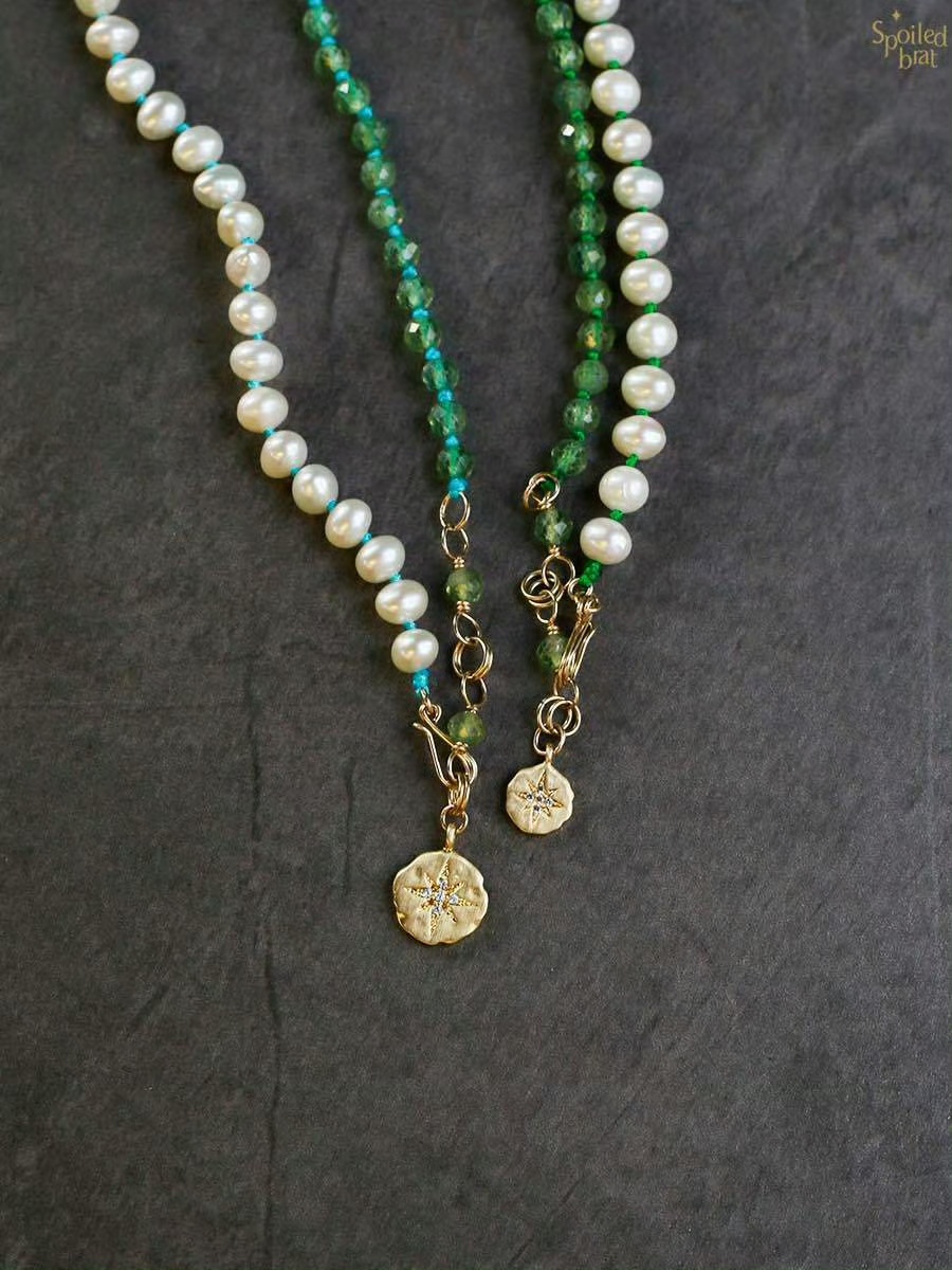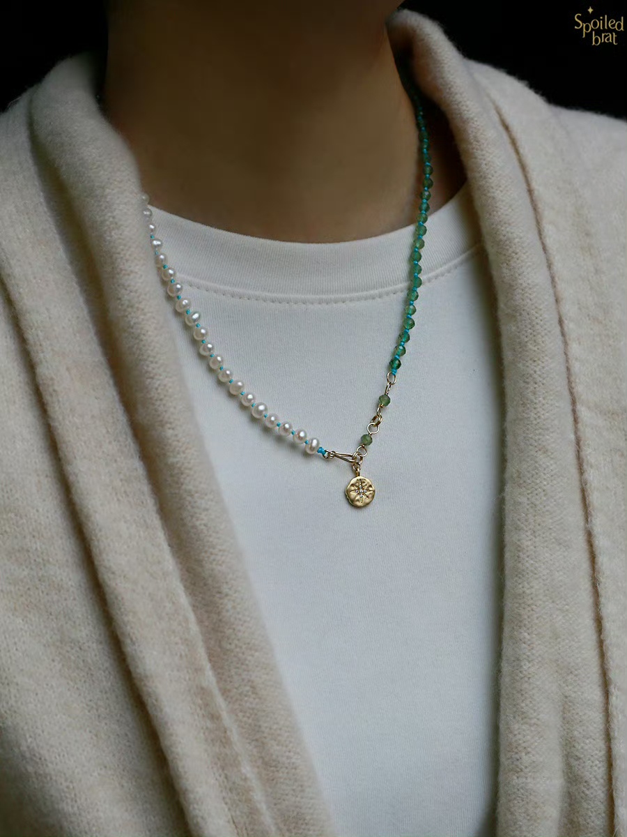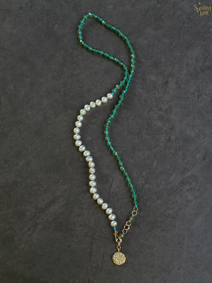 珍珠 磷灰石,极光吊坠925银镀金