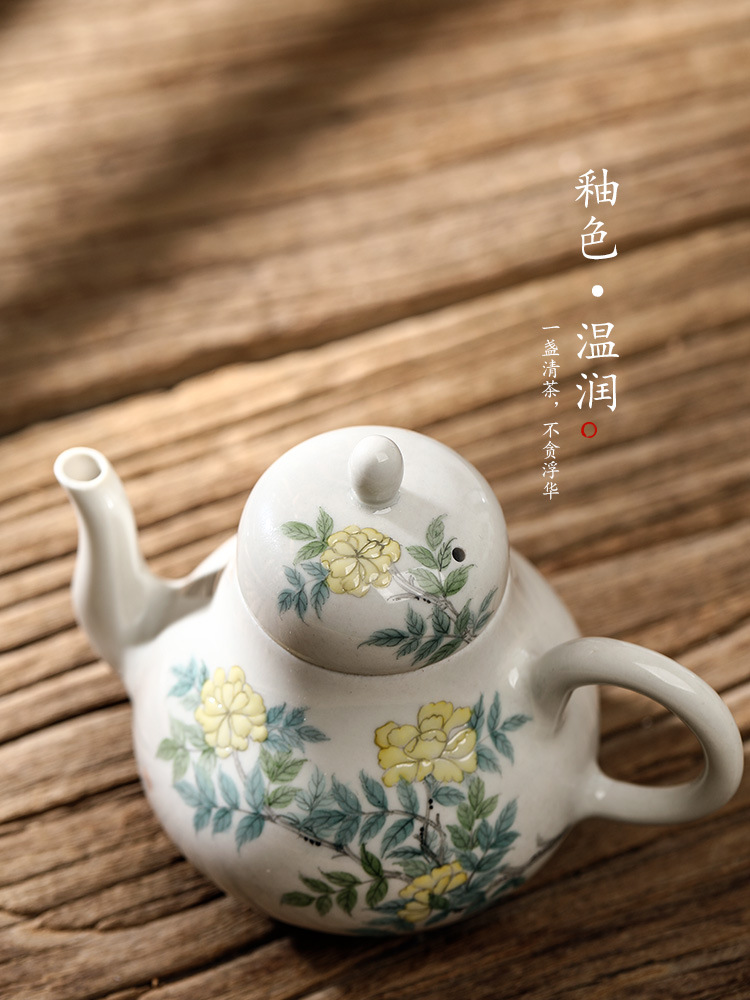 「景德镇茶壶」中式手工草木灰釉功夫茶泡茶壶 手绘花朵茶具壶单壶
