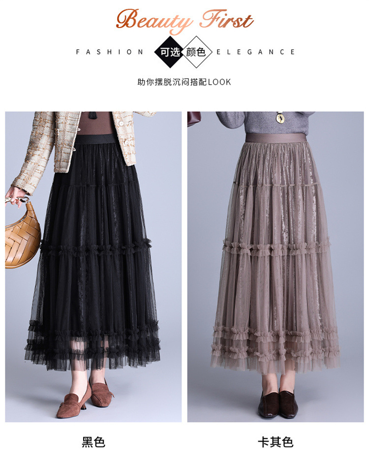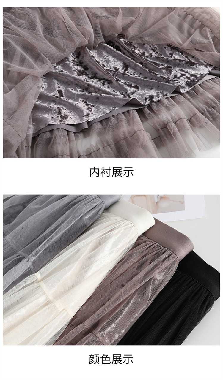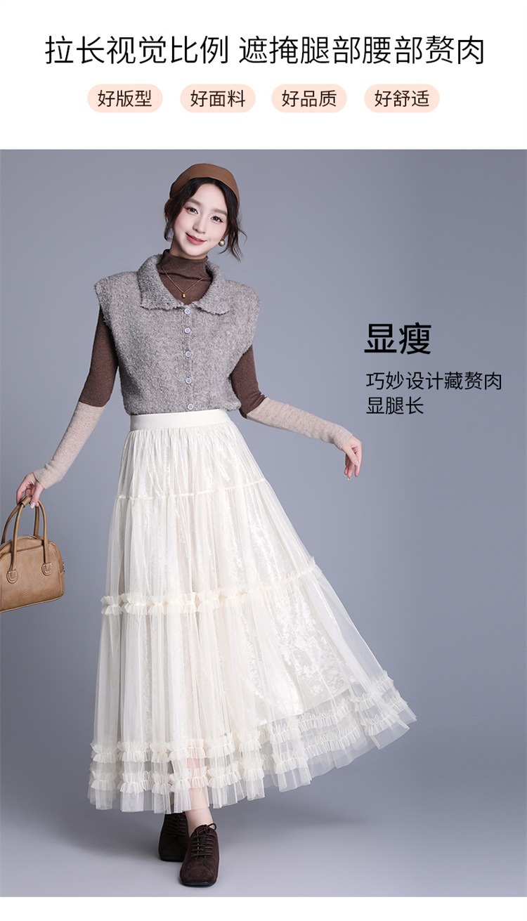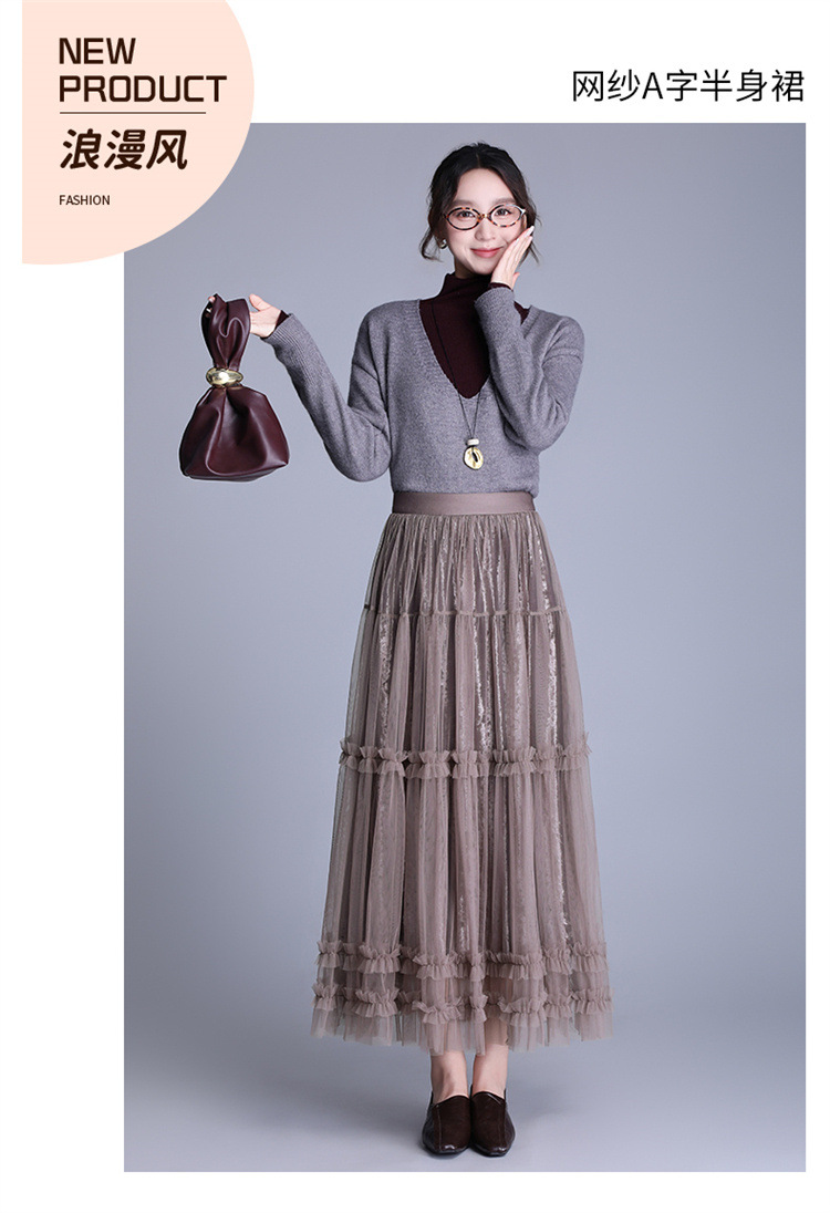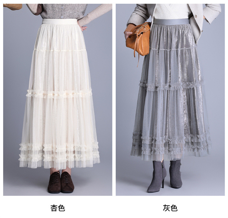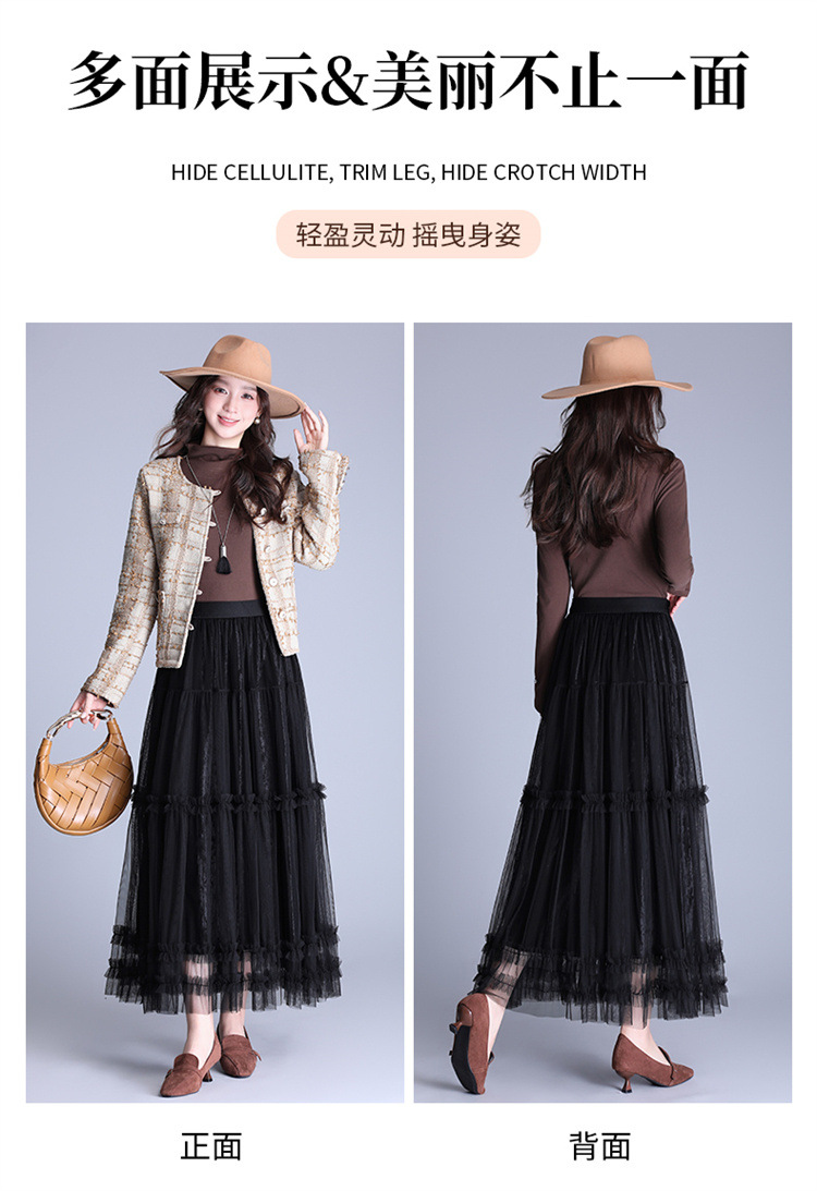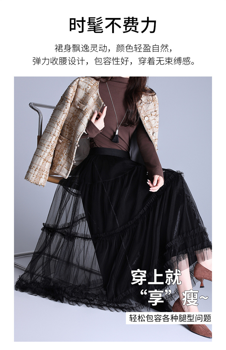 MYX时尚网纱蛋糕裙垂坠感松紧腰休闲长裙2025年秋季新款洋气半身裙