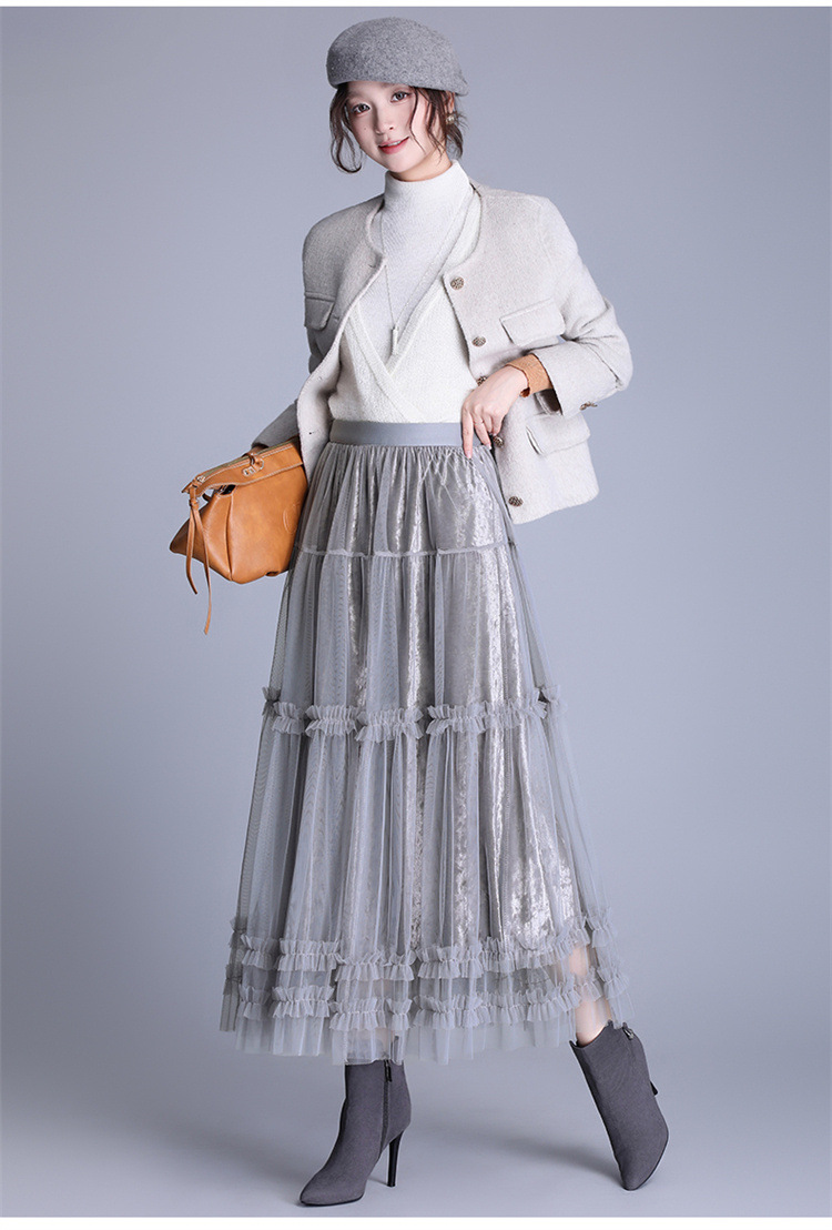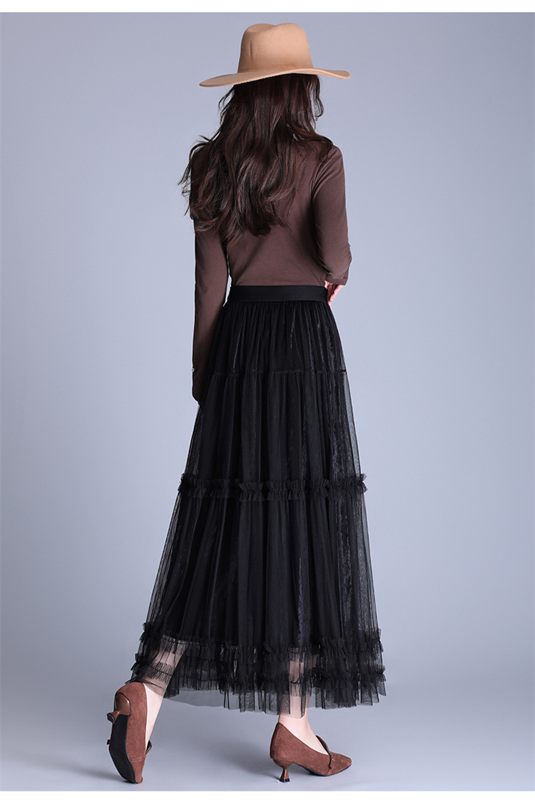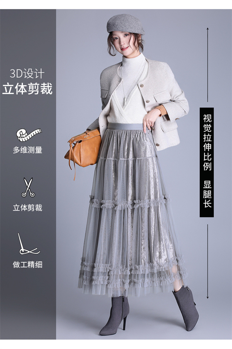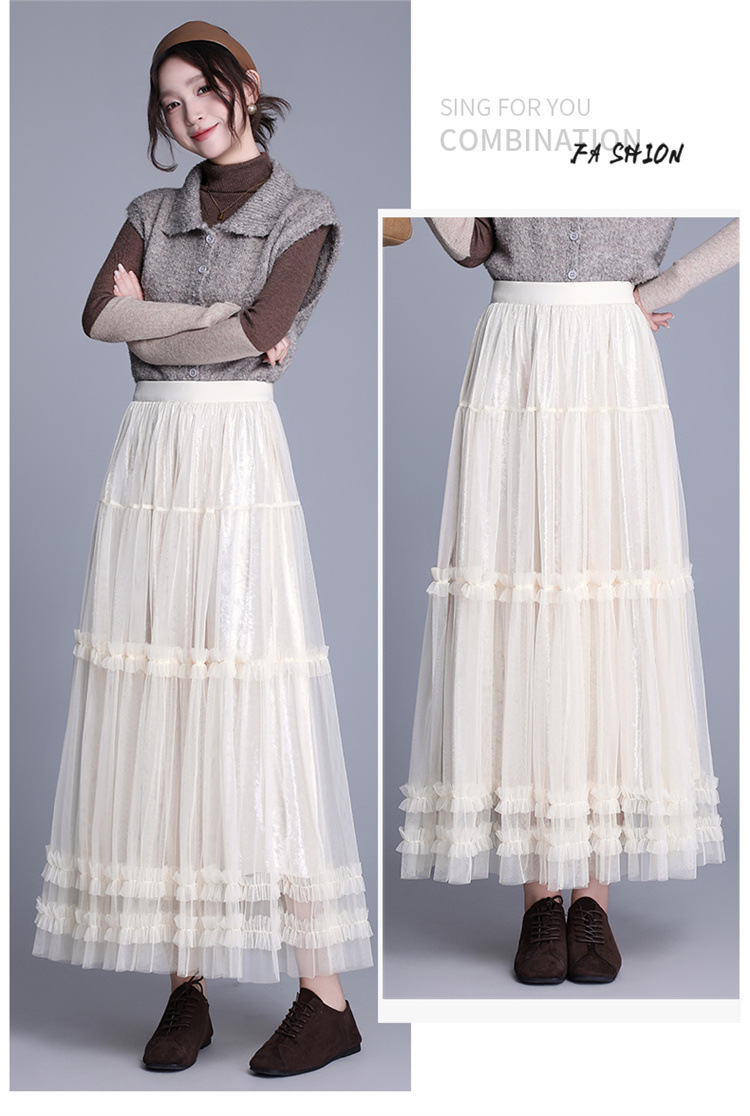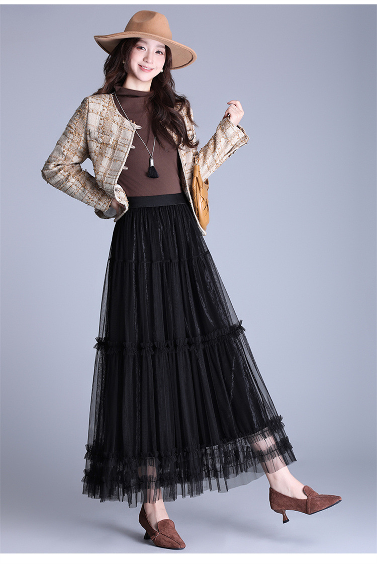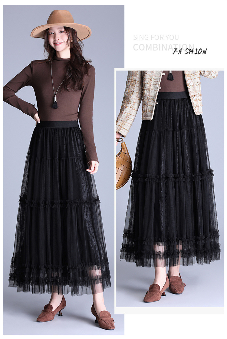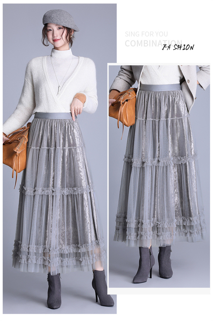 MYX时尚网纱蛋糕裙垂坠感松紧腰休闲长裙2025年秋季新款洋气半身裙