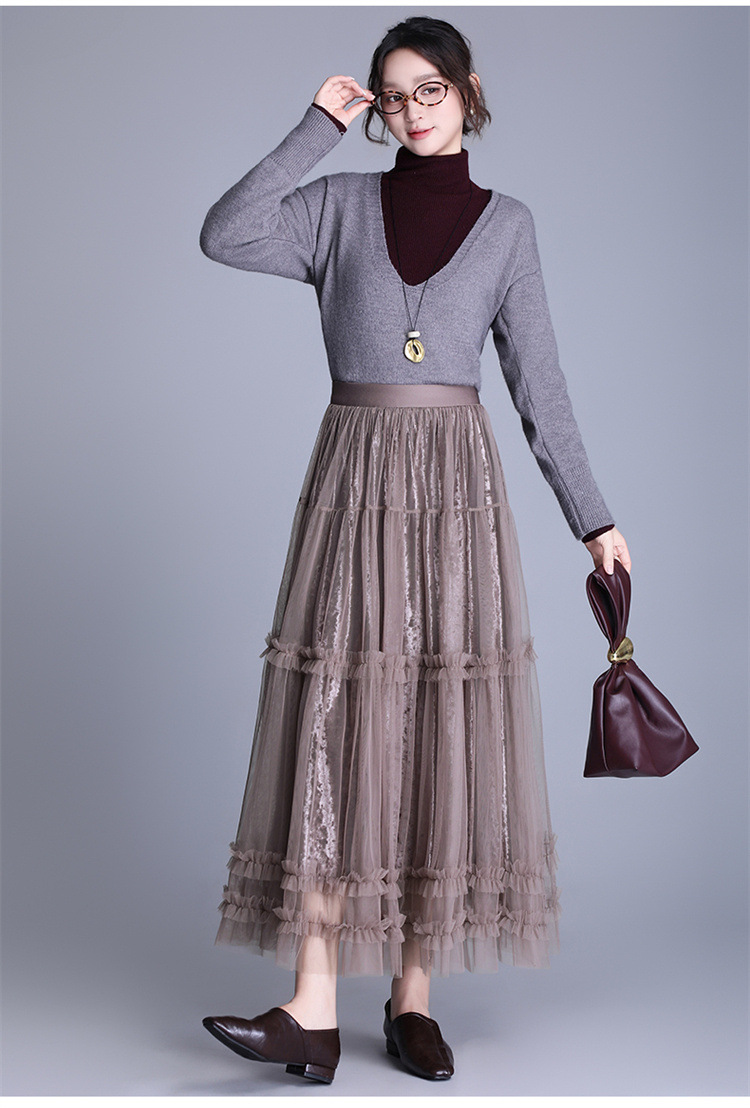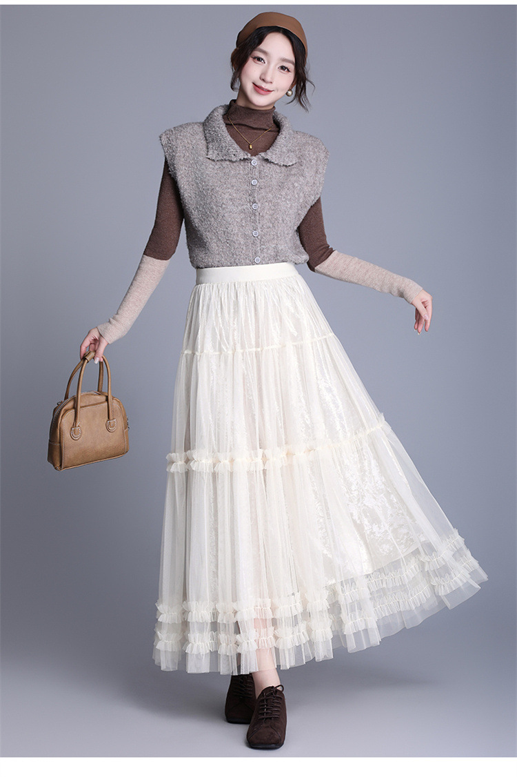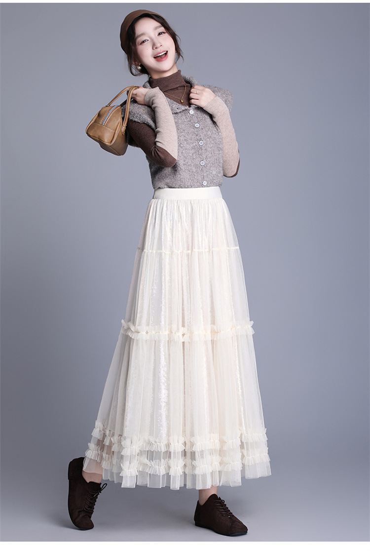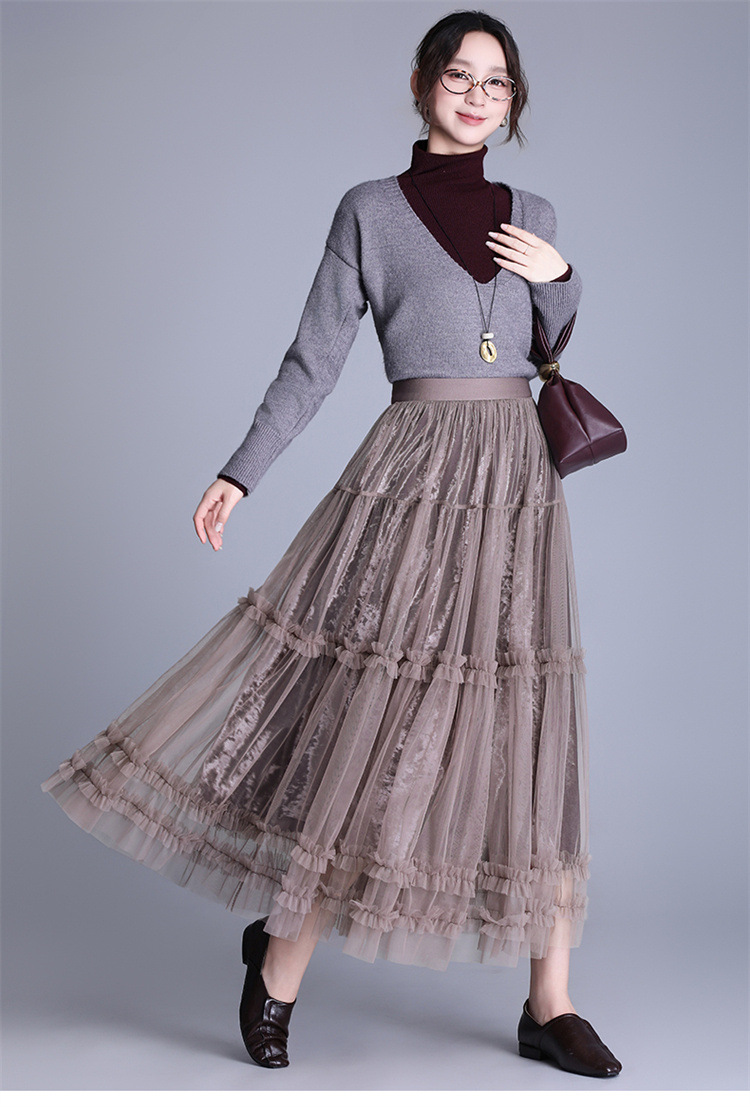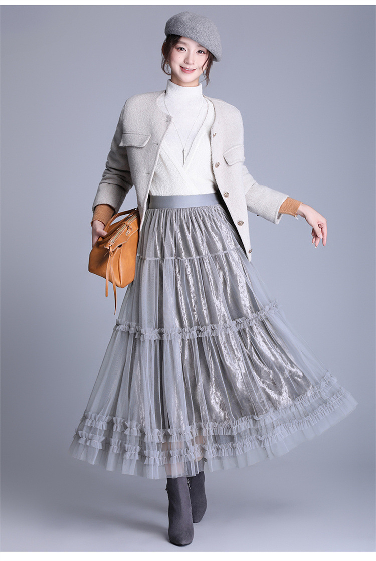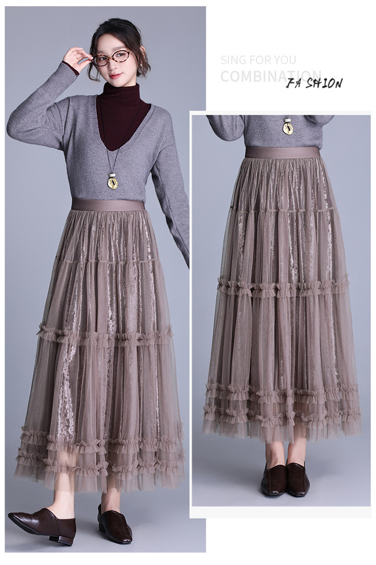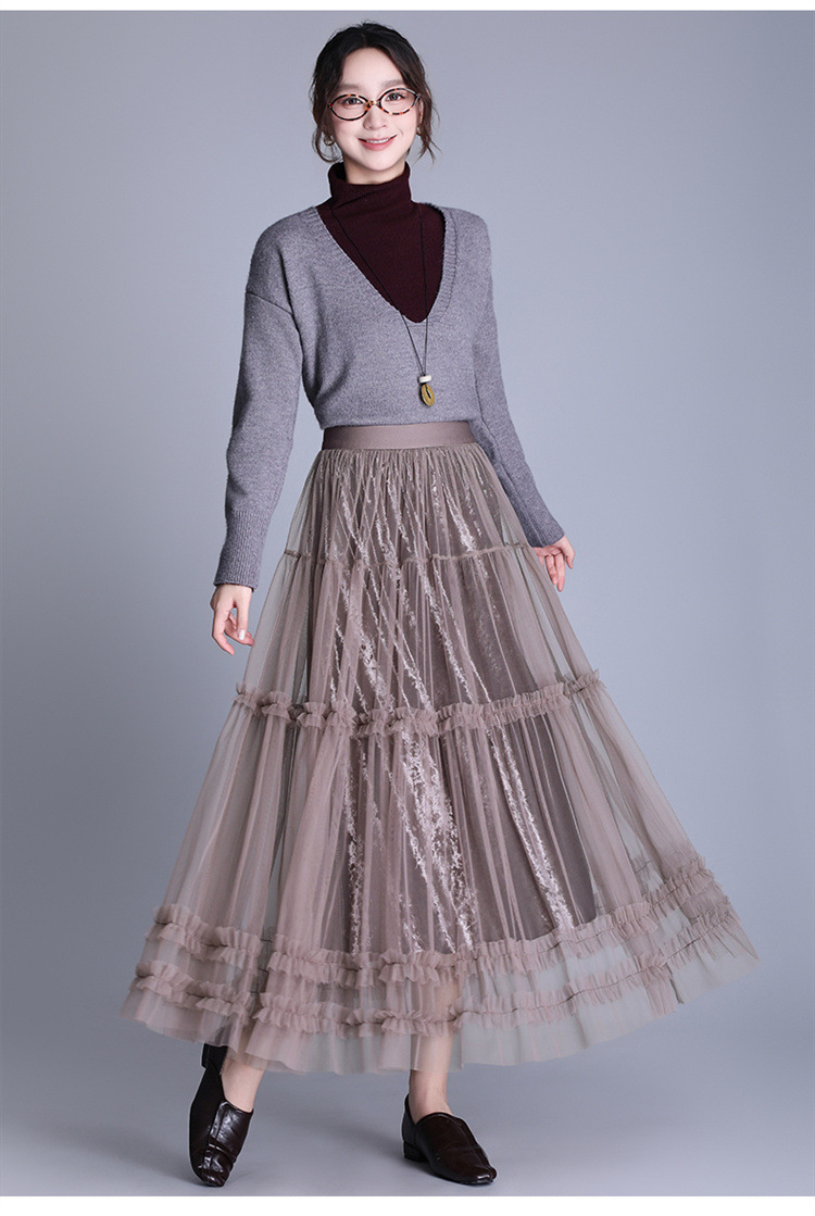MYX时尚网纱蛋糕裙垂坠感松紧腰休闲长裙2025年秋季新款洋气半身裙