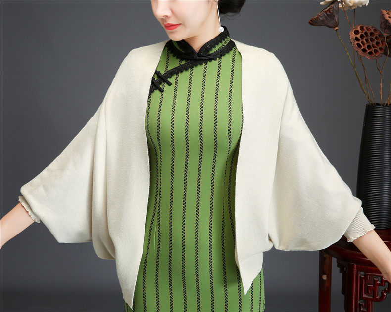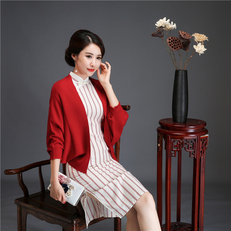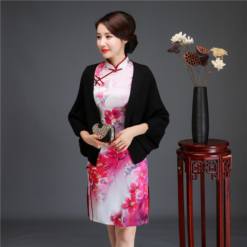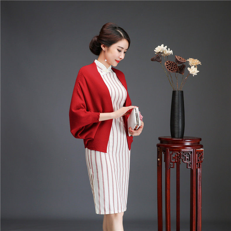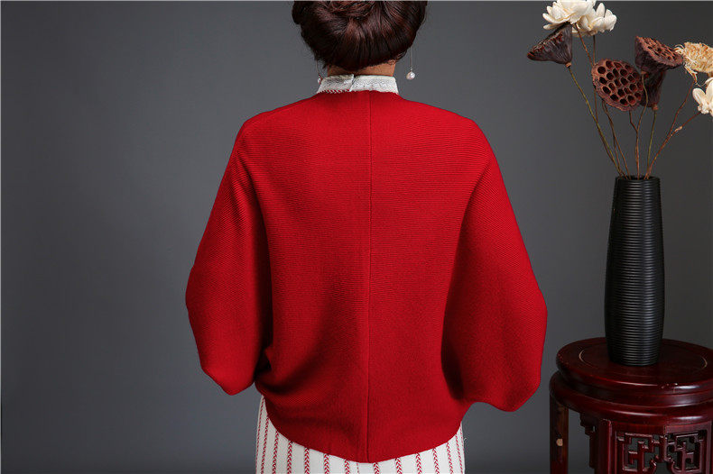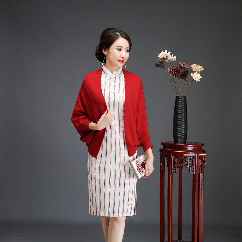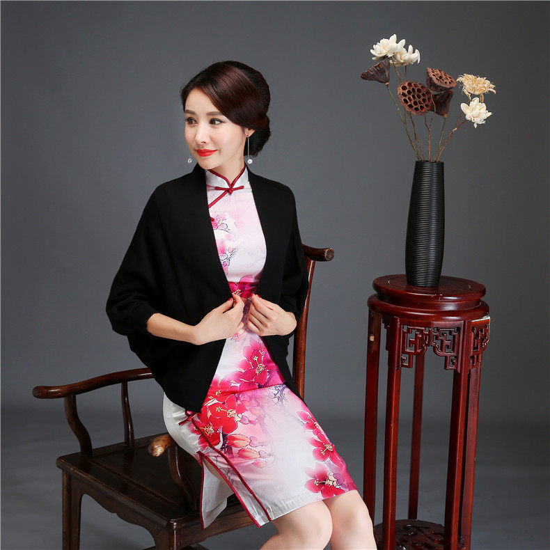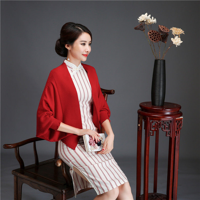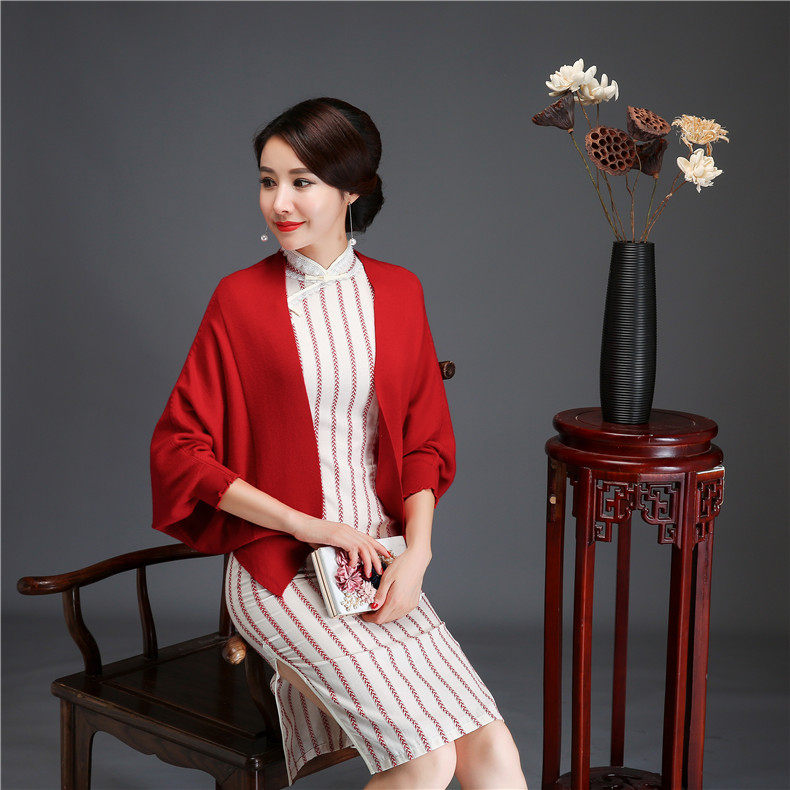 DAS-搭配旗袍披肩外套女春秋短款蝙蝠衫复古宽松斗篷