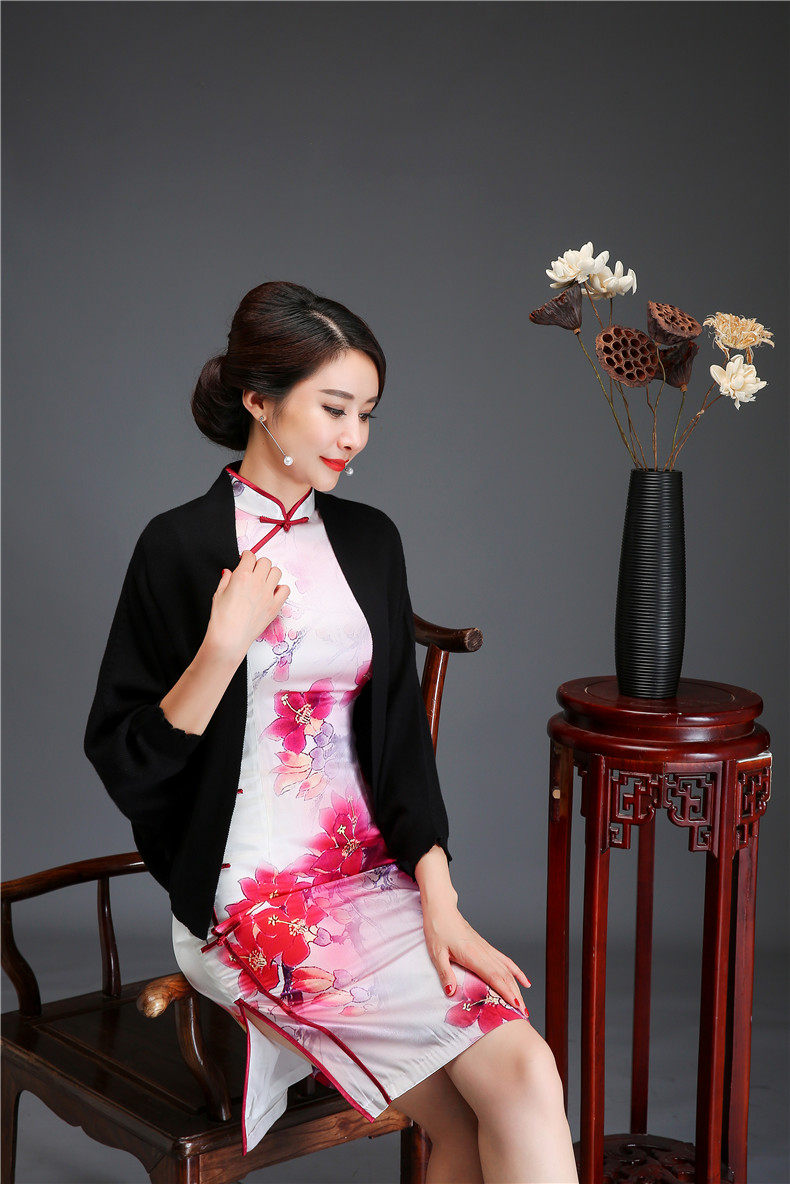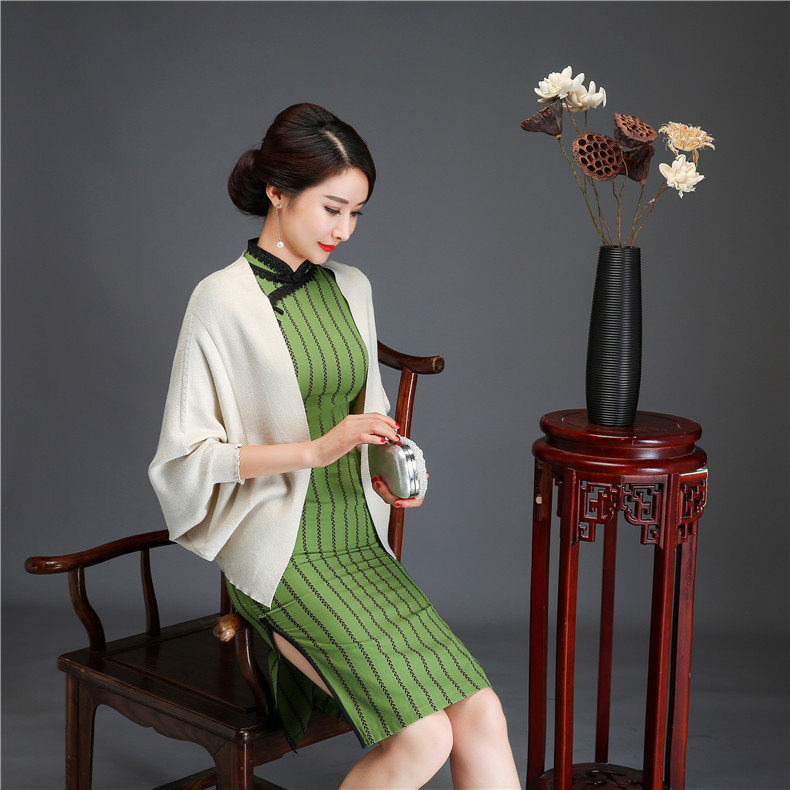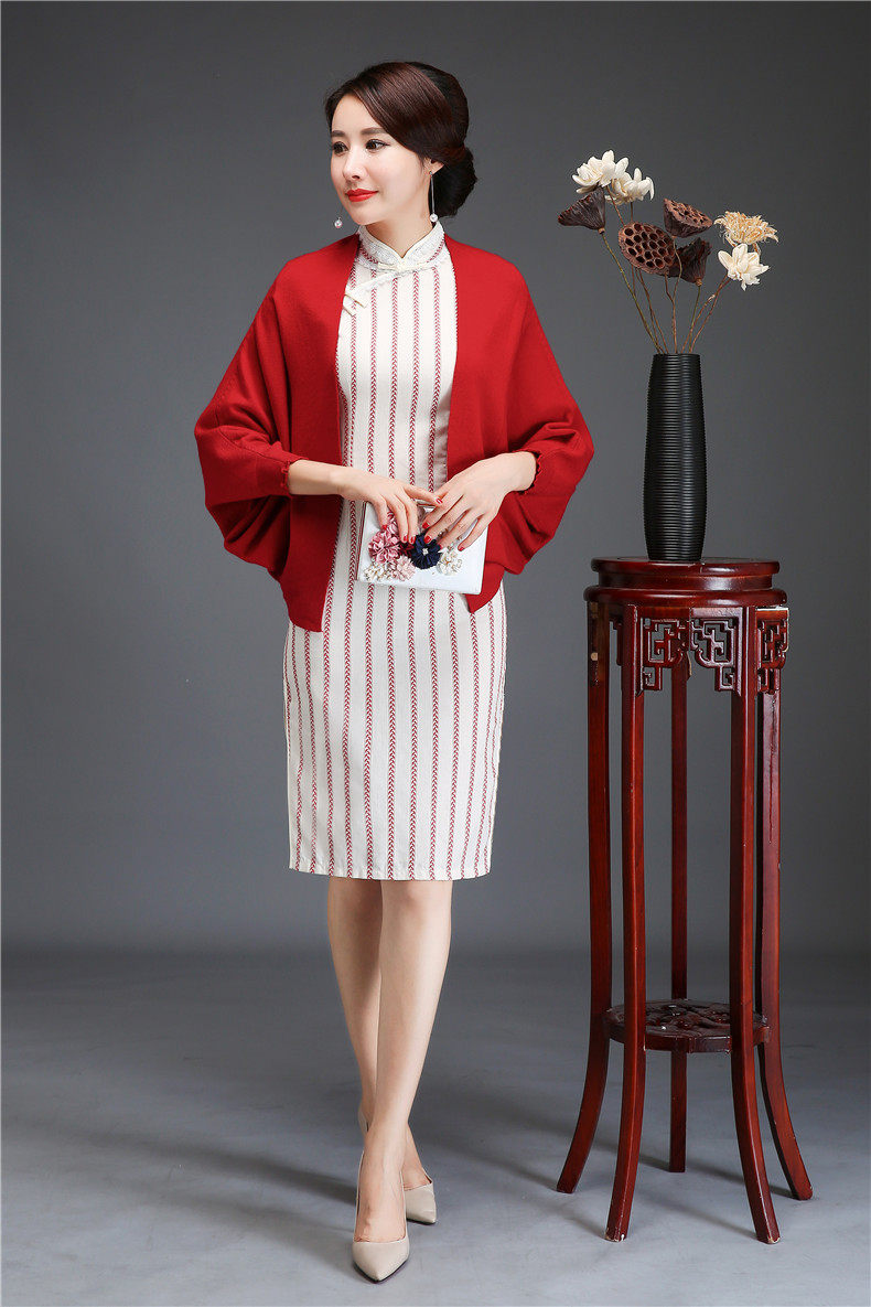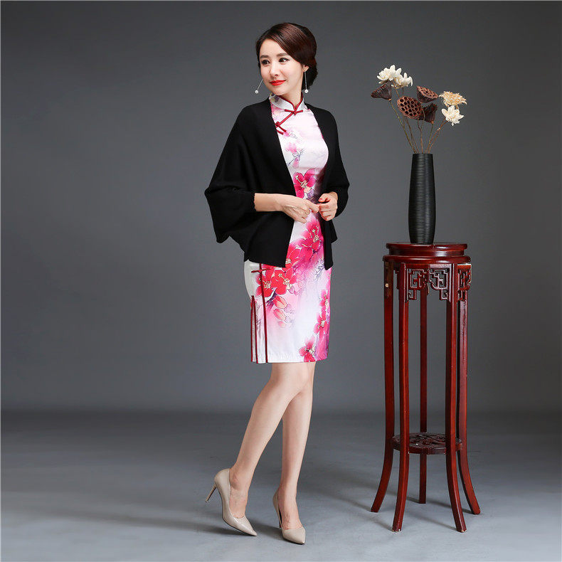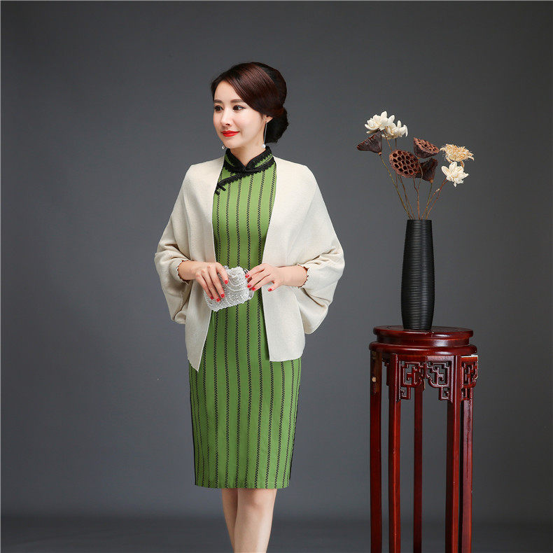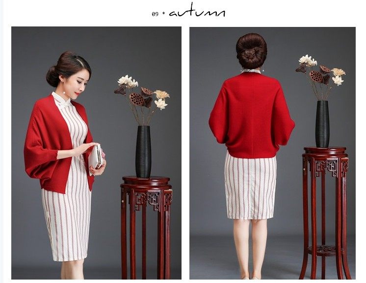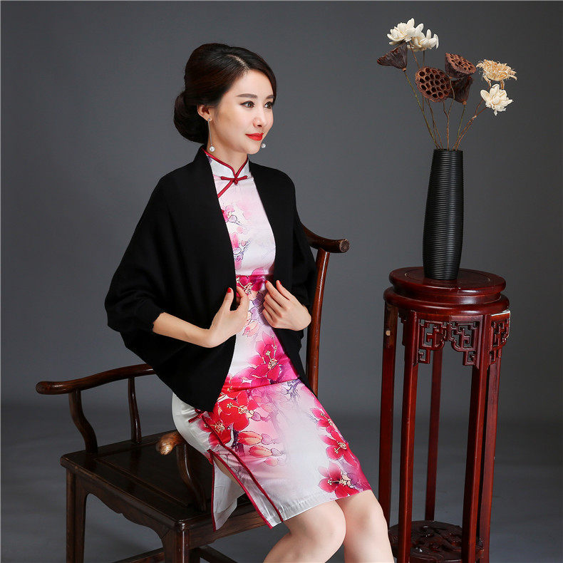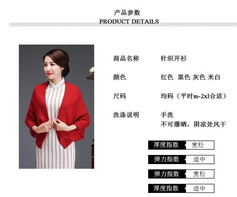 DAS-搭配旗袍披肩外套女春秋短款蝙蝠衫复古宽松斗篷