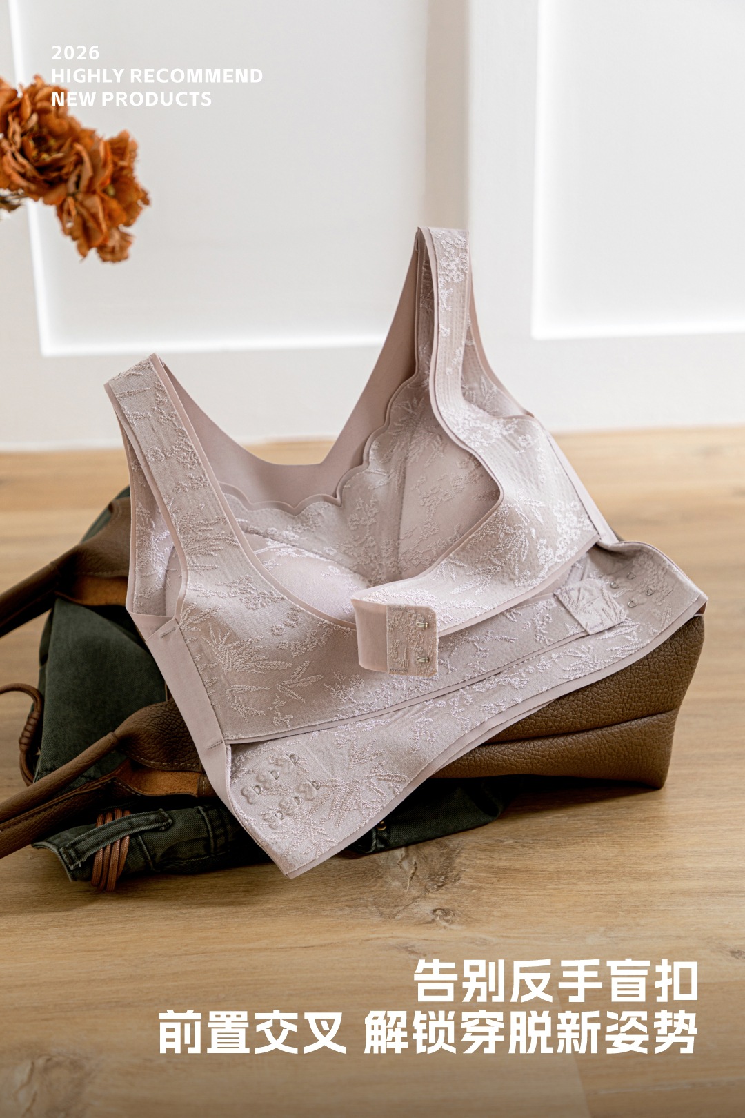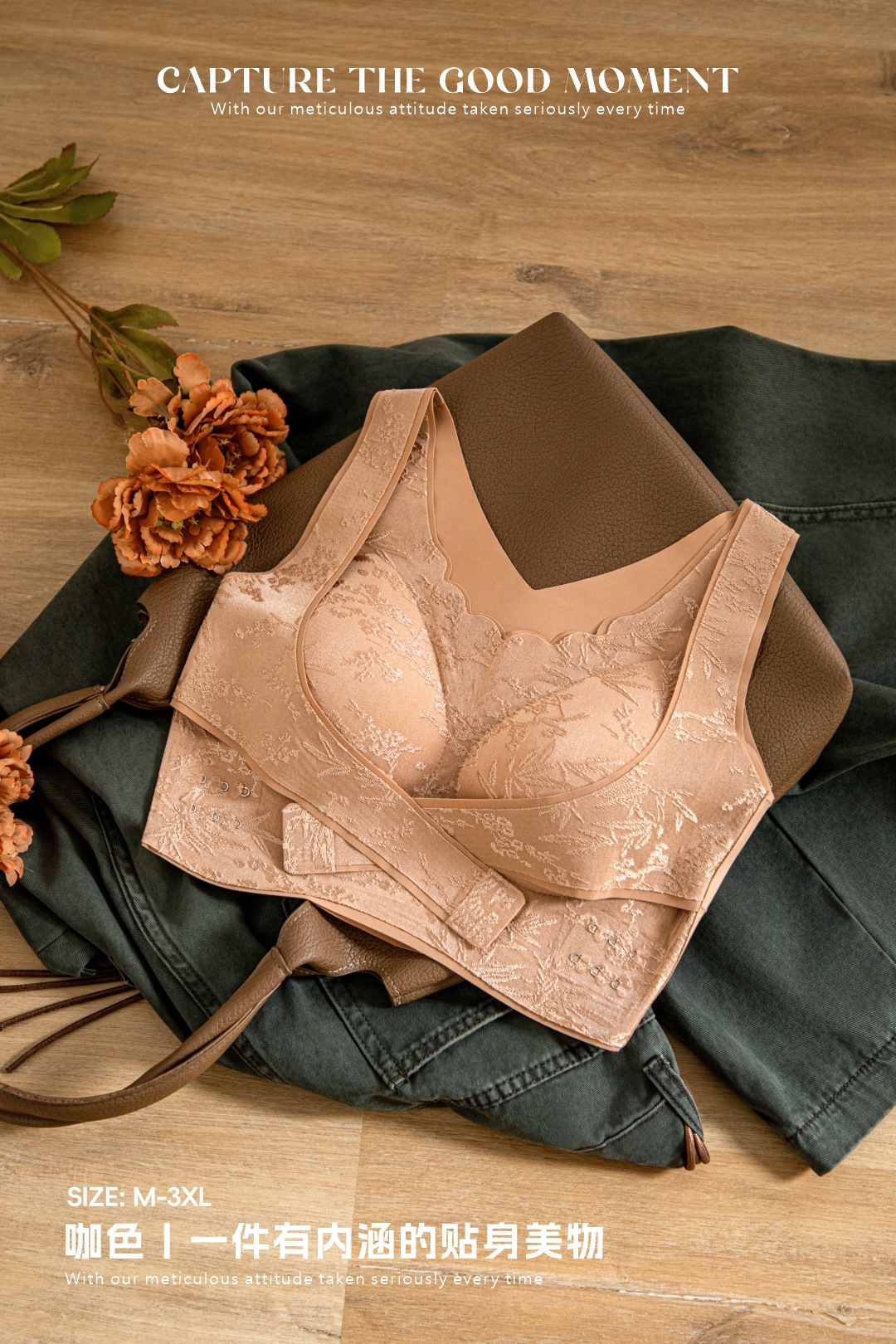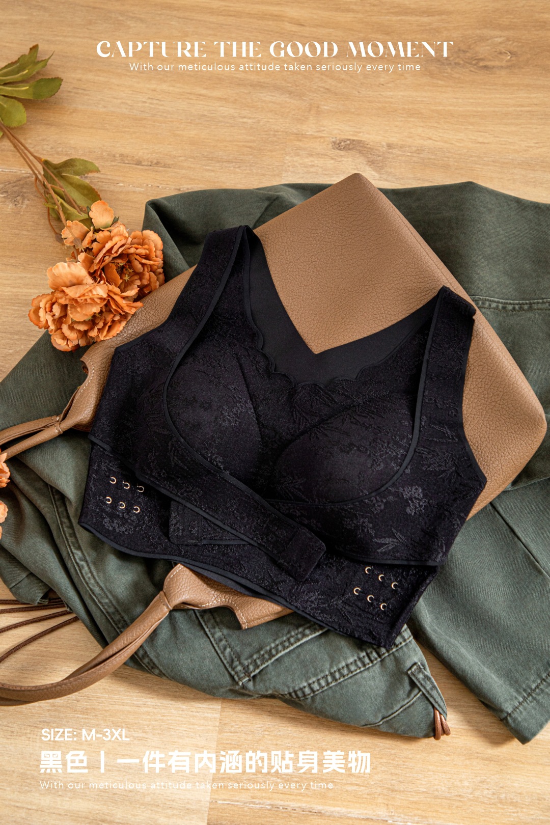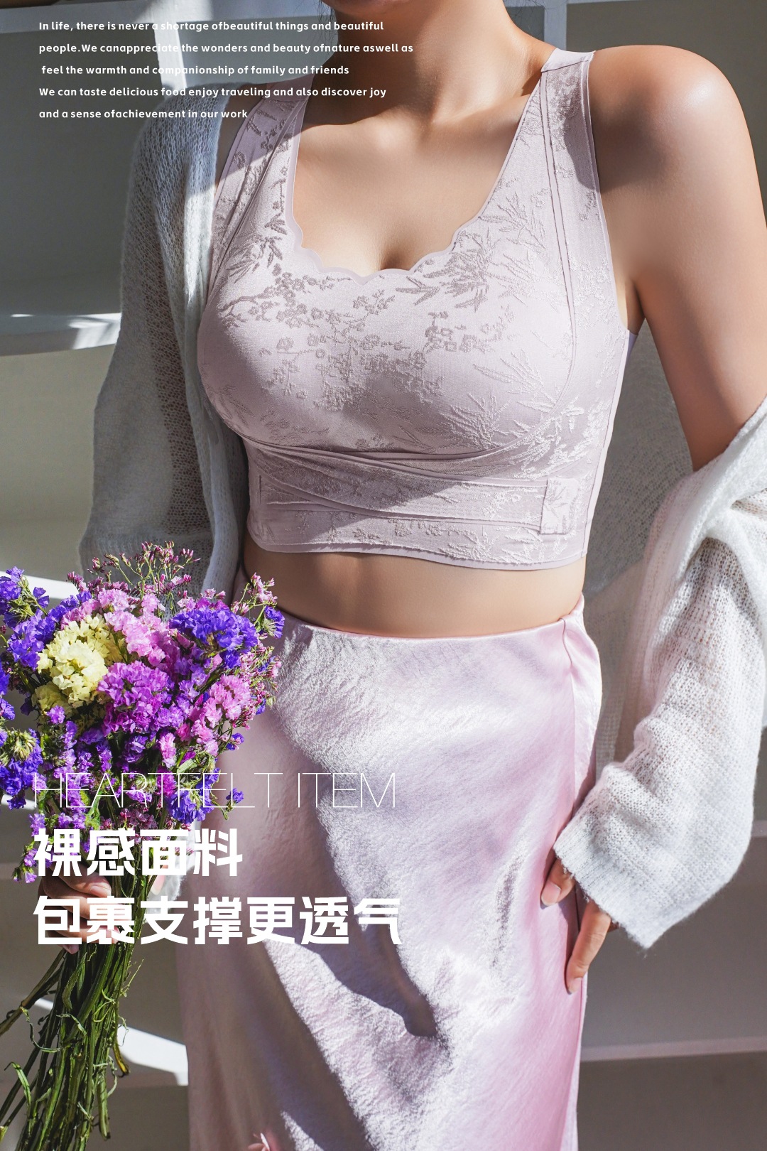 雀说国风浮雕交叉侧扣背心式文胸调整型美背收副乳上托无钢圈运动内衣ALW2358