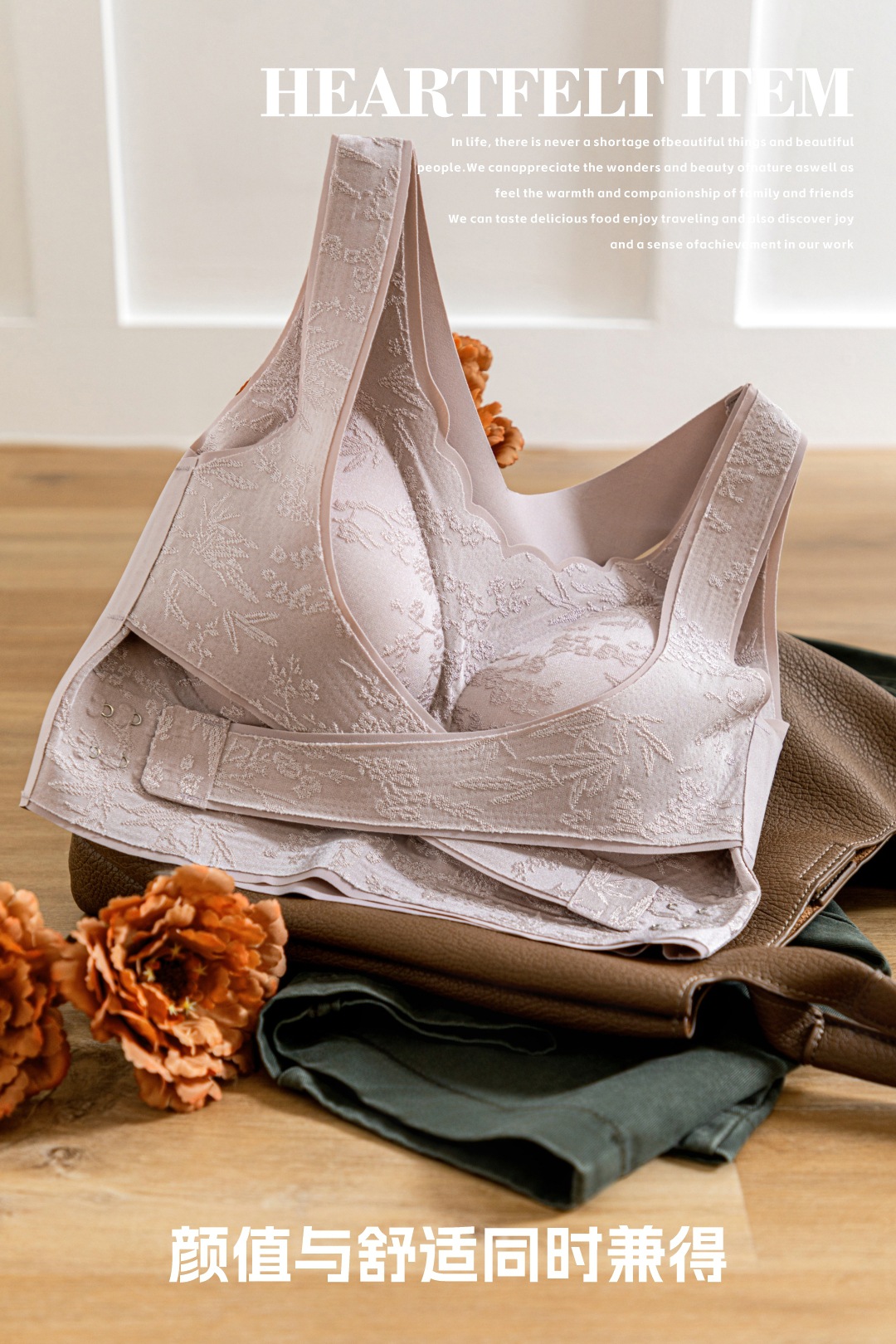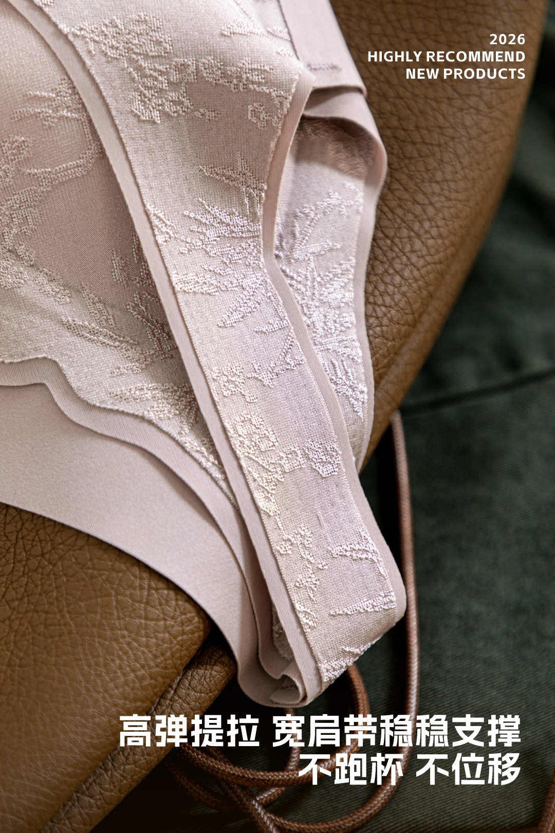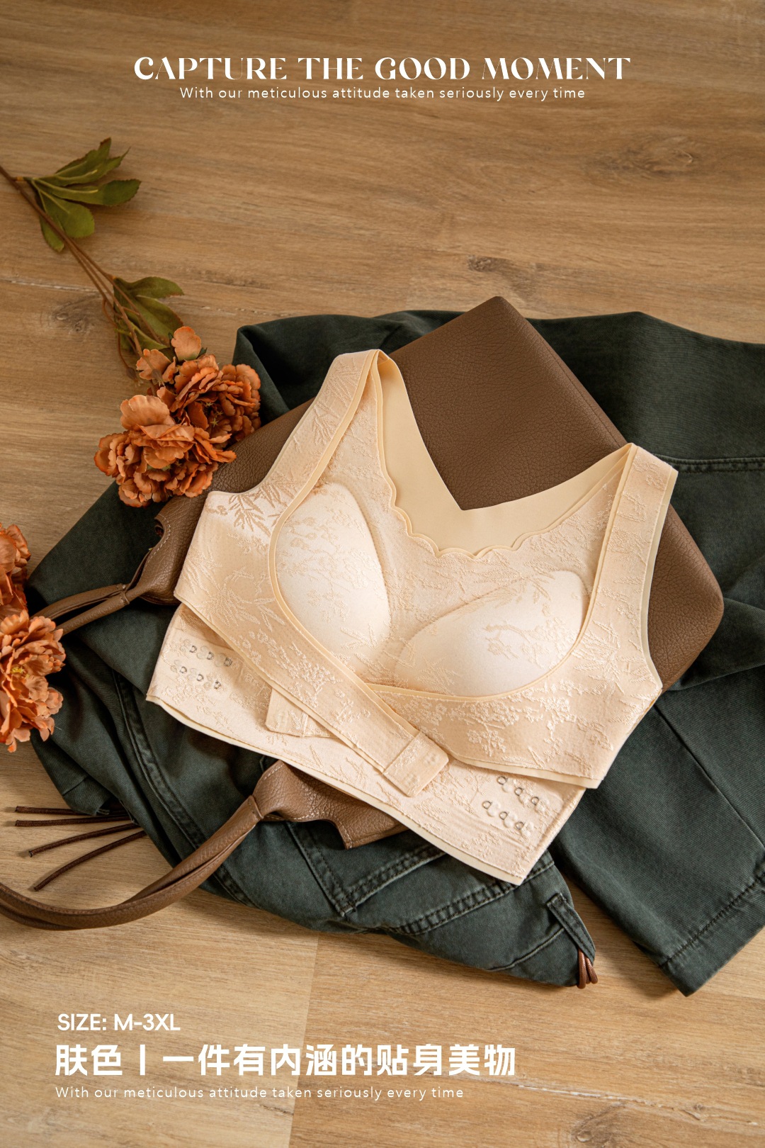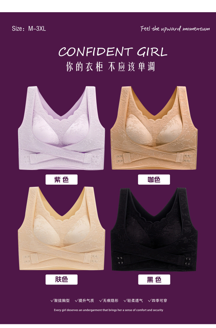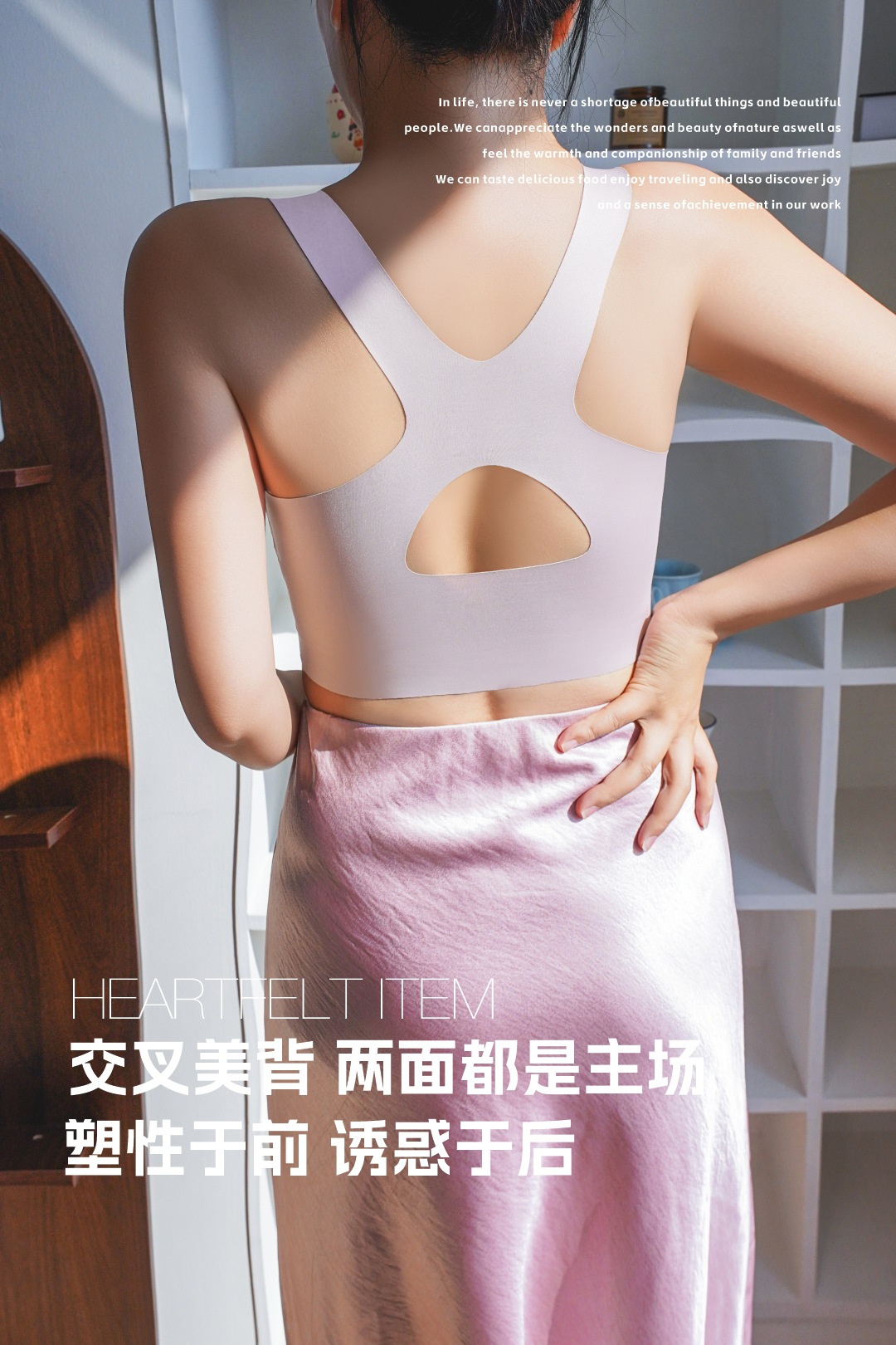 雀说国风浮雕交叉侧扣背心式文胸调整型美背收副乳上托无钢圈运动内衣ALW2358